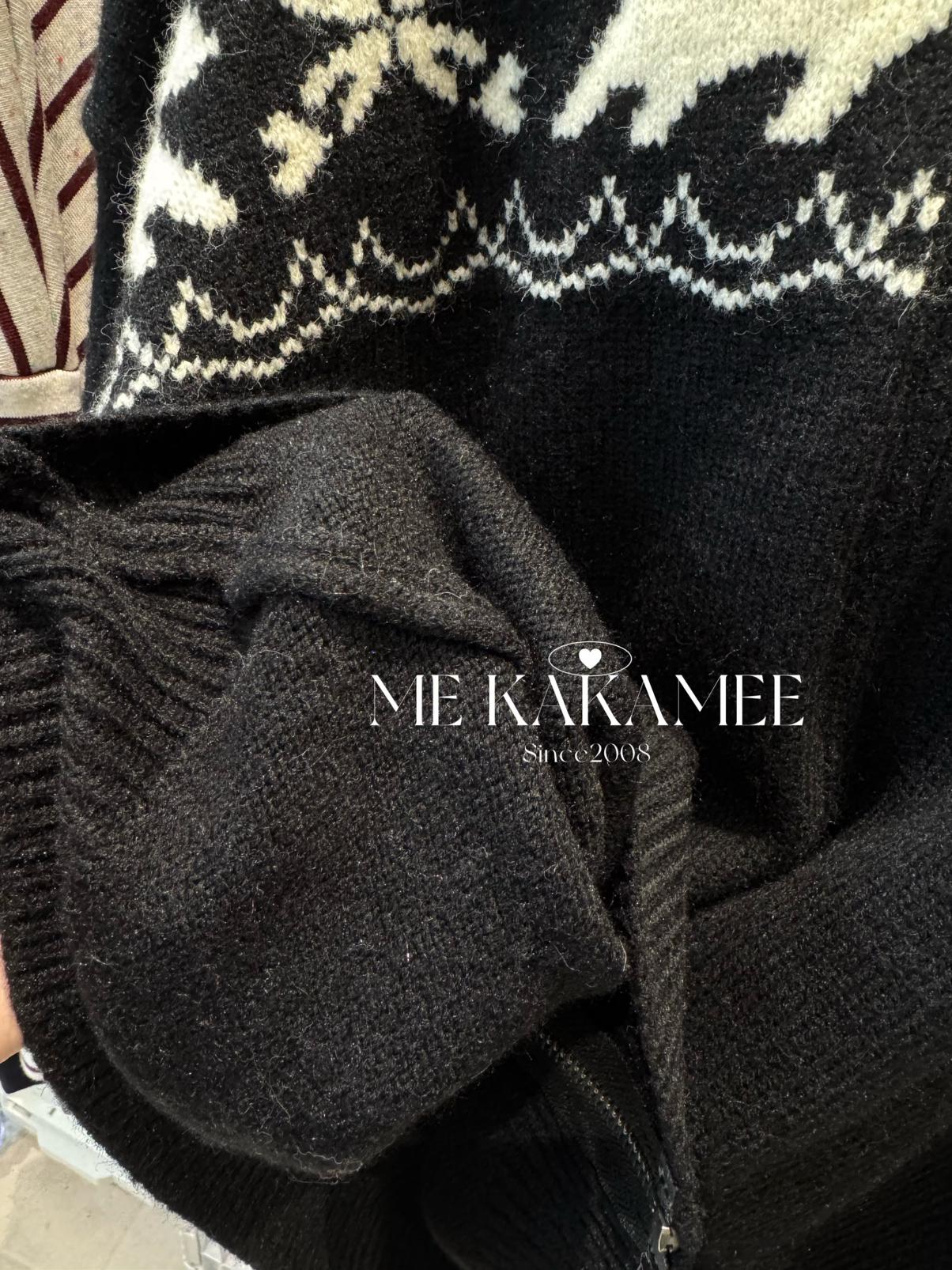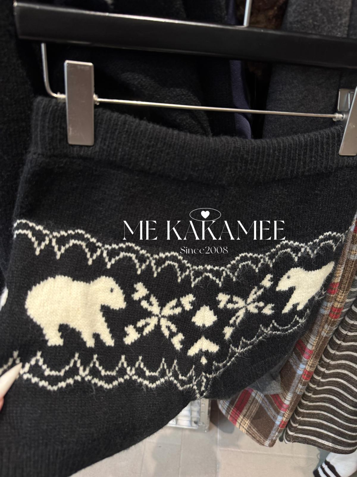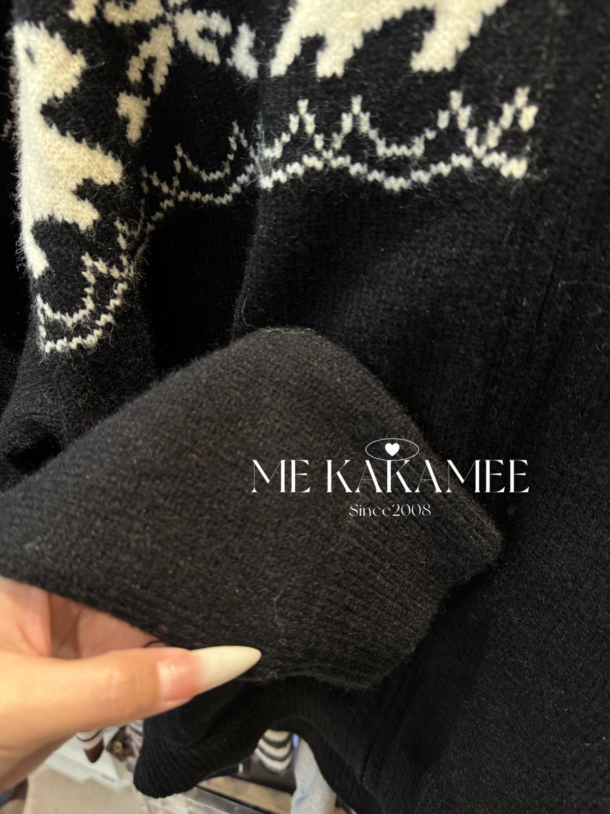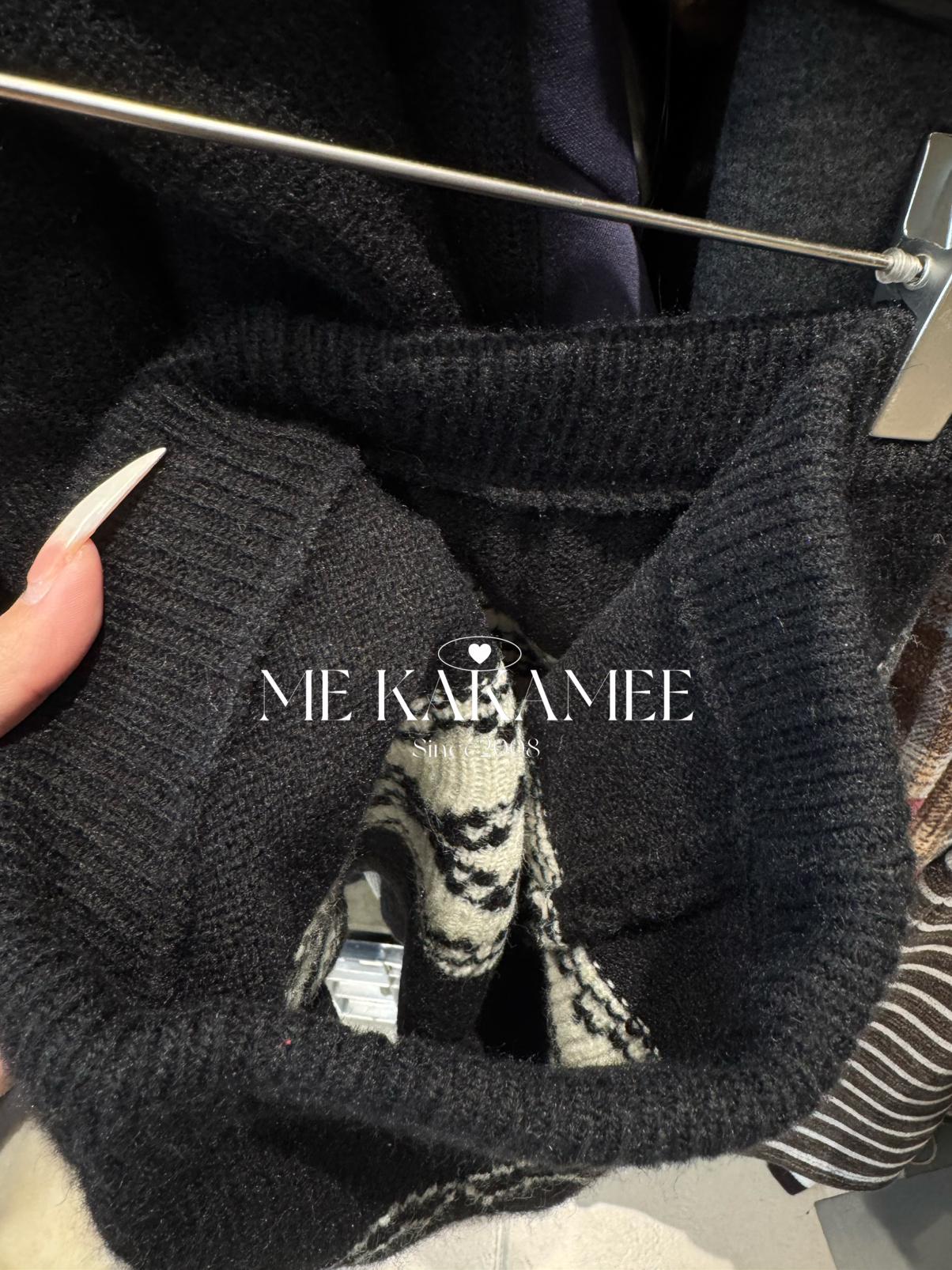 【C8203】秋冬費爾島風復古慵懶風提花毛衣+短裙套裝(配圍巾)