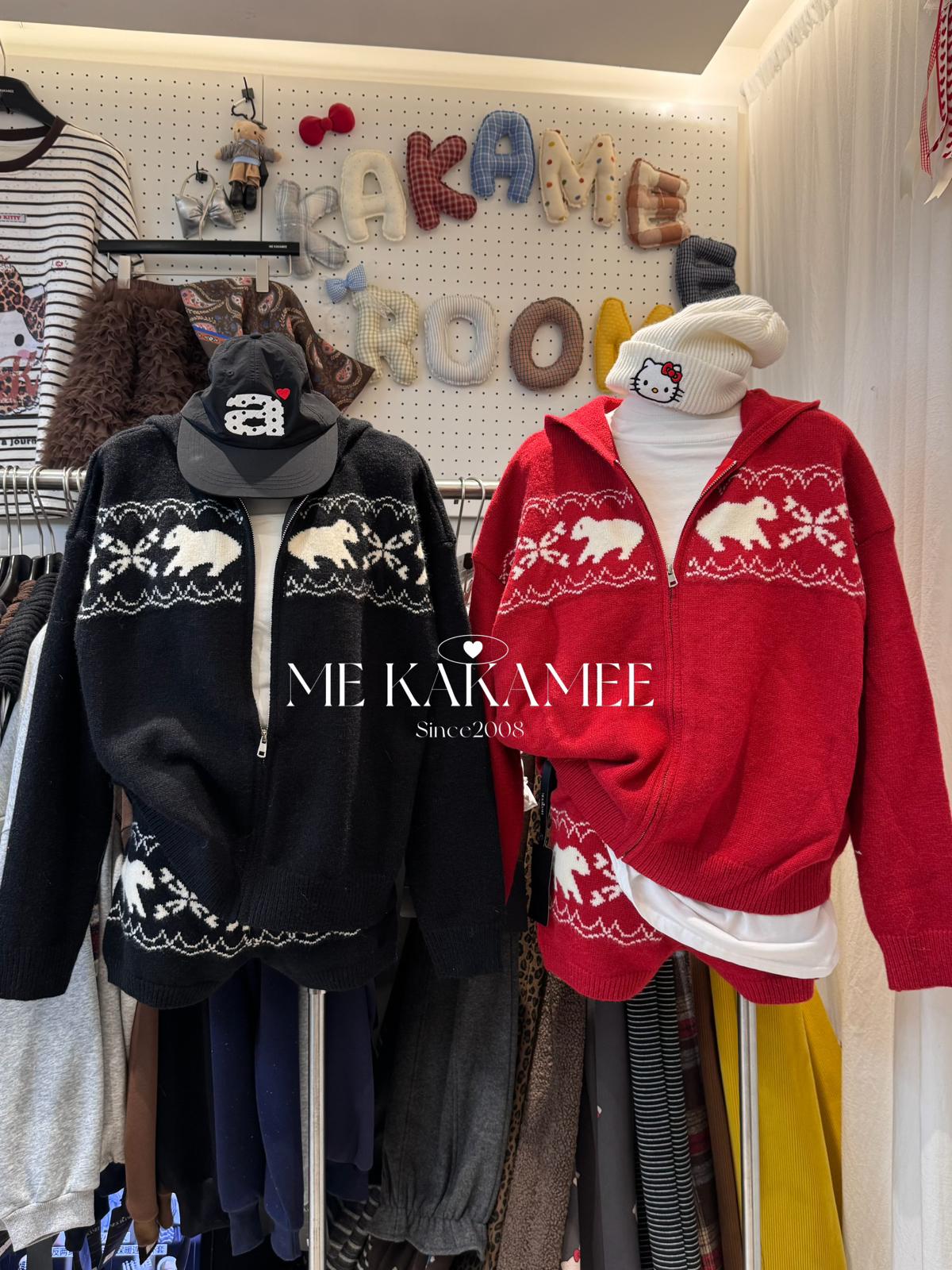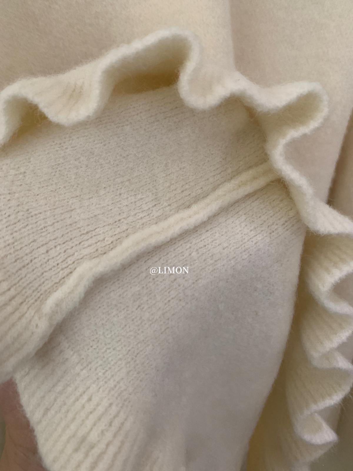 【C8154】聖誕將至氛圍磨毛繫帶柔軟舒適毛衣開衫+磨毛網紗荷葉邊拼接吊帶套裝(含10%兔毛)