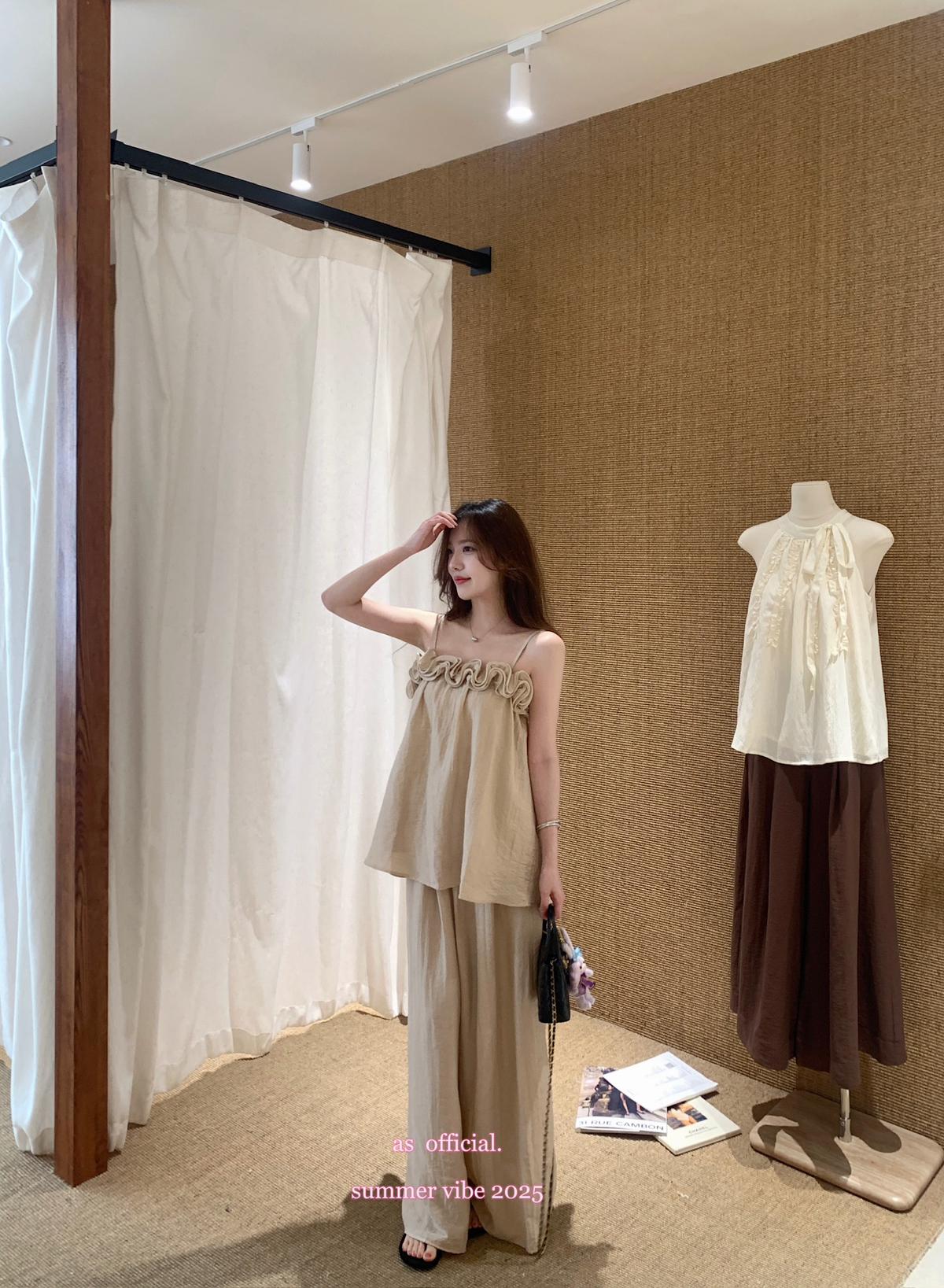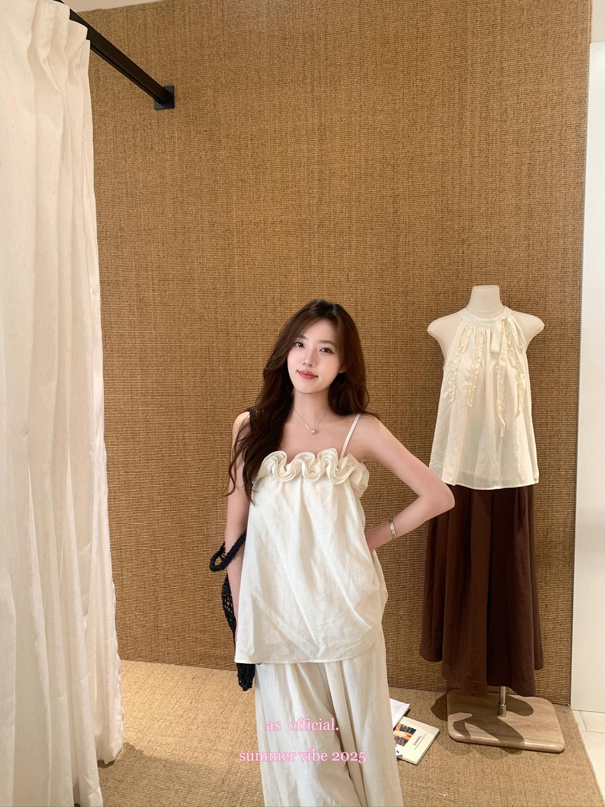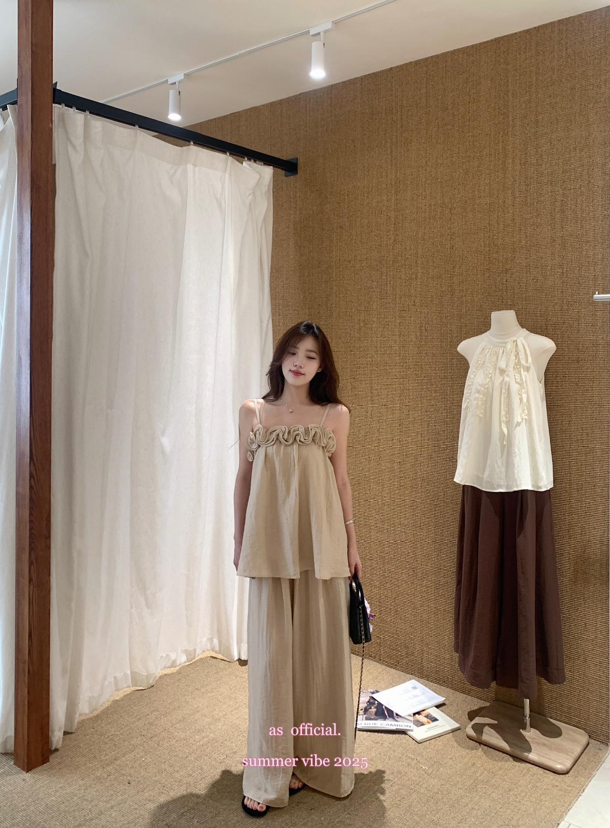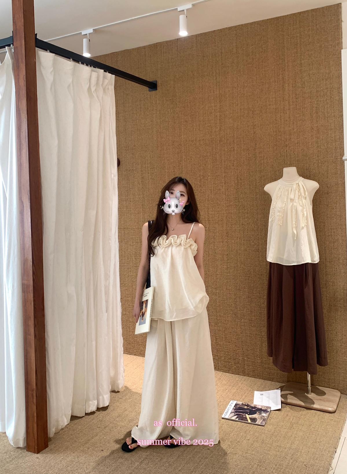 【C6428】氛圍套裝!魚絲線荷葉邊*吊帶小衫+直筒闊腿休閒褲套裝