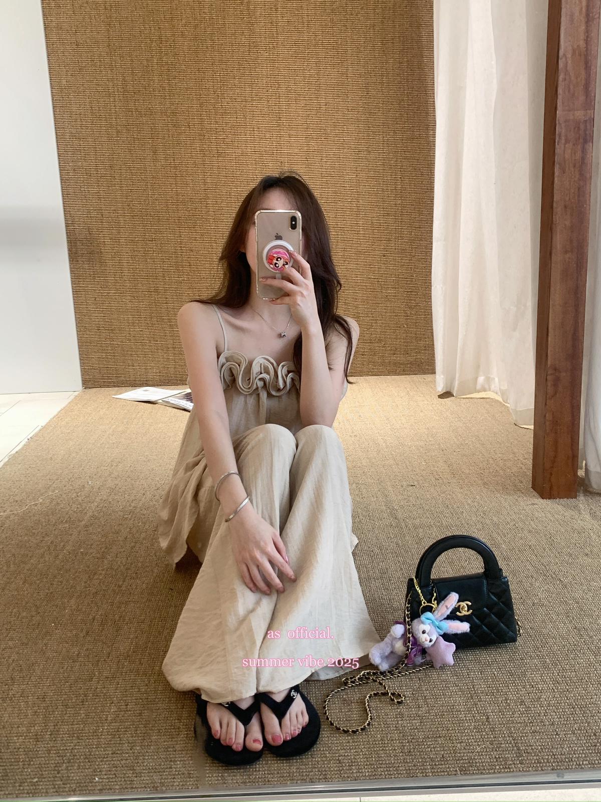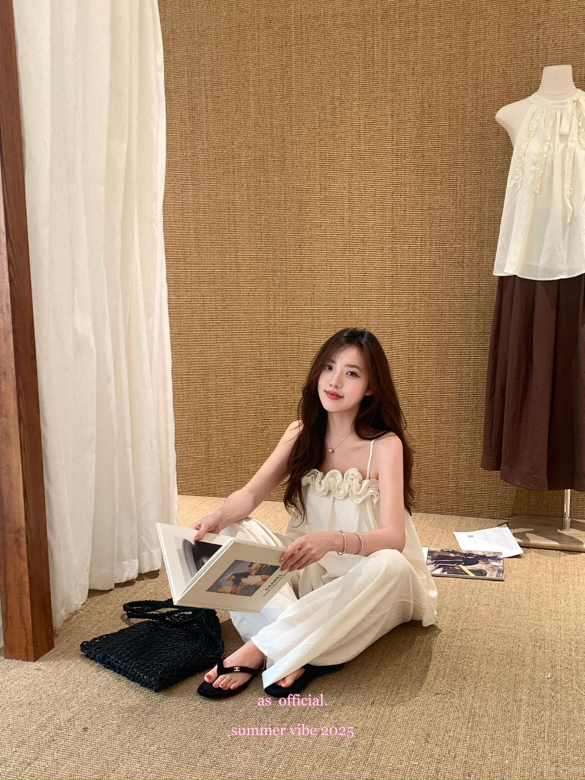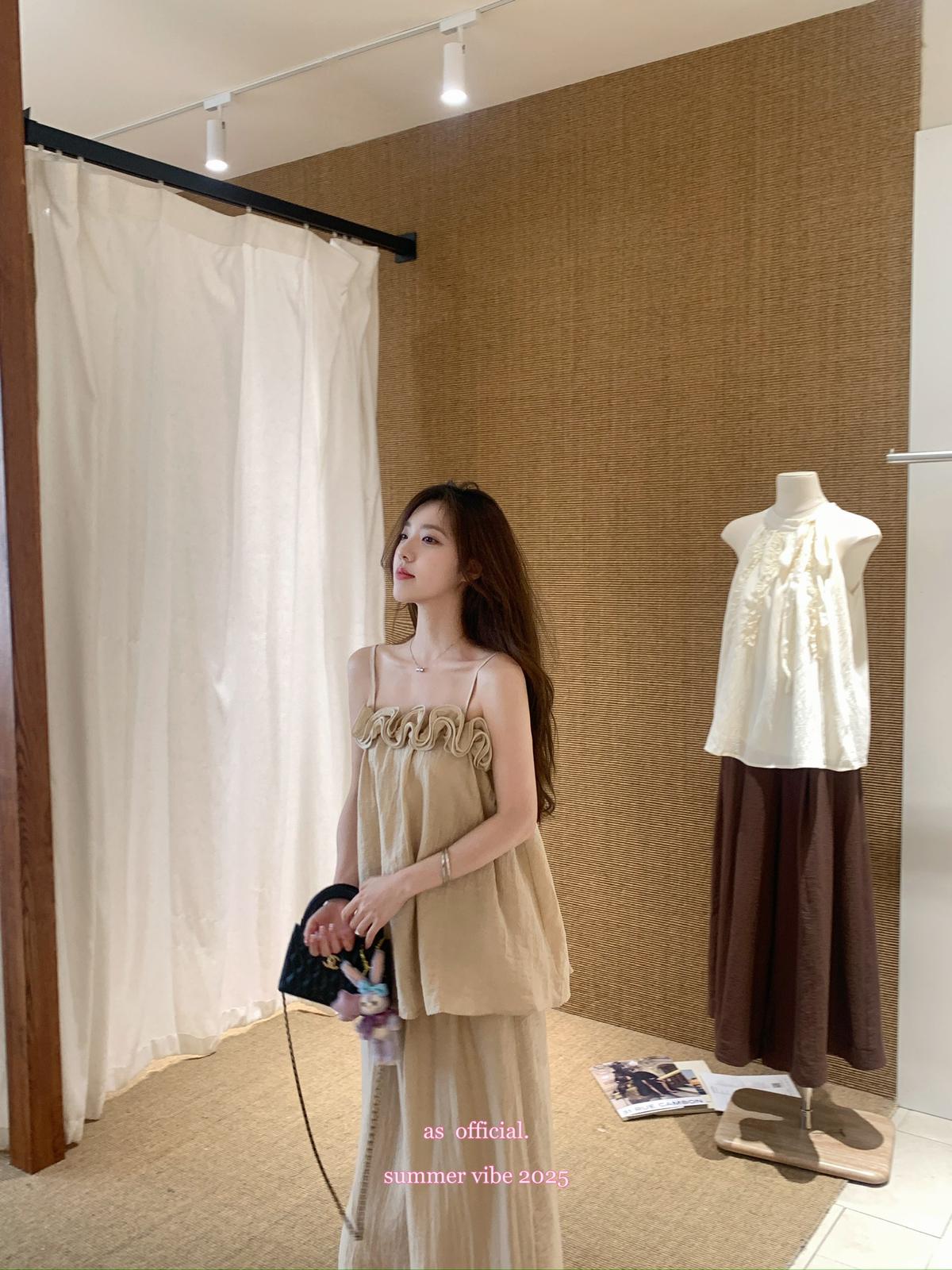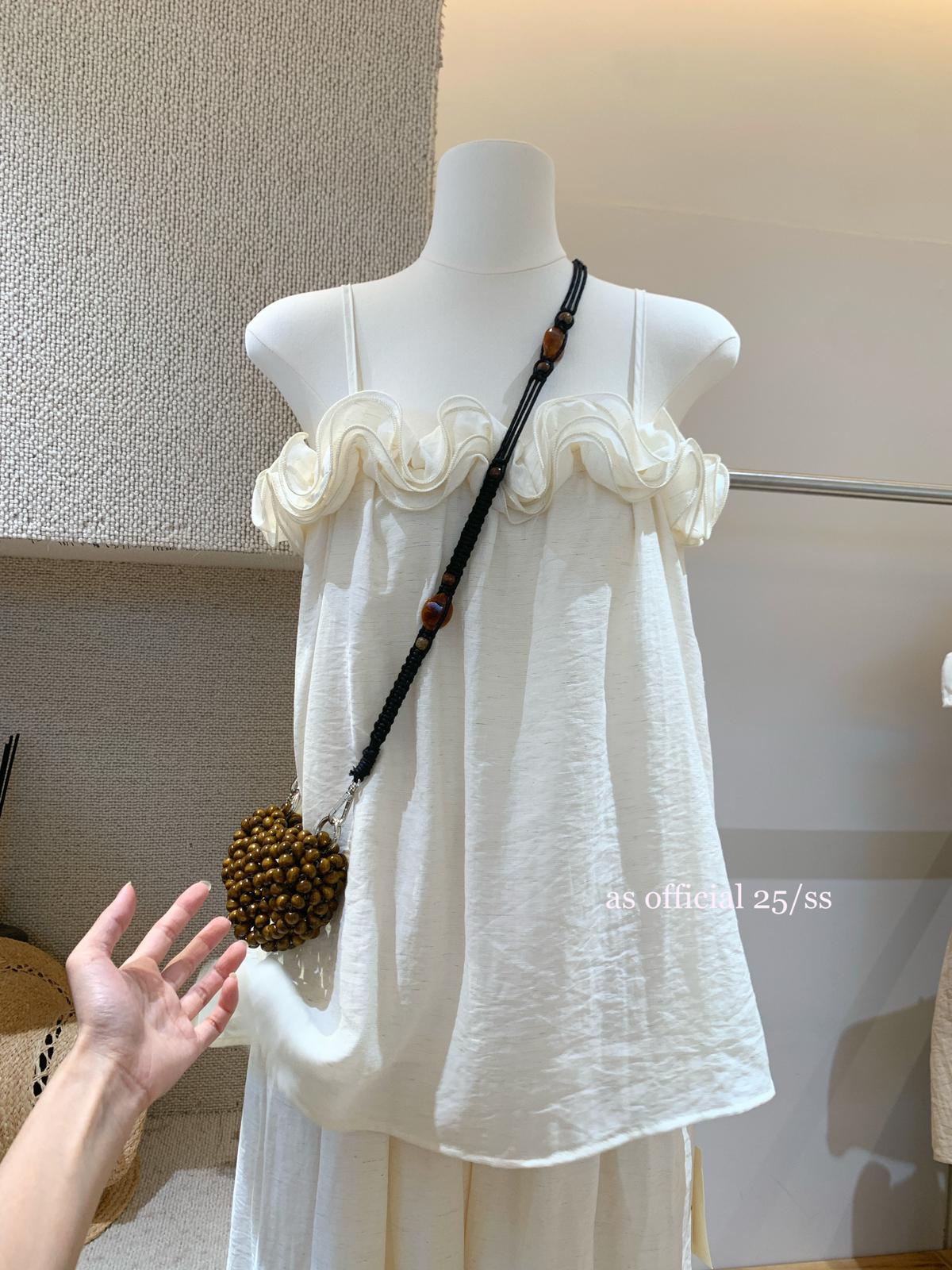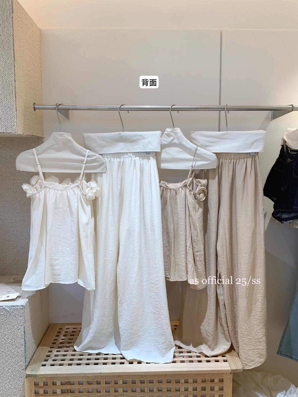 【C6428】氛圍套裝!魚絲線荷葉邊*吊帶小衫+直筒闊腿休閒褲套裝