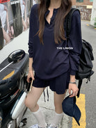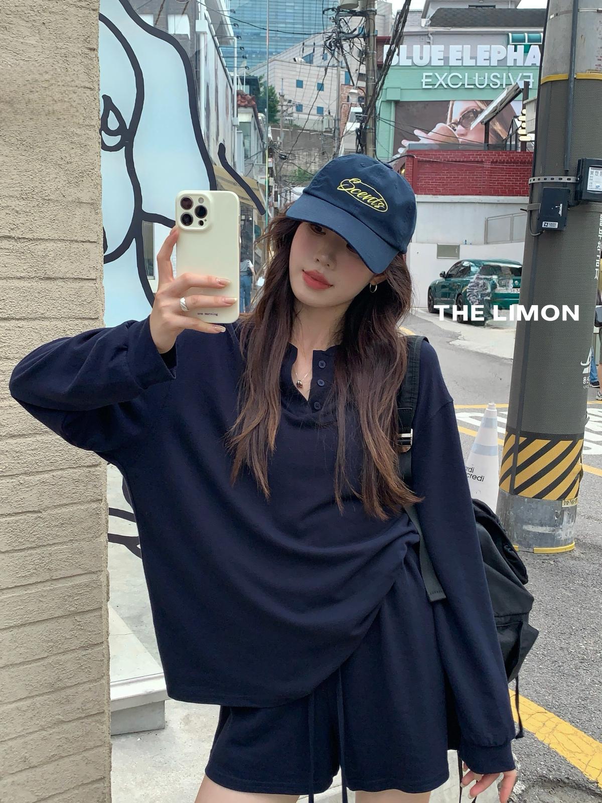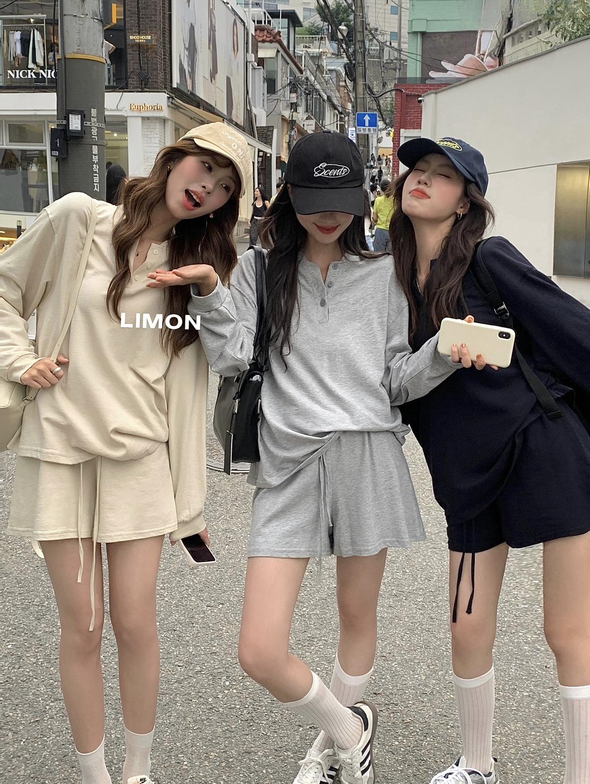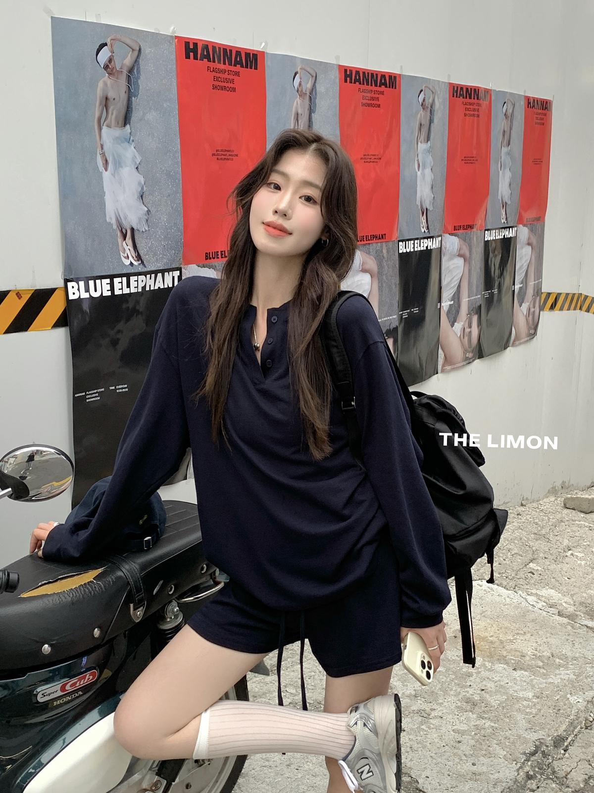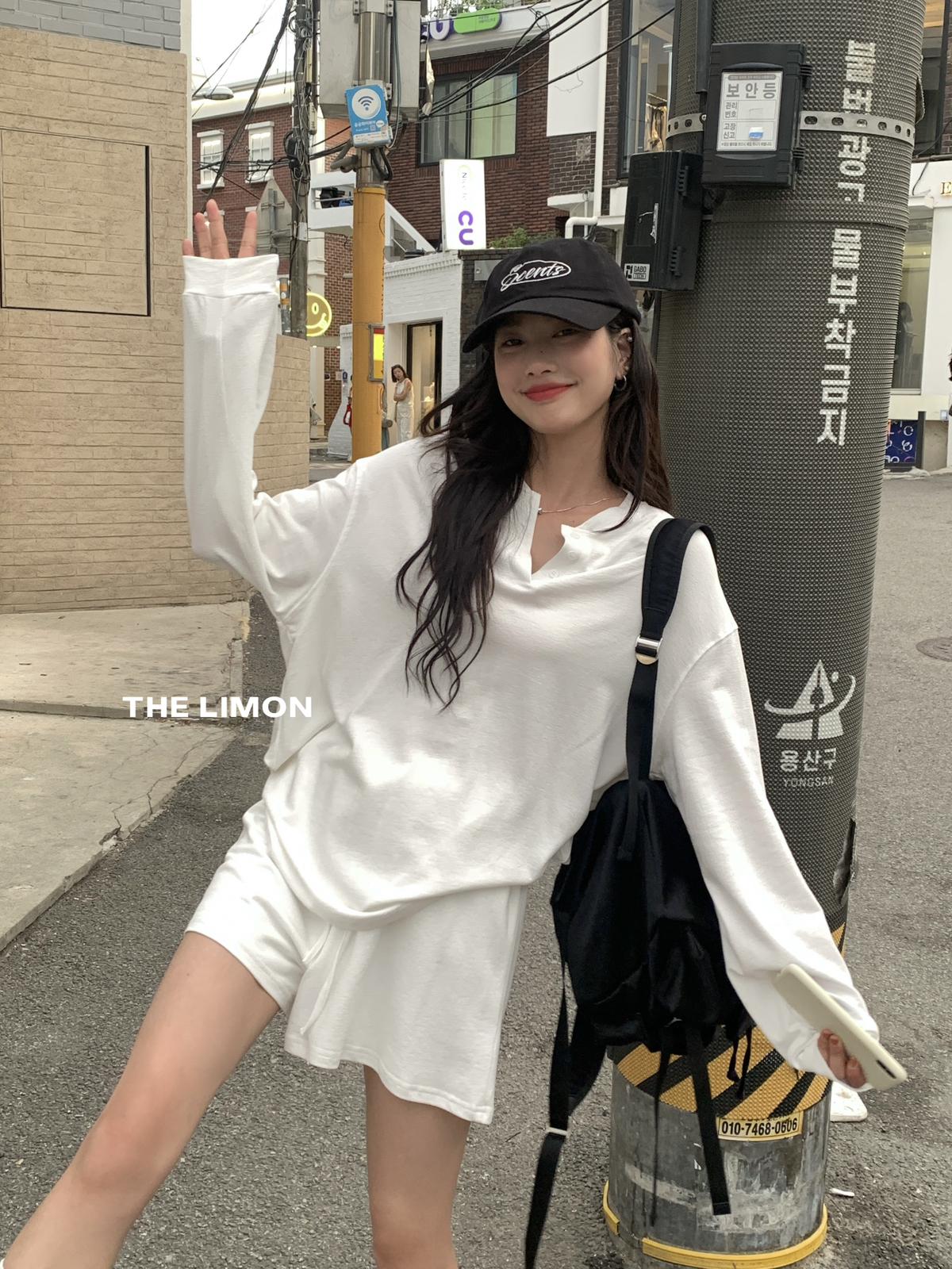 【C6707】鬆弛感上衣+寬鬆休閒短褲套裝
