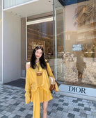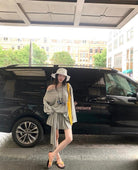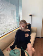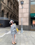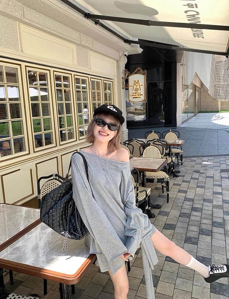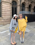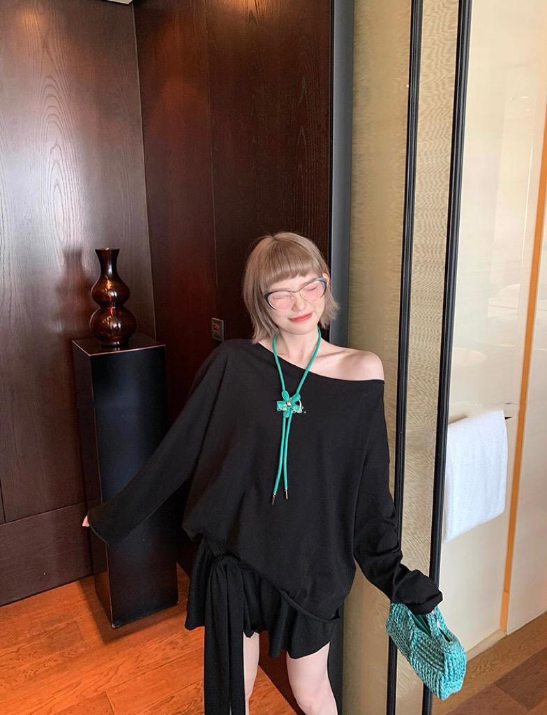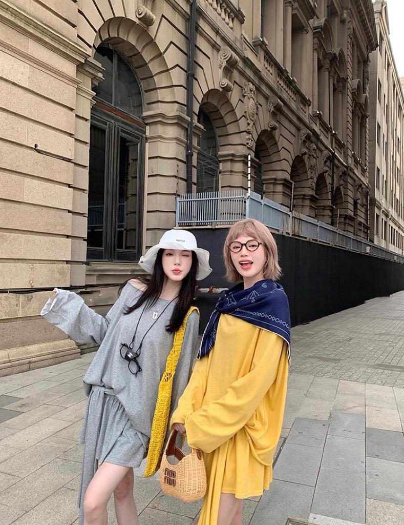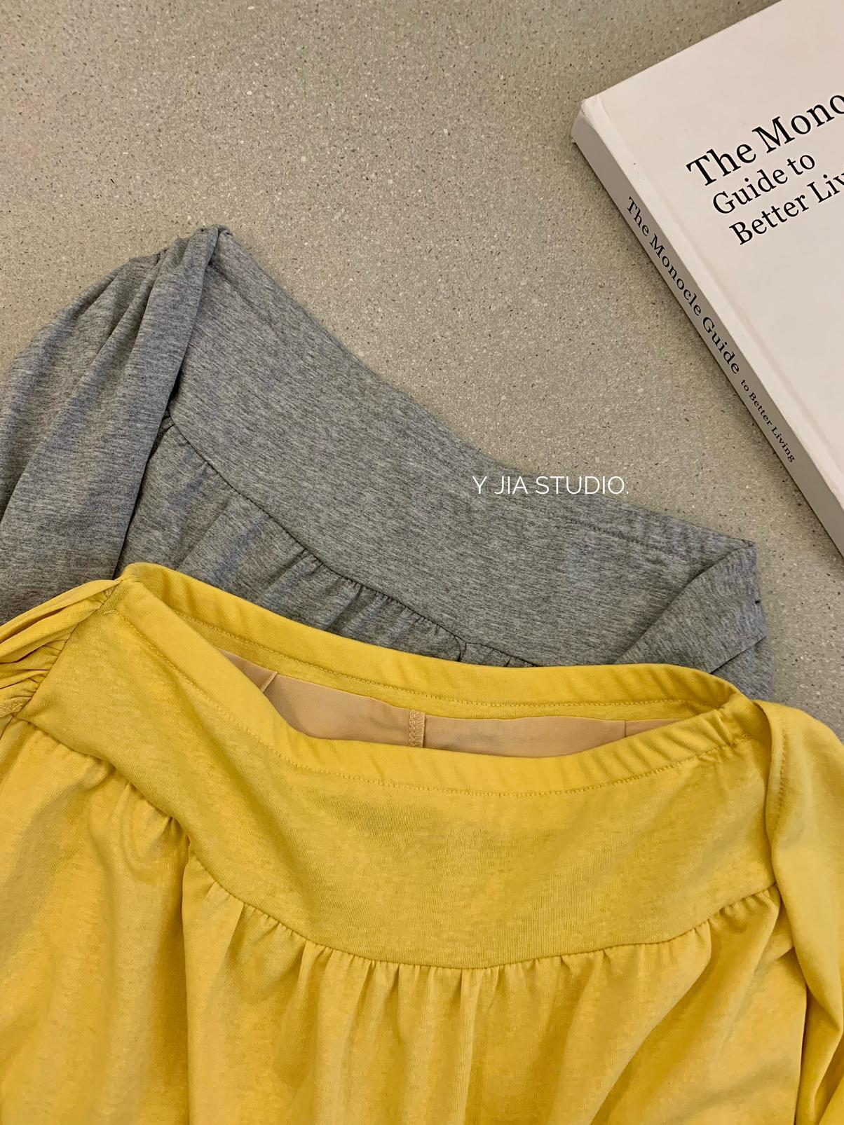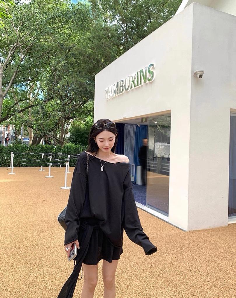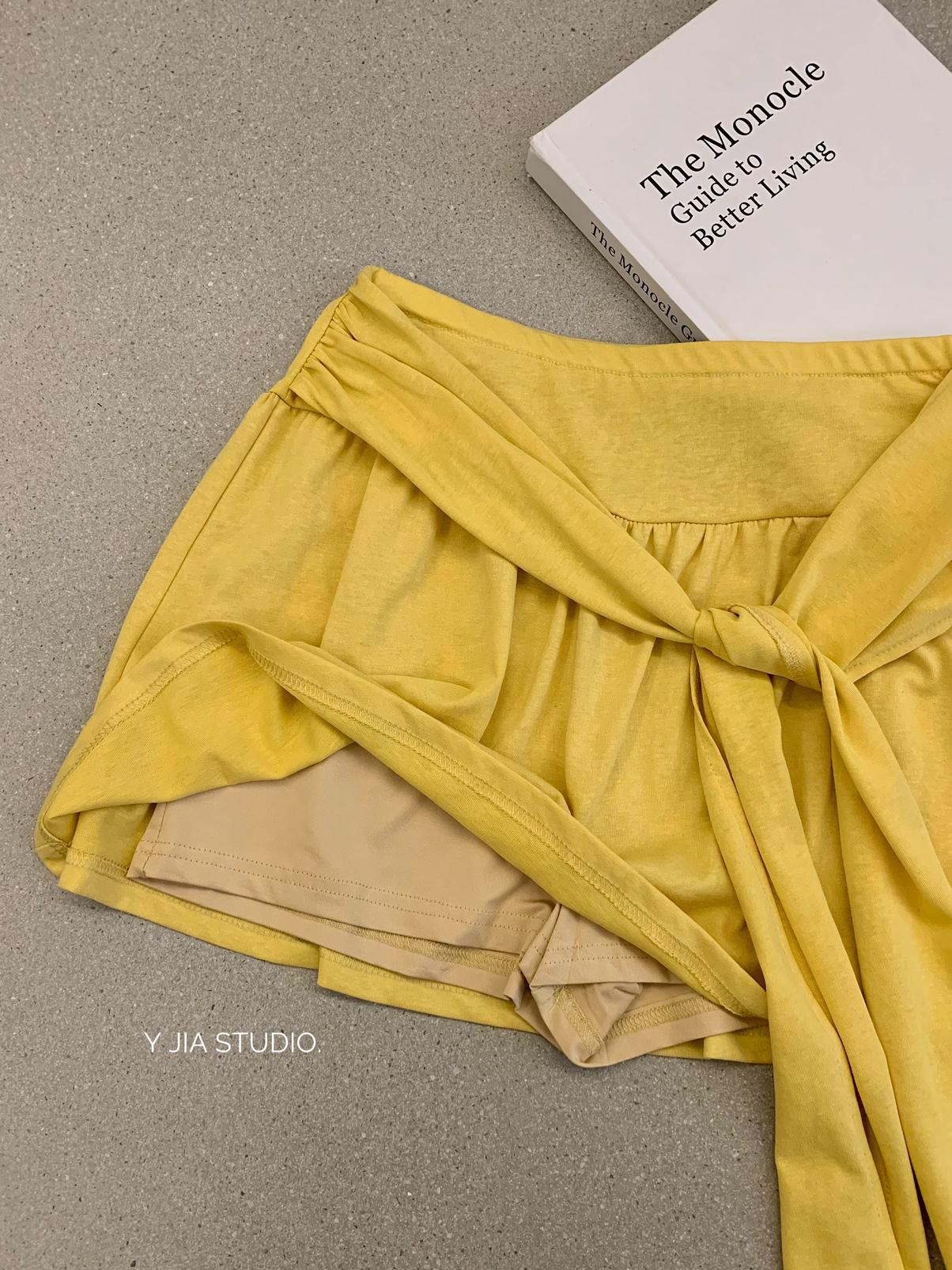 【C6904】小衆慵懶寬鬆辣妹風長袖T恤+設計感綁帶百褶半裙套裝