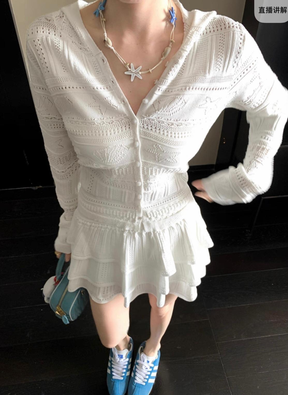 3. 【C6953】海星貝殼連帽長袖針織開衫+半身裙套裝