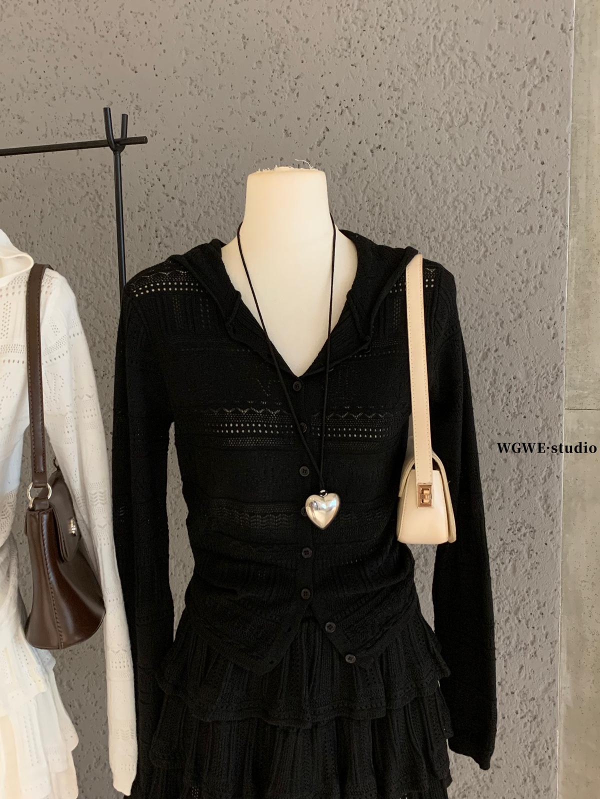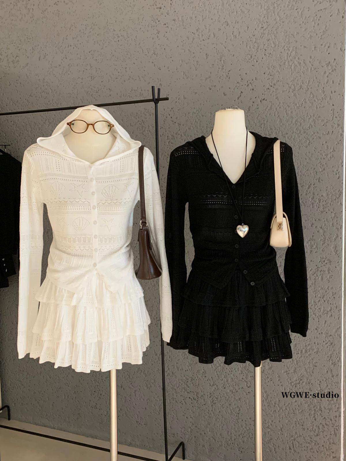 【C6953】海星貝殼連帽長袖針織開衫+半身裙套裝