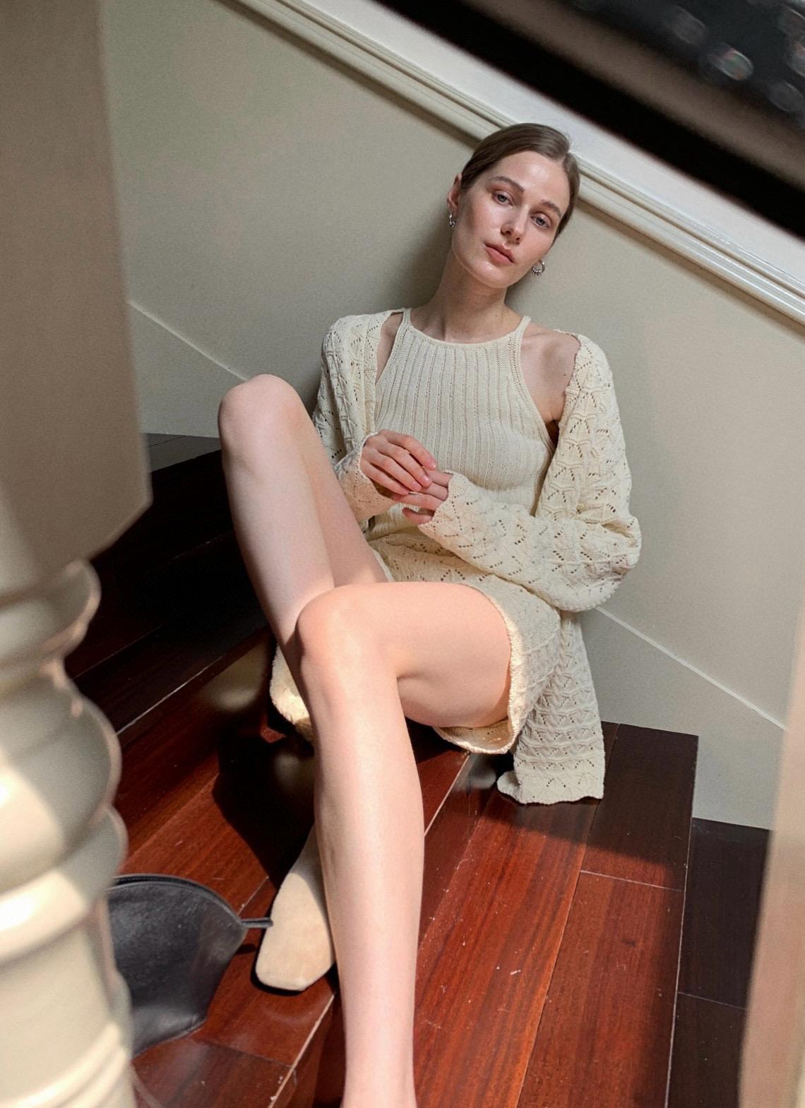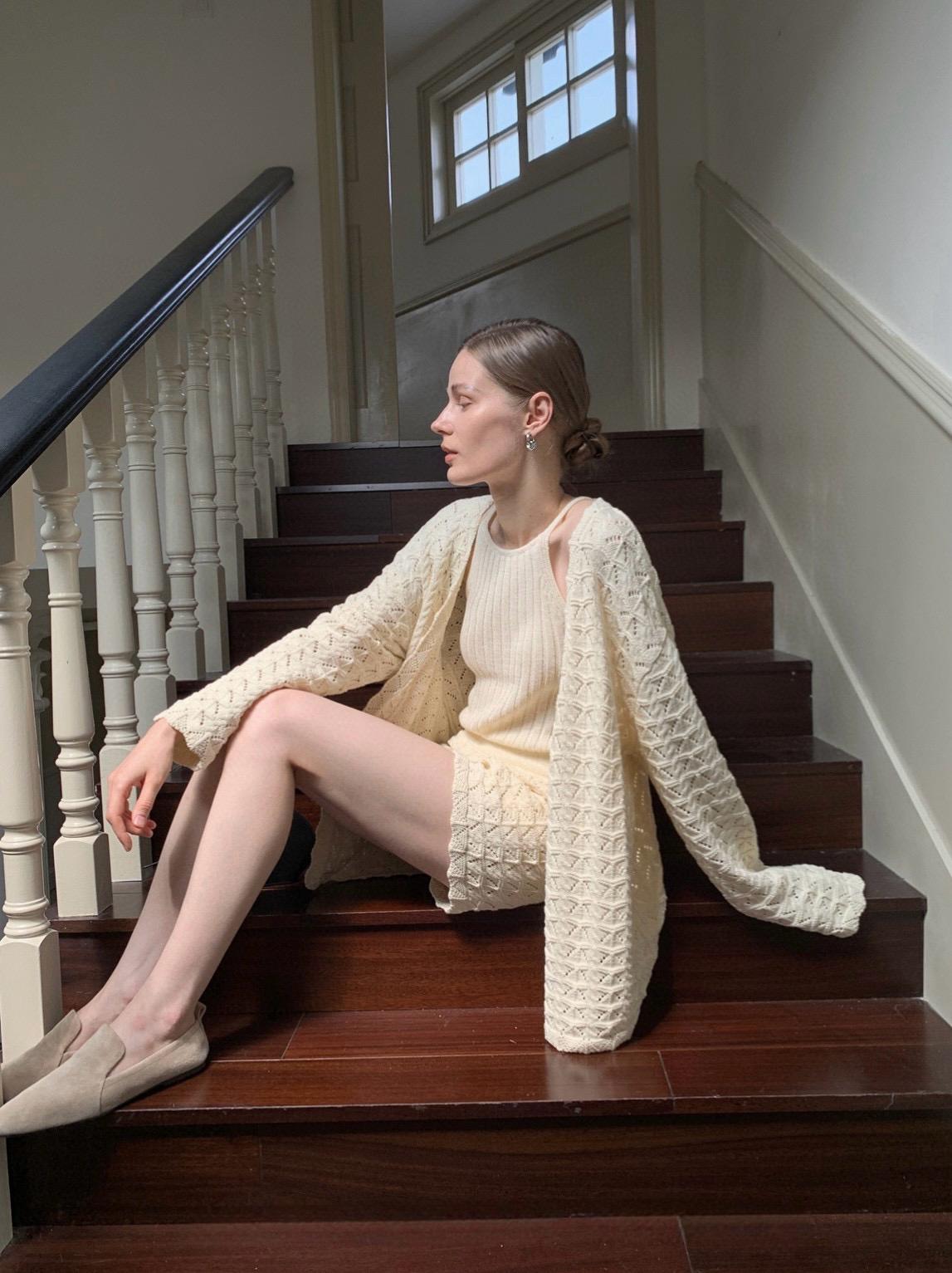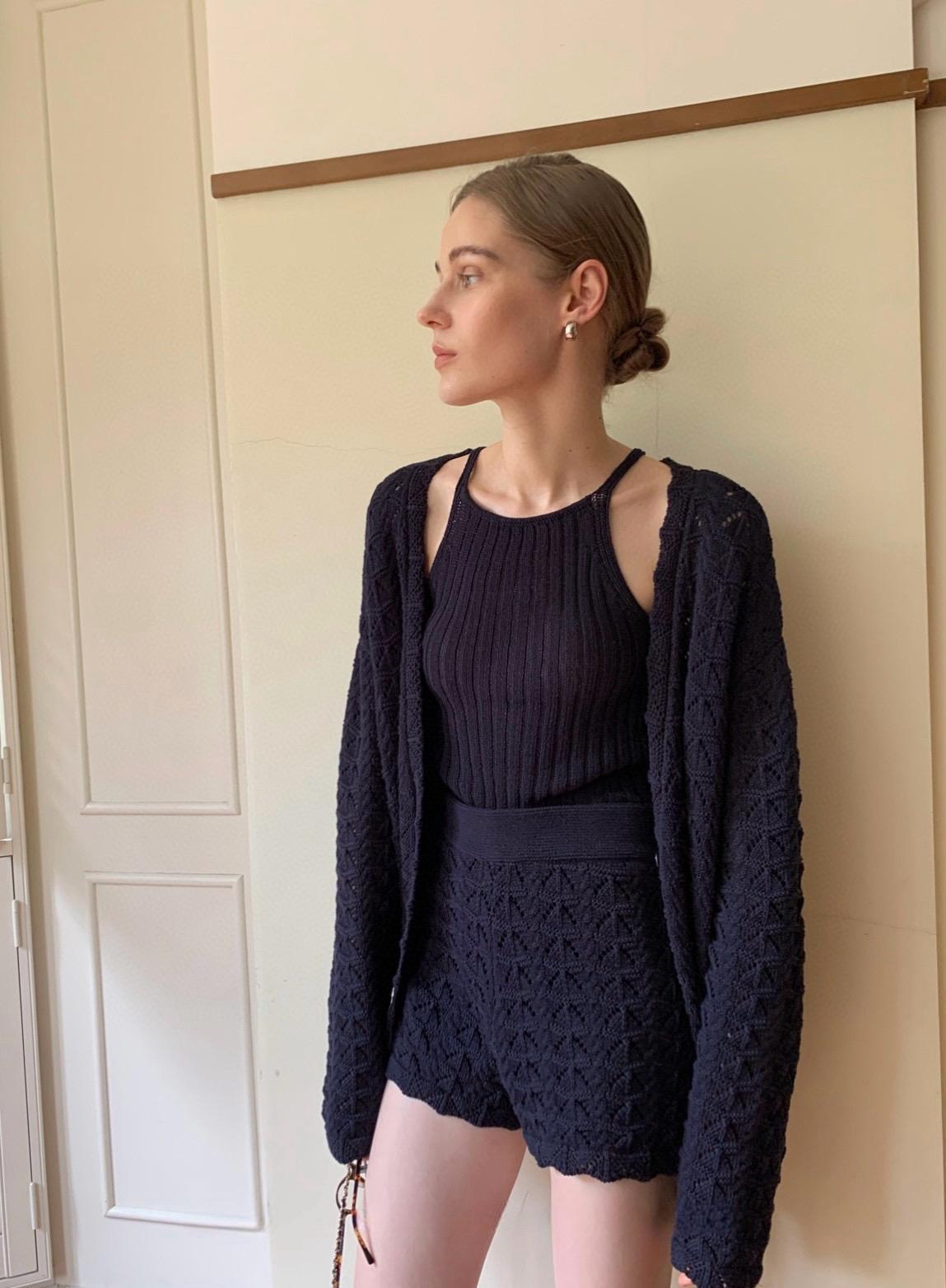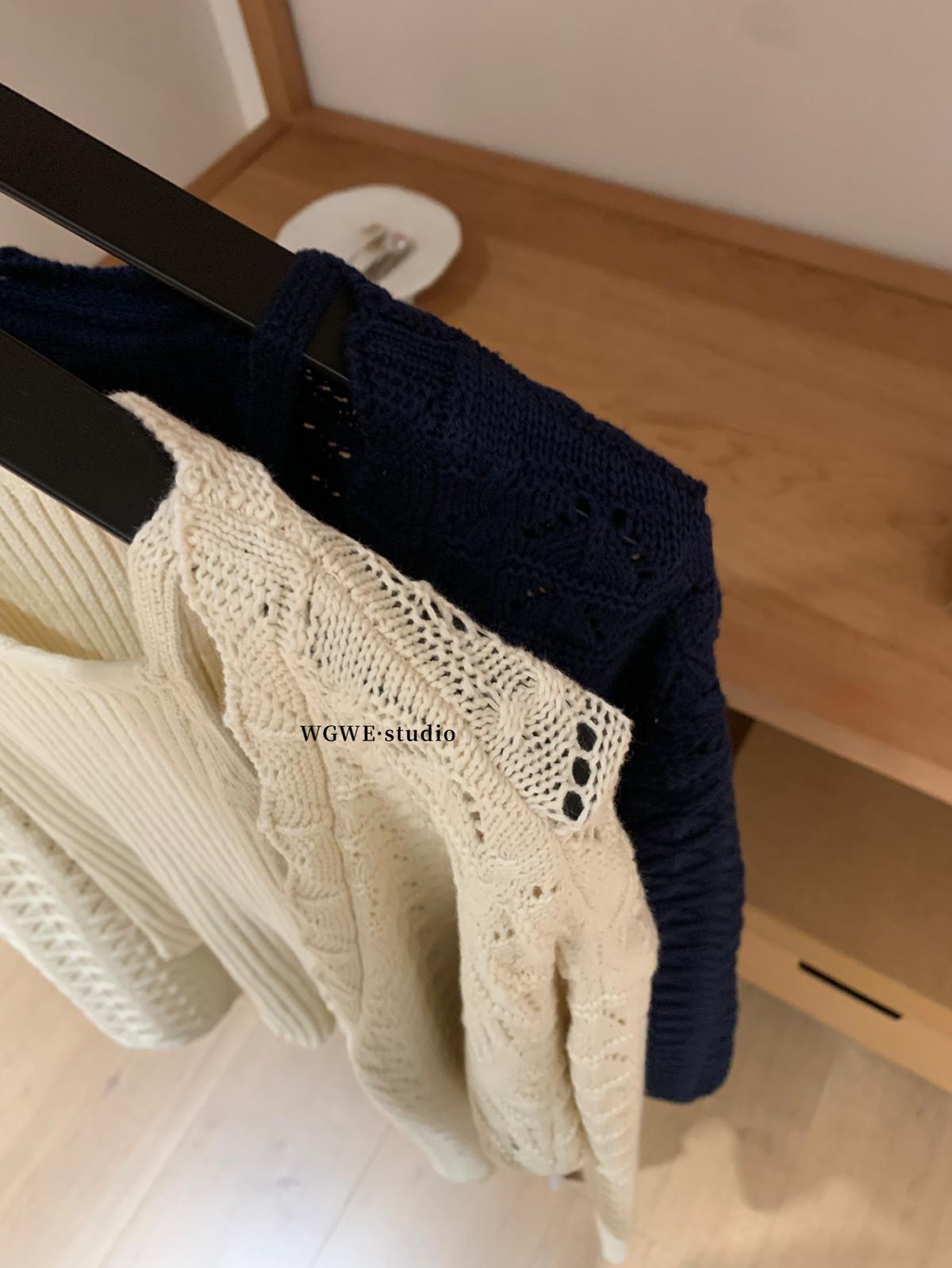 3. 【C7195】復古手工感鏤空針織開衫+吊帶背心+百搭短褲套裝