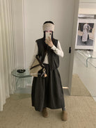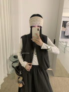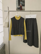 3. 【C7382】冬日白月光韓標簡約口袋馬甲+花苞蓬蓬甜美減齡半身裙套裝