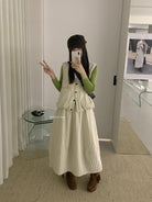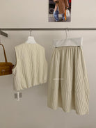 【C7382】冬日白月光韓標簡約口袋馬甲+花苞蓬蓬甜美減齡半身裙套裝