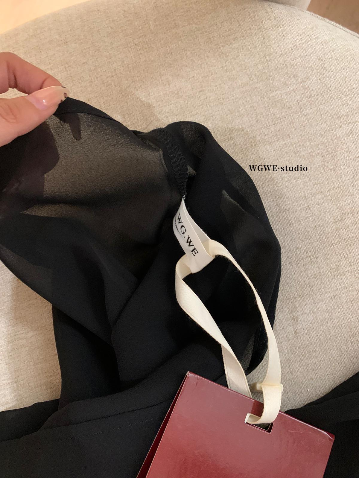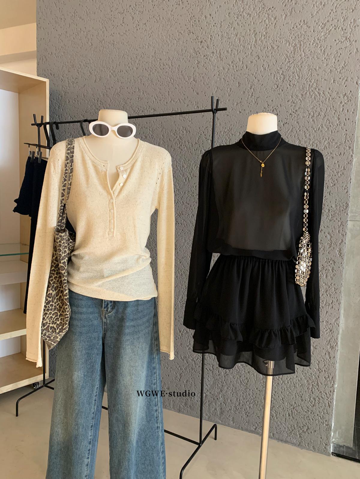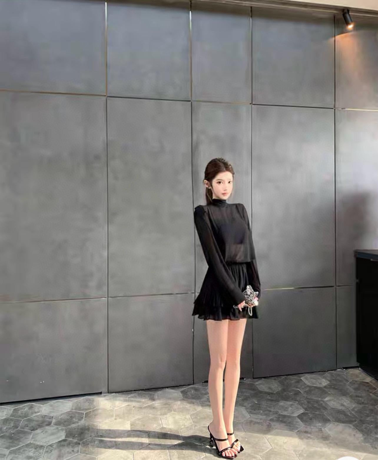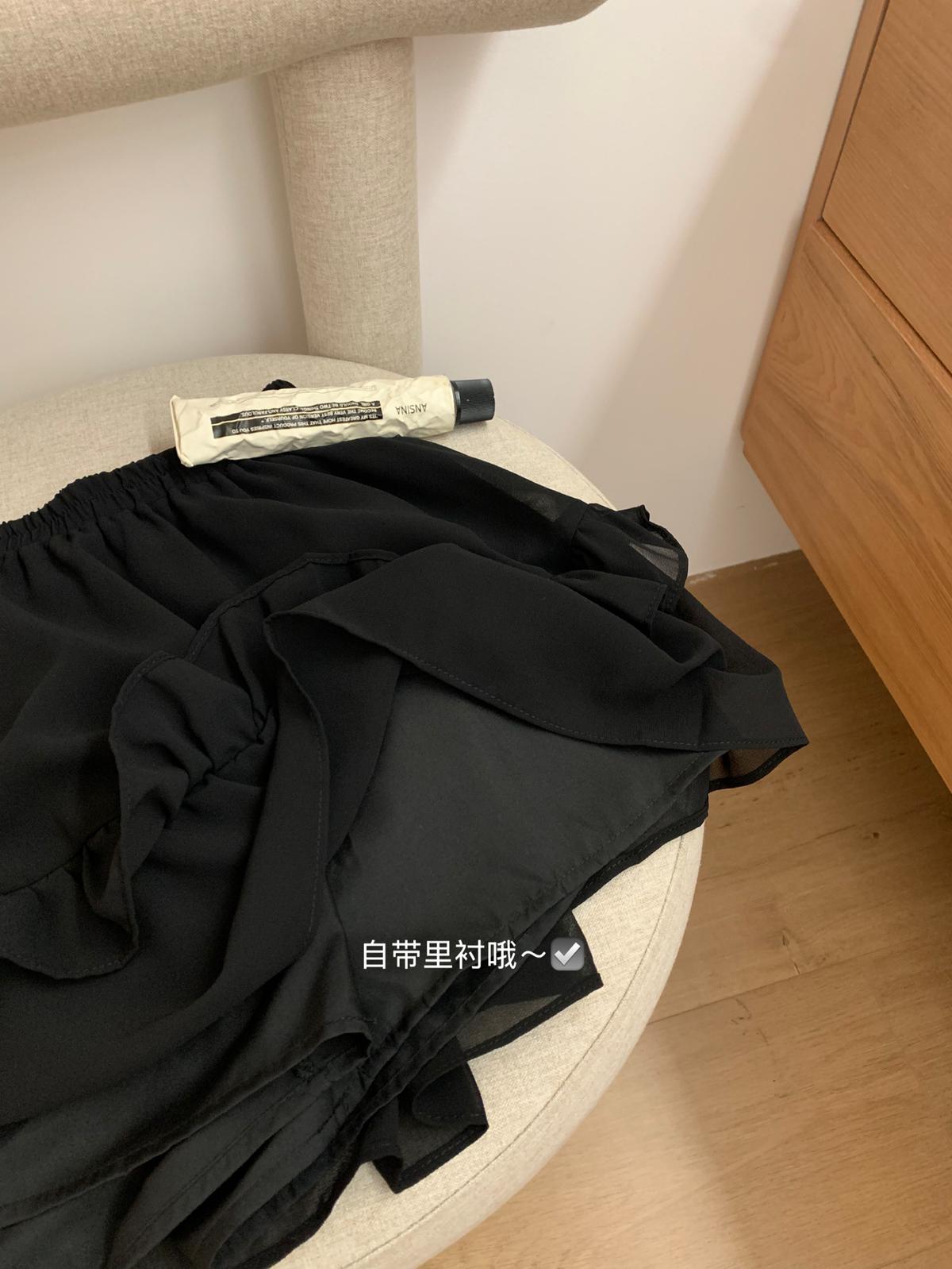3. 【C7564】「屋頂」氣質美女黑色長袖小衫+荷葉短裙套裝