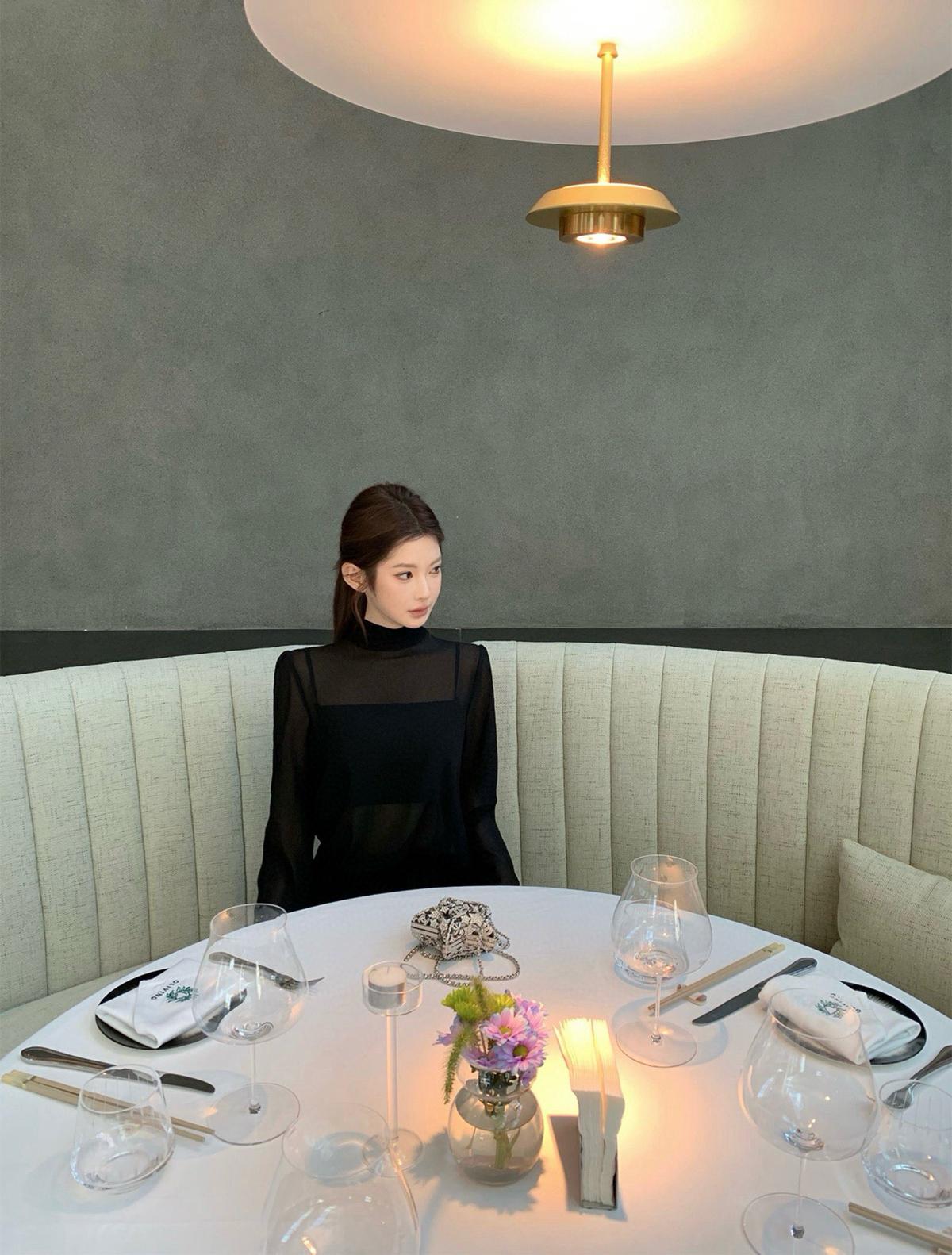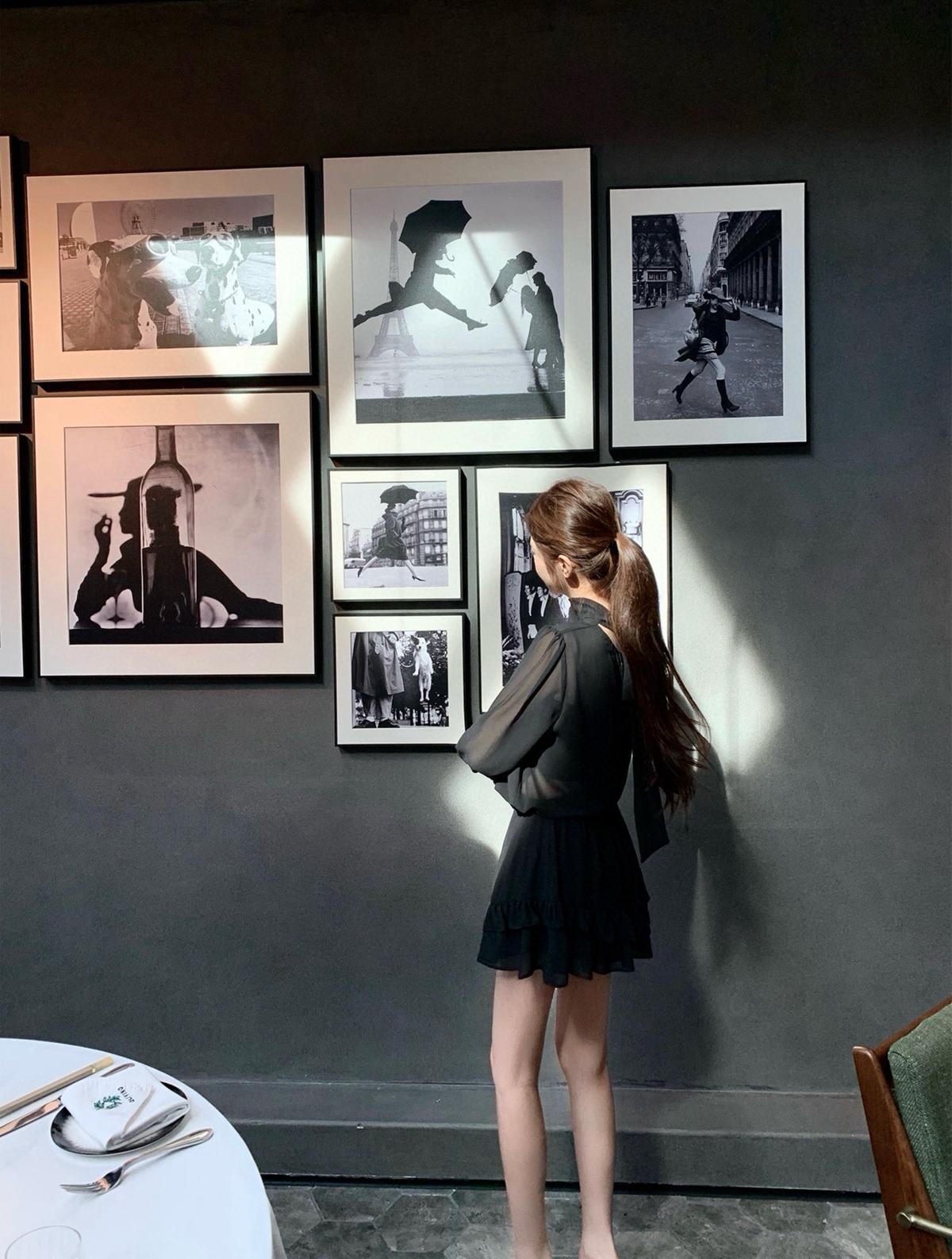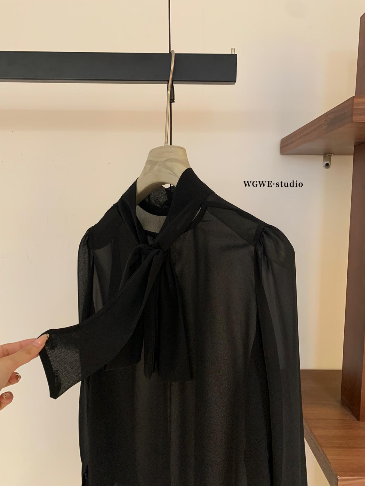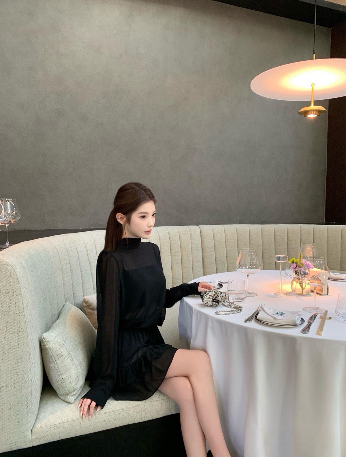 3. 【C7564】「屋頂」氣質美女黑色長袖小衫+荷葉短裙套裝