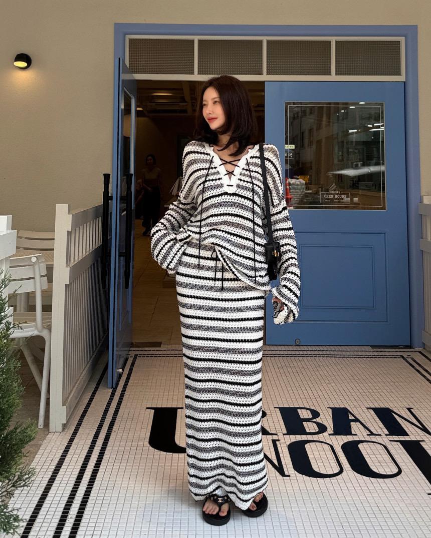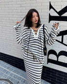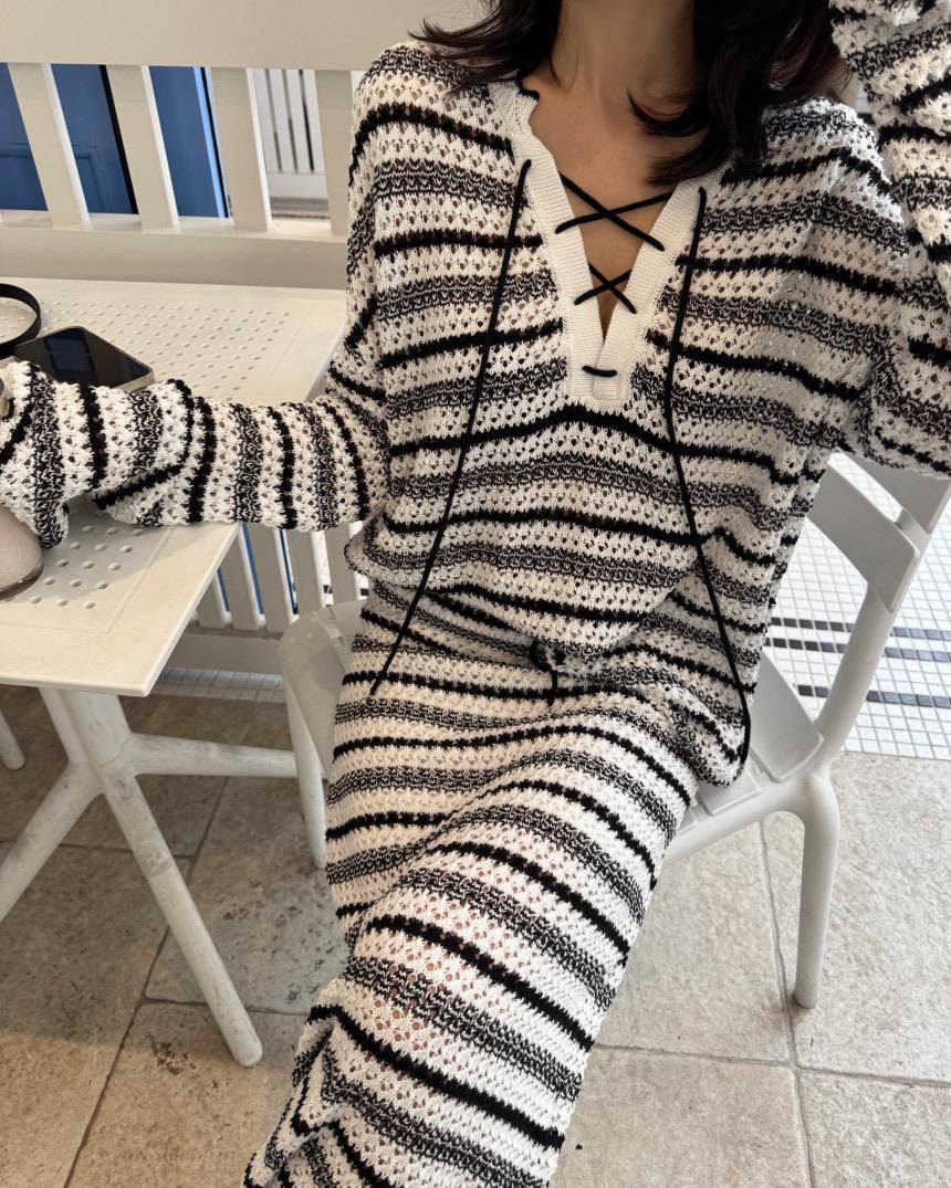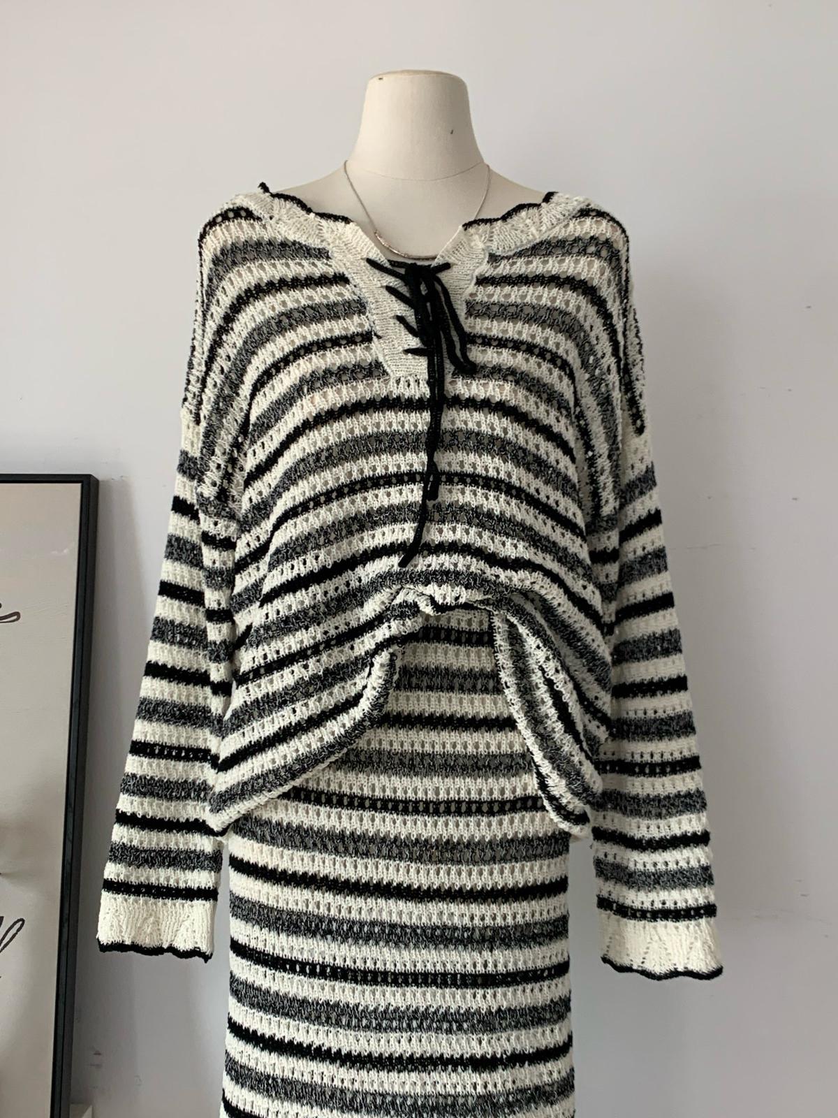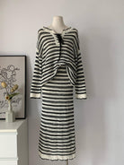 3. 【C7635】韓繫條紋針織氣質v領上衣➕高腰半身裙套裝