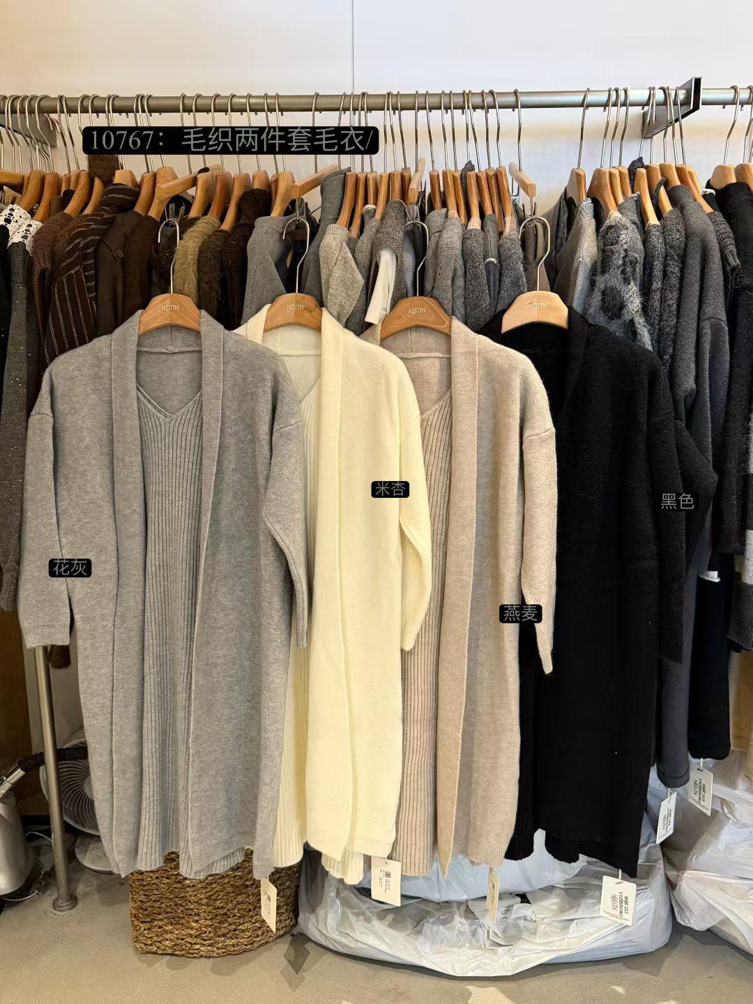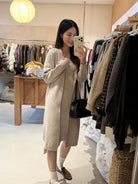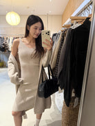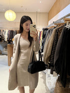 【C8161】極簡慵懶風吊帶v領連衣裙+開衫毛衣套裝
