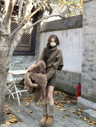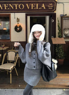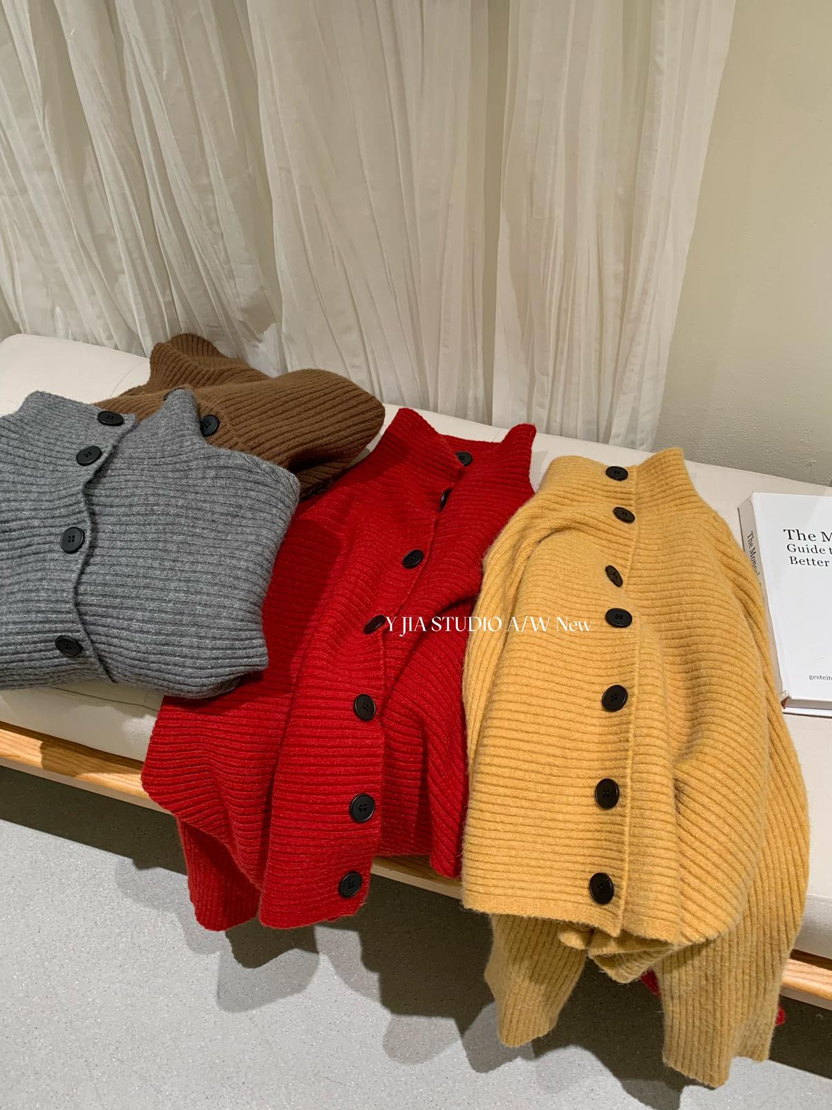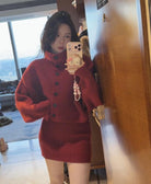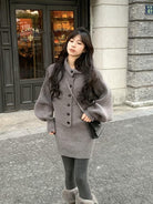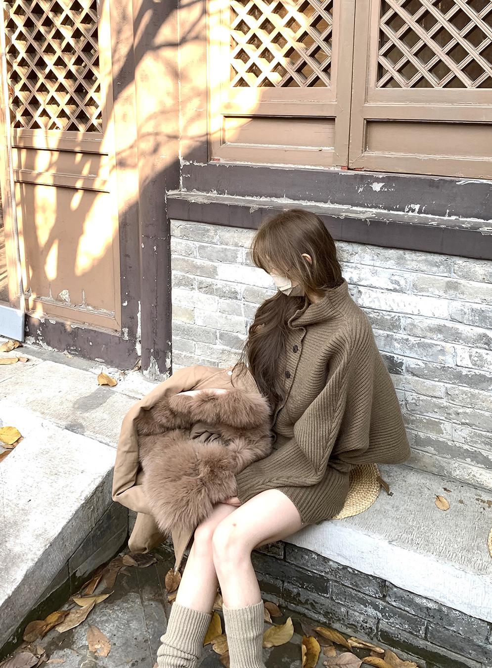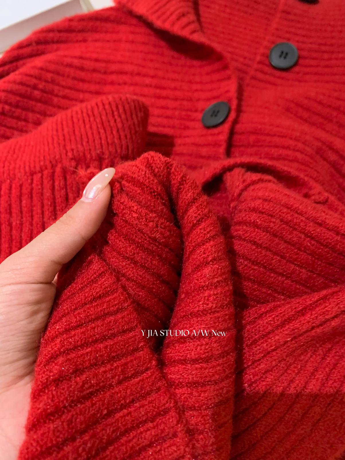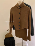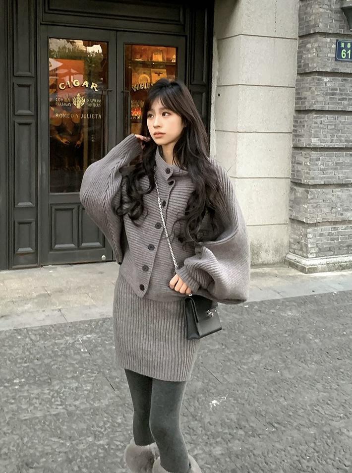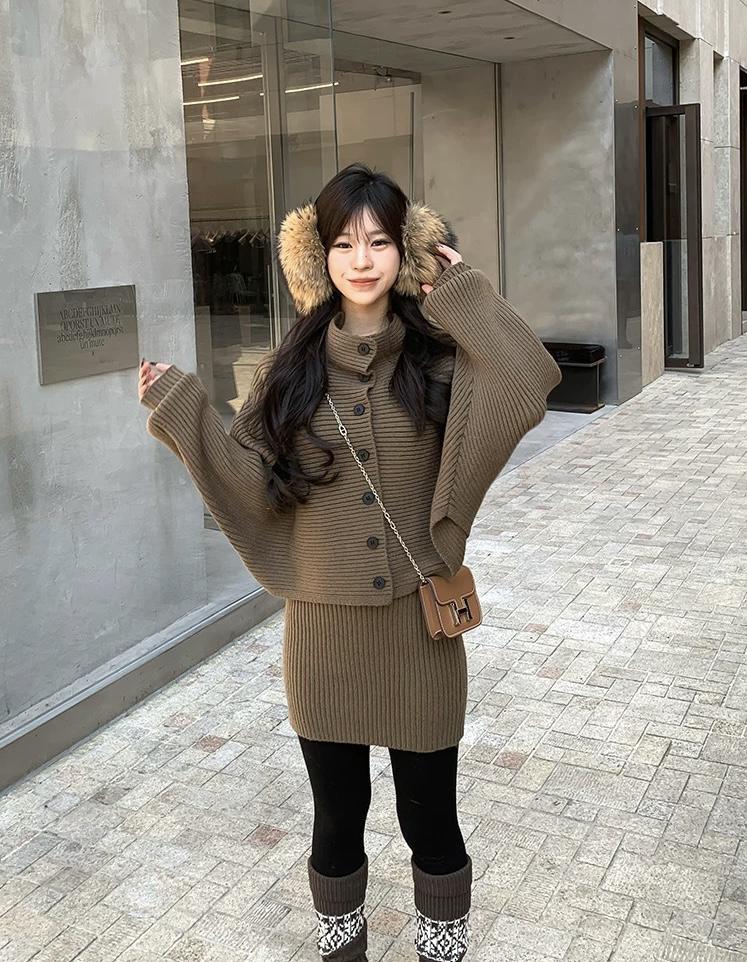 【C8219】高級感立領翻領棒針毛針織衫毛衣+高腰包臀半身裙套裝