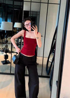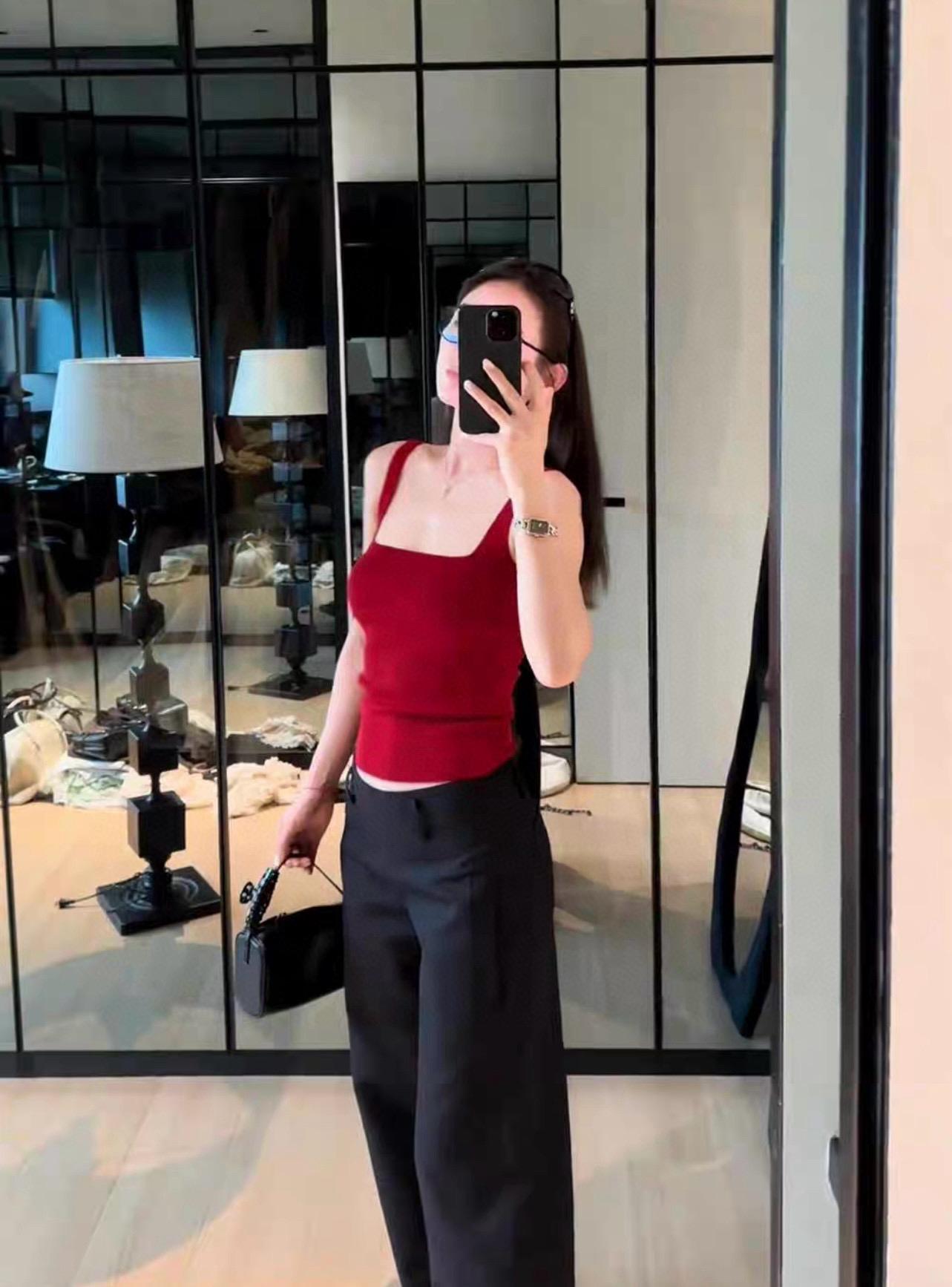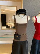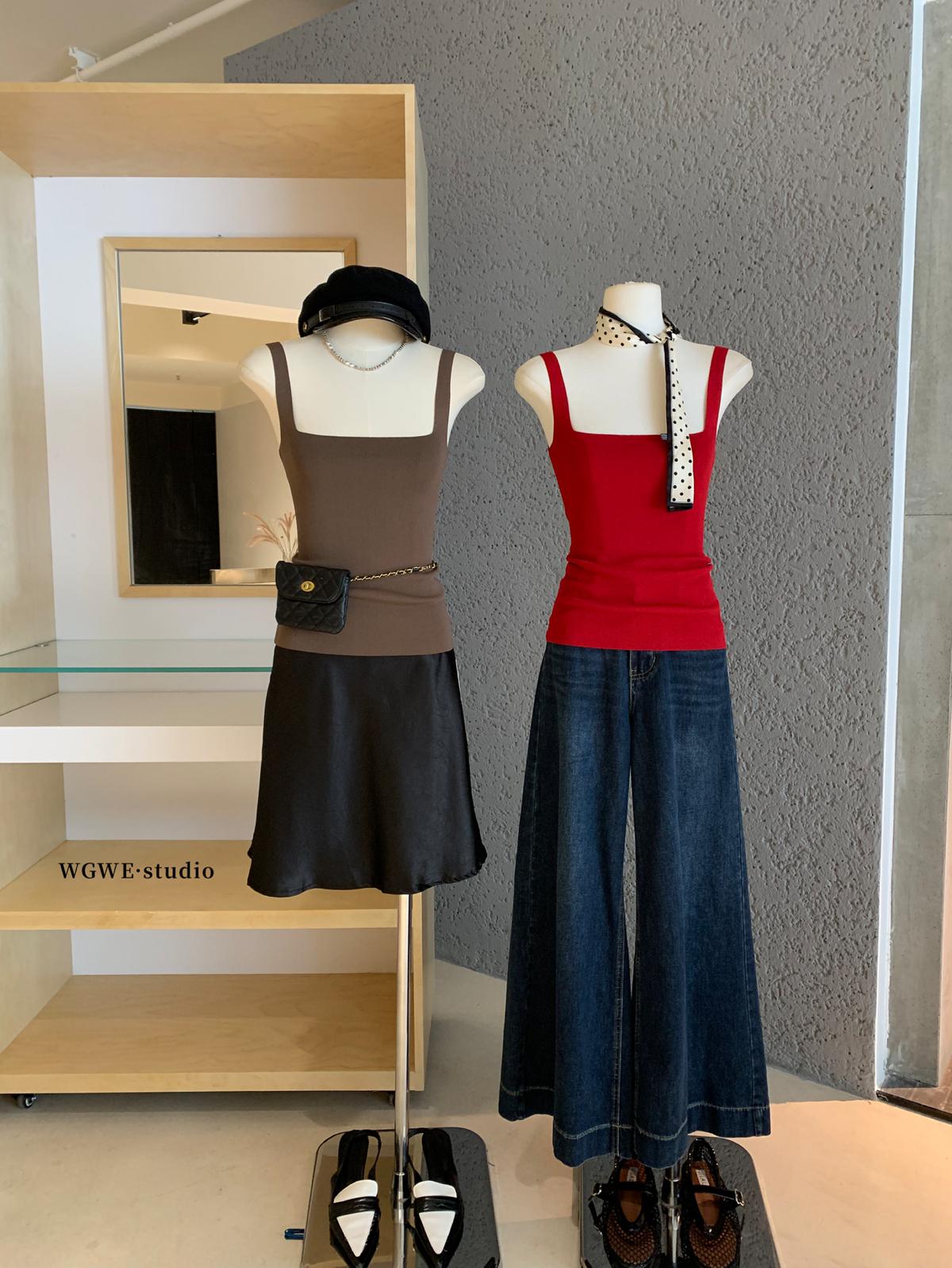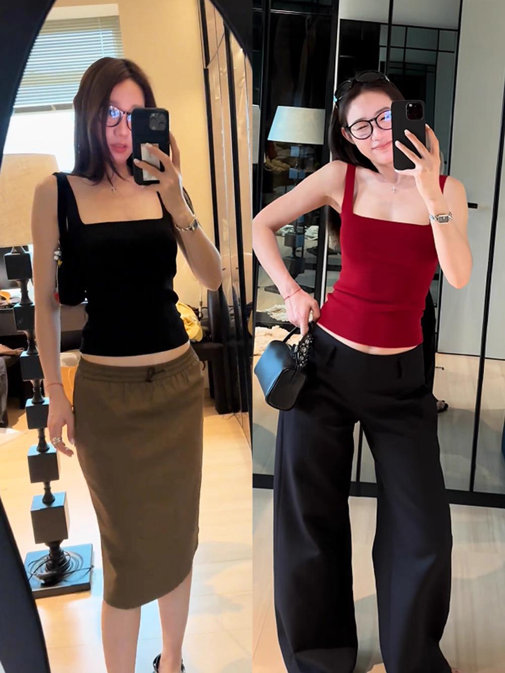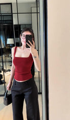 【C6702】法式大方領遮副乳顯瘦緊身小背心針織吊帶背心