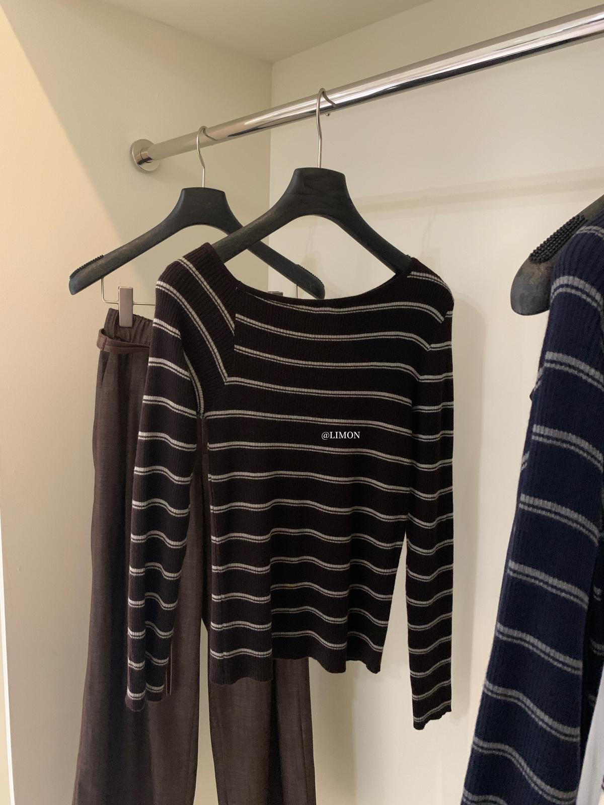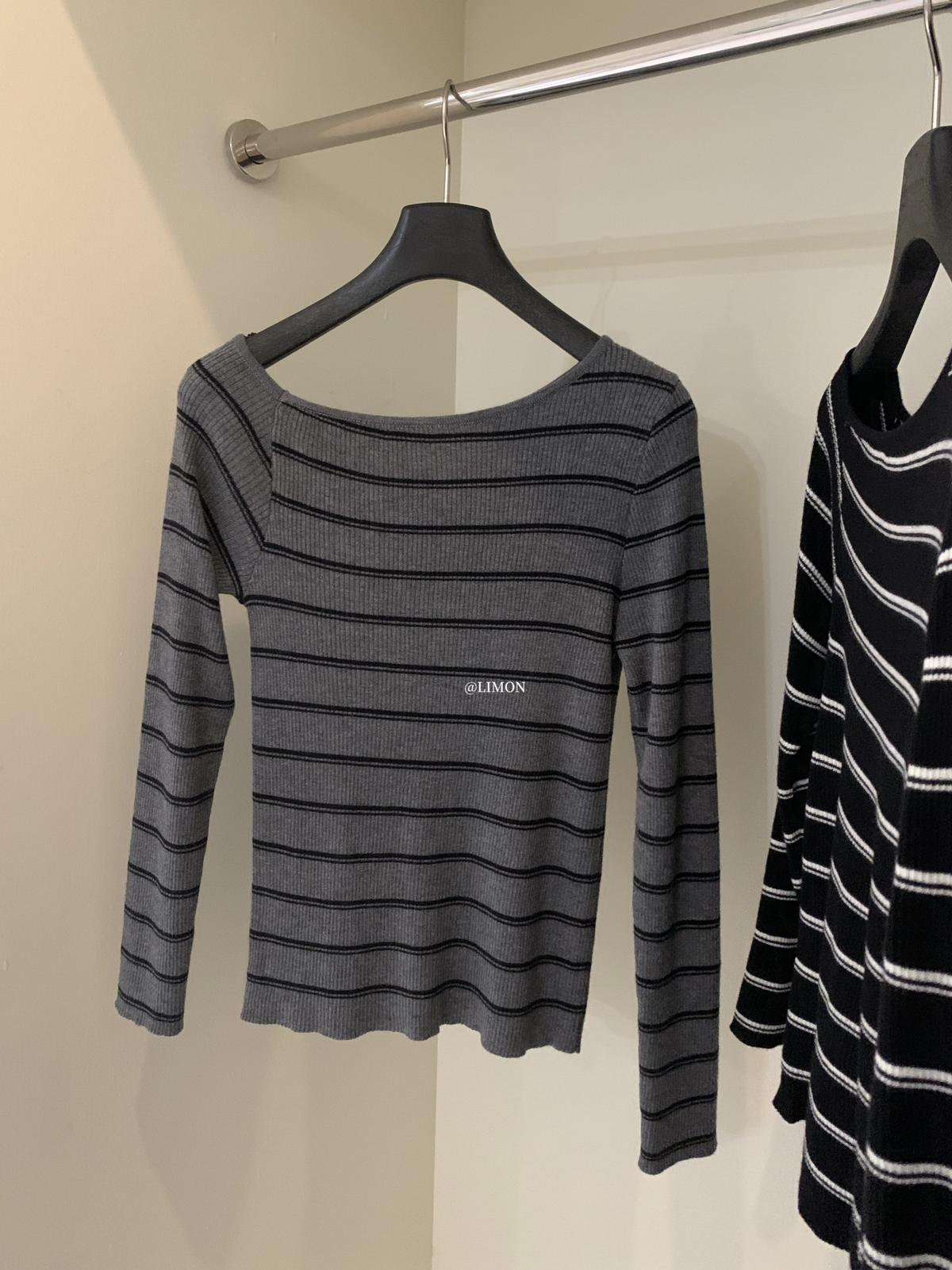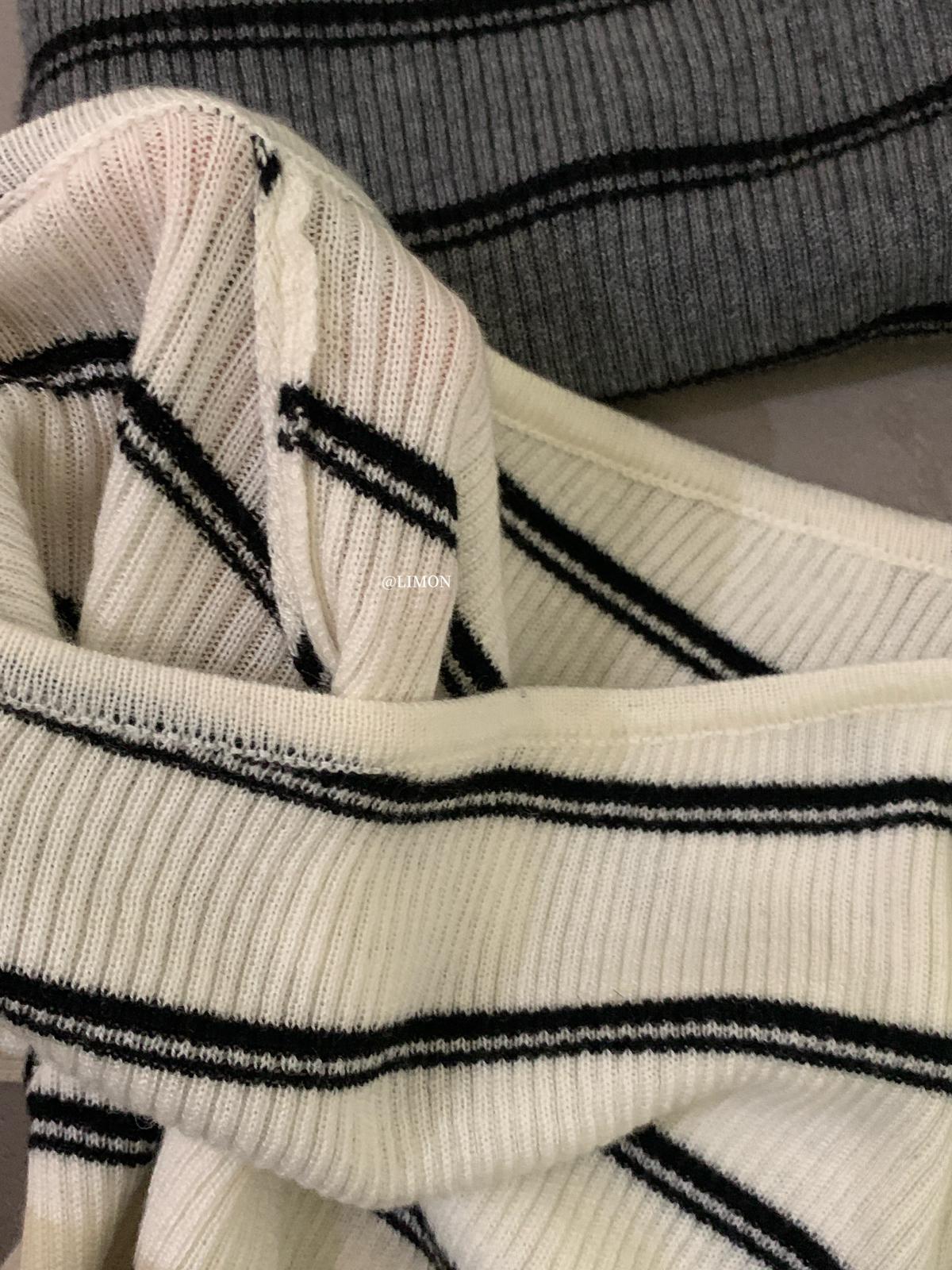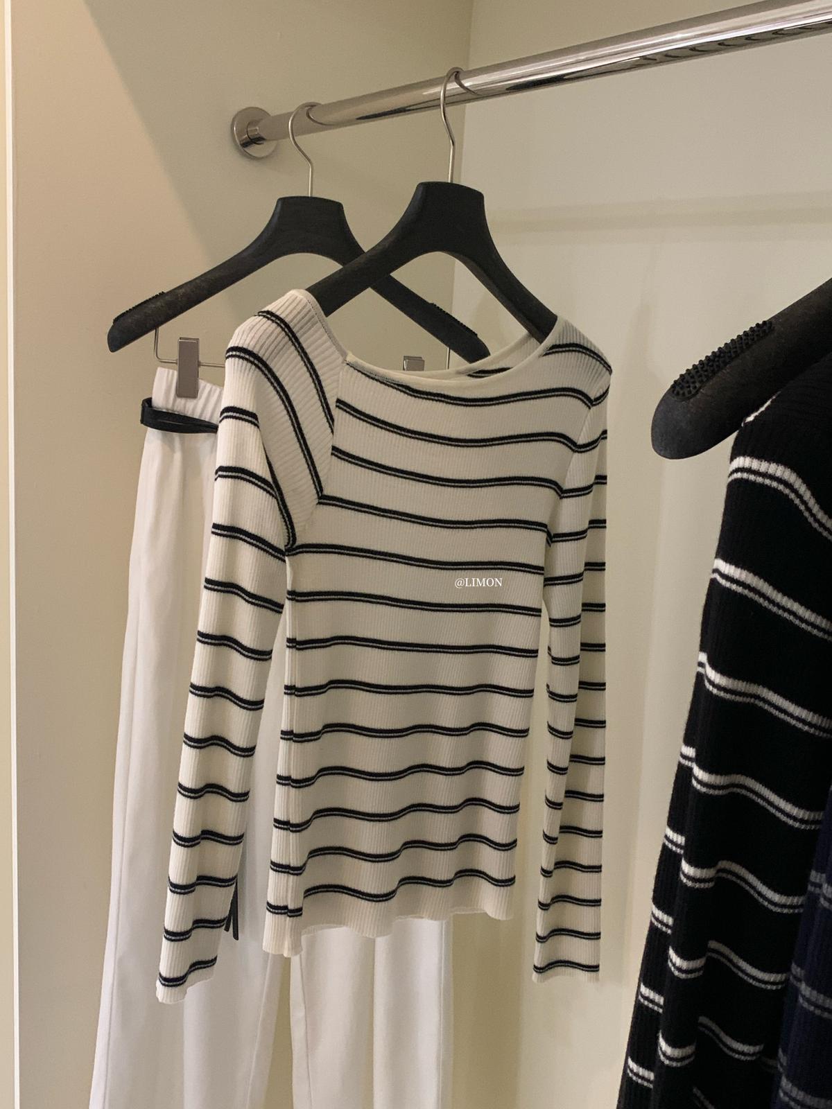 3. 【C6827】初秋慵懶斜肩設計感條紋針織衫(含8%羊毛)