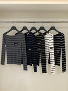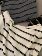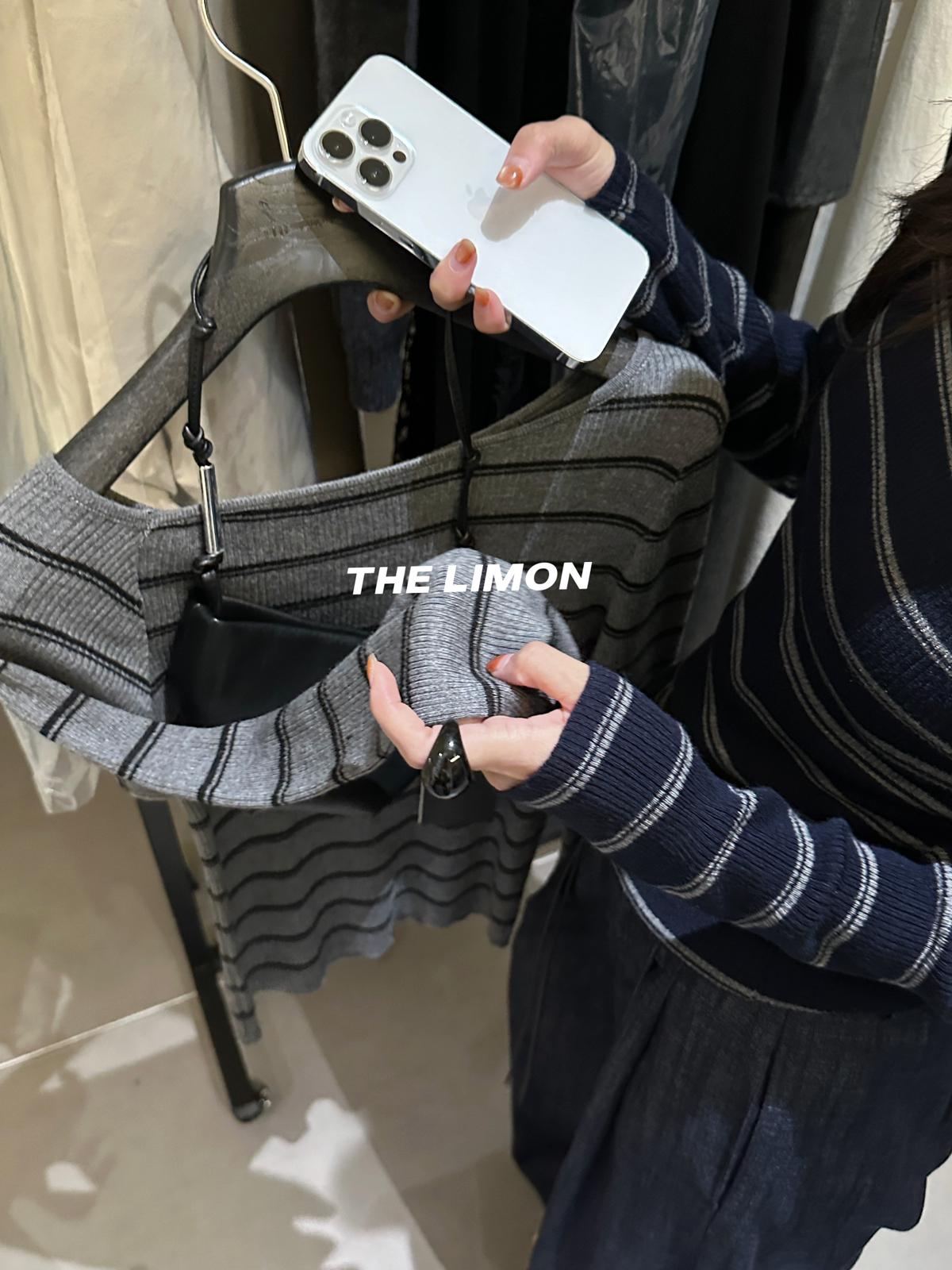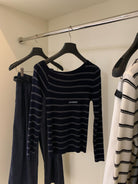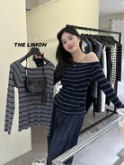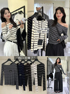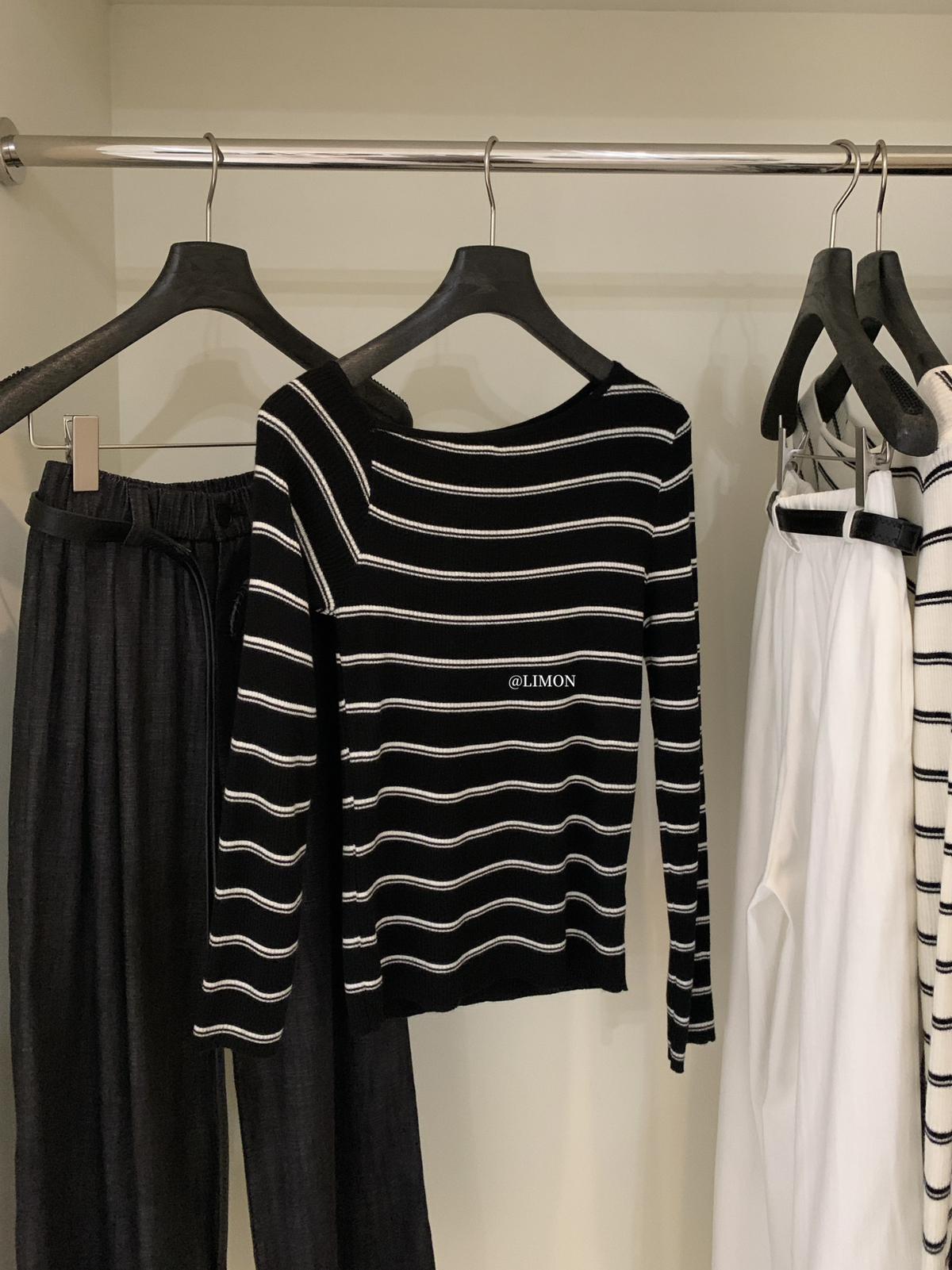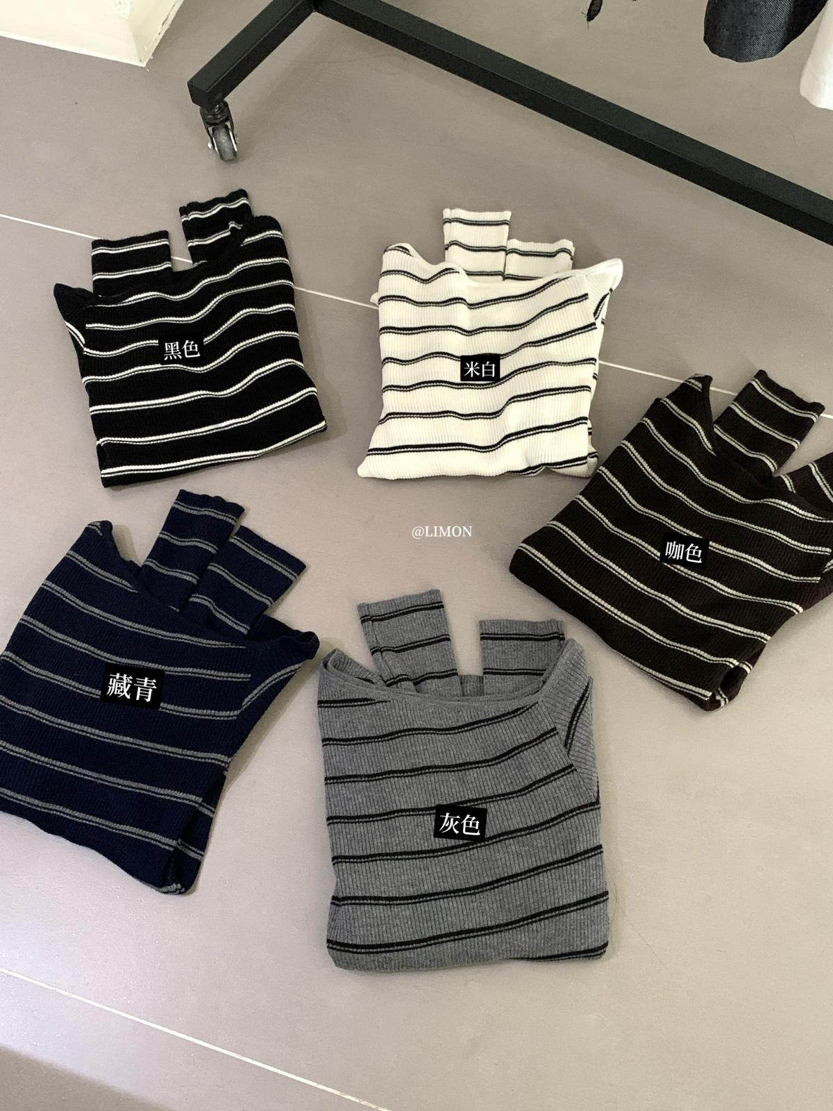 3. 【C6827】初秋慵懶斜肩設計感條紋針織衫(含8%羊毛)