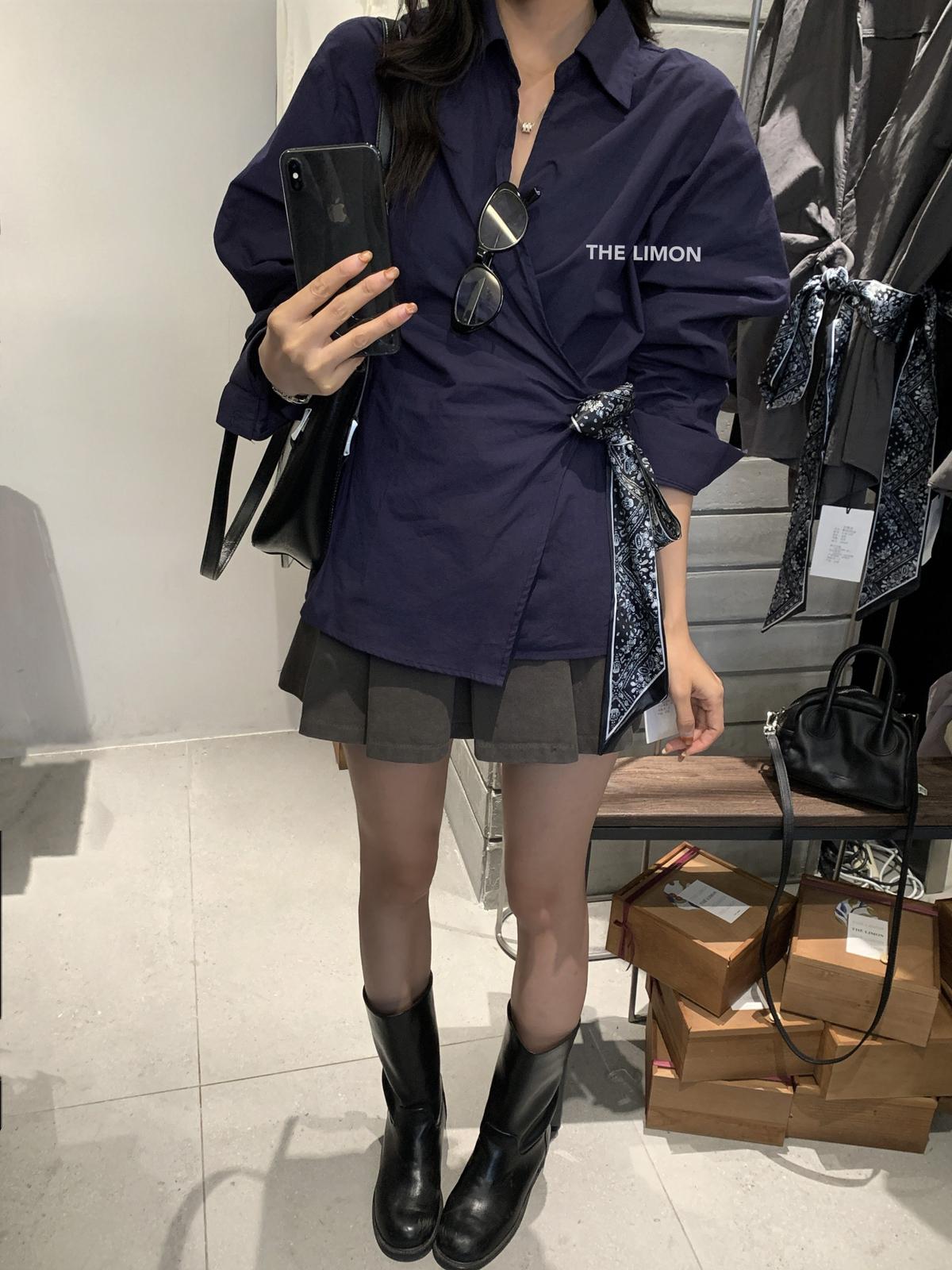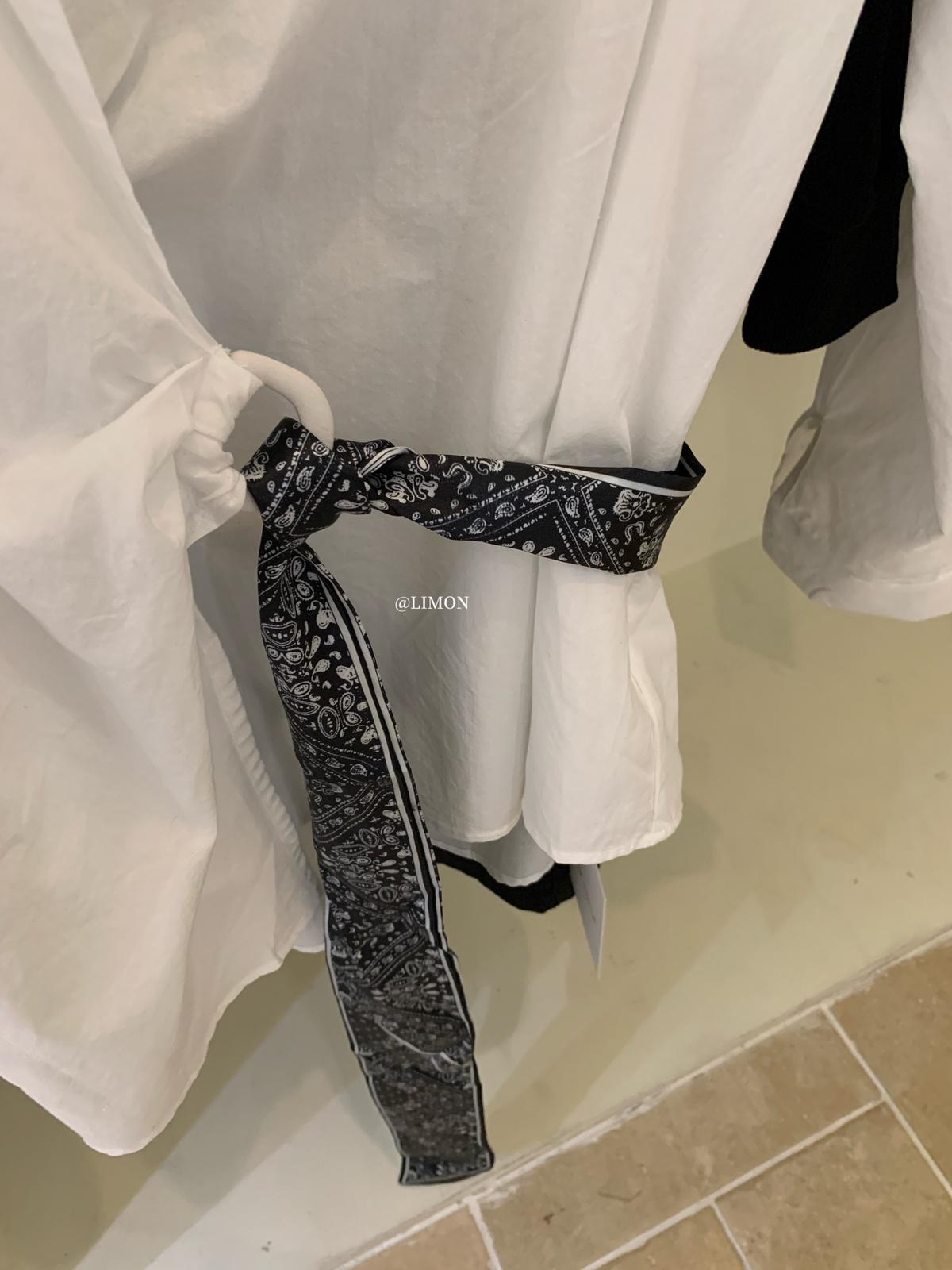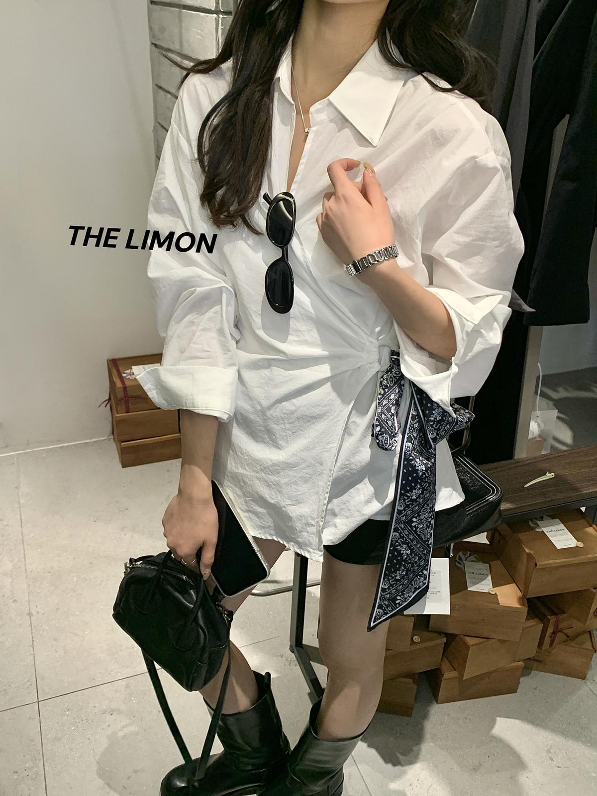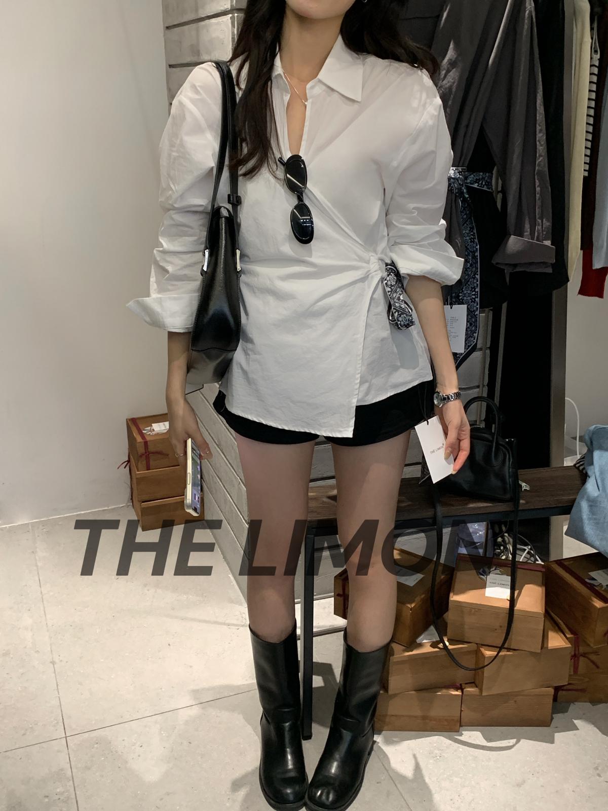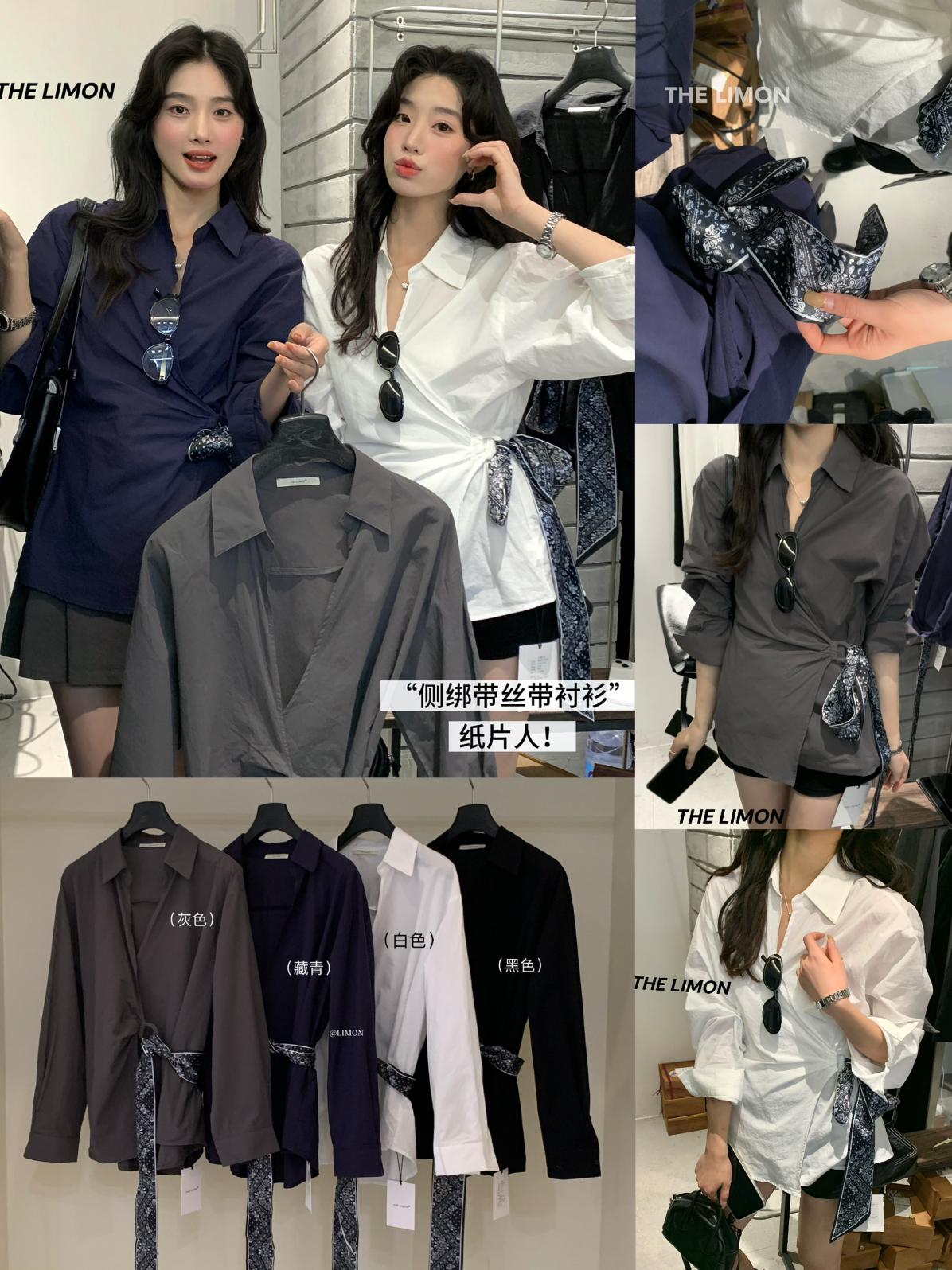 3. 【C6945】設計感側綁帶絲帶收腰襯衫(配絲巾)