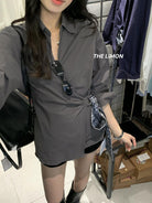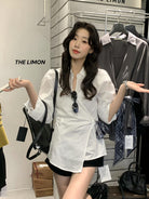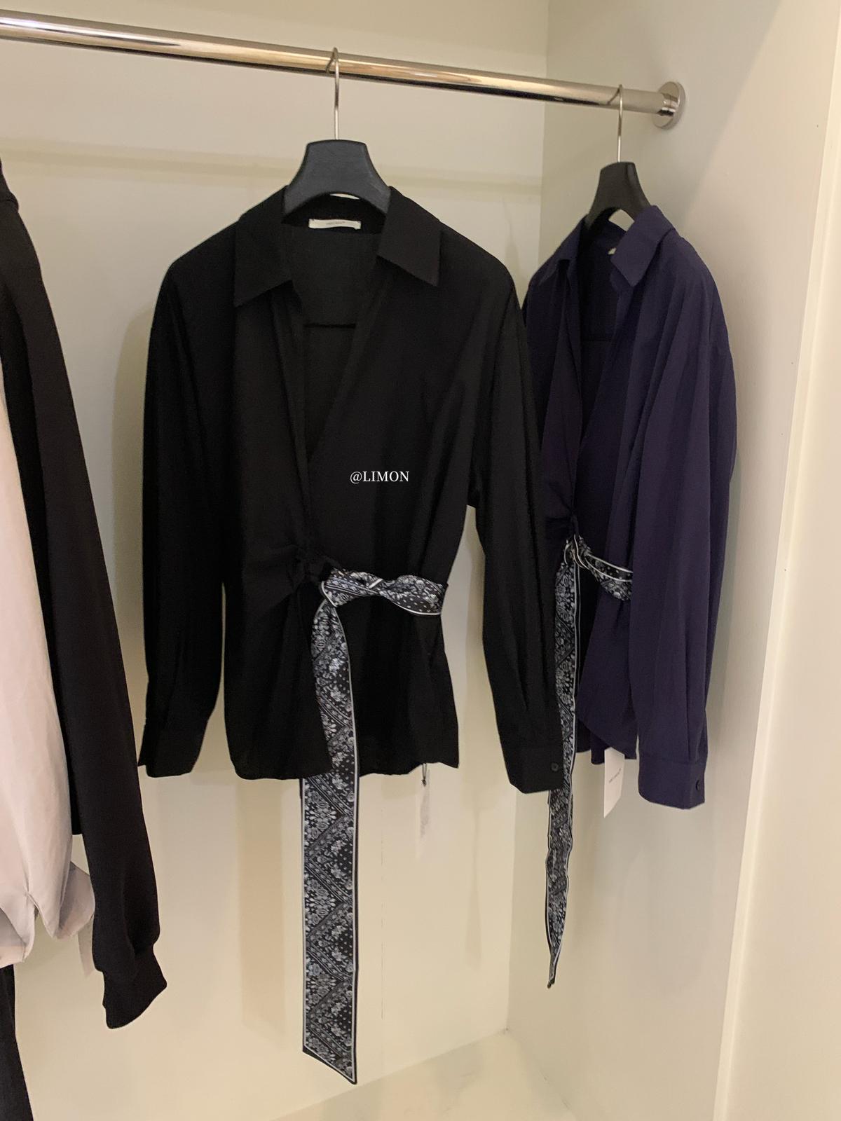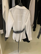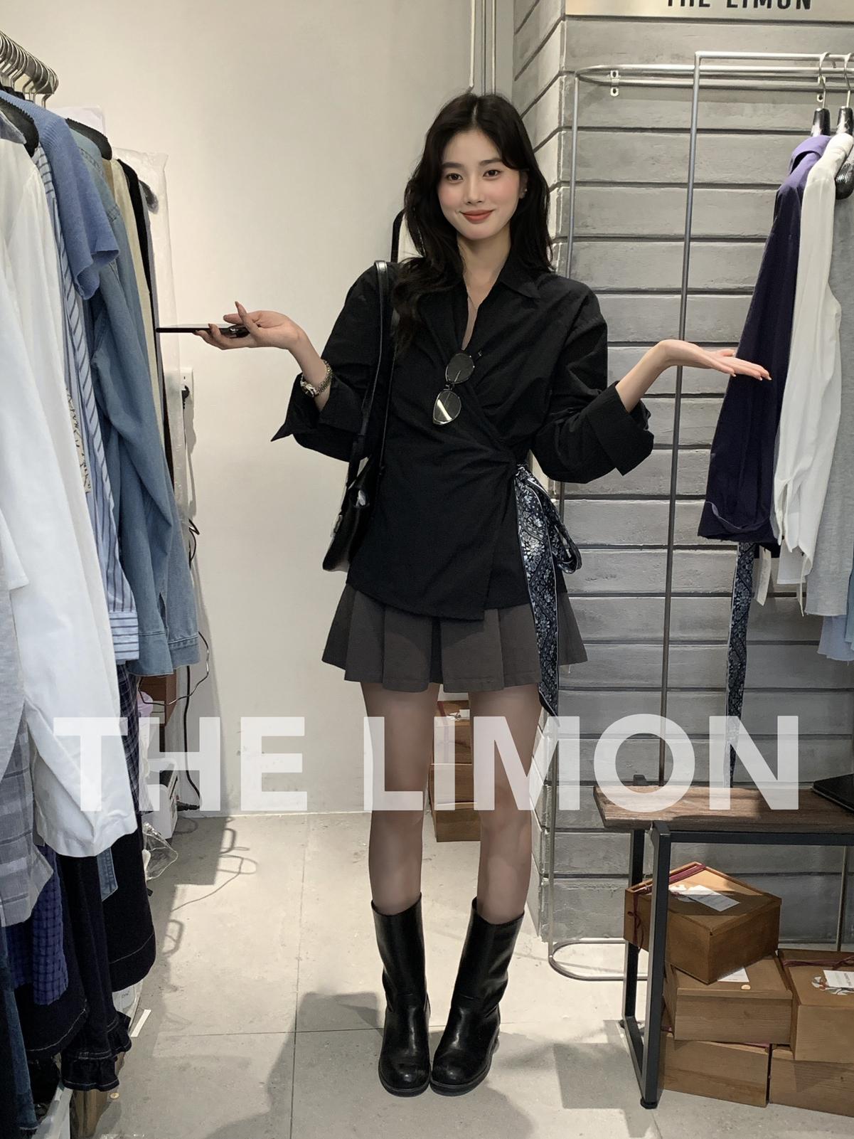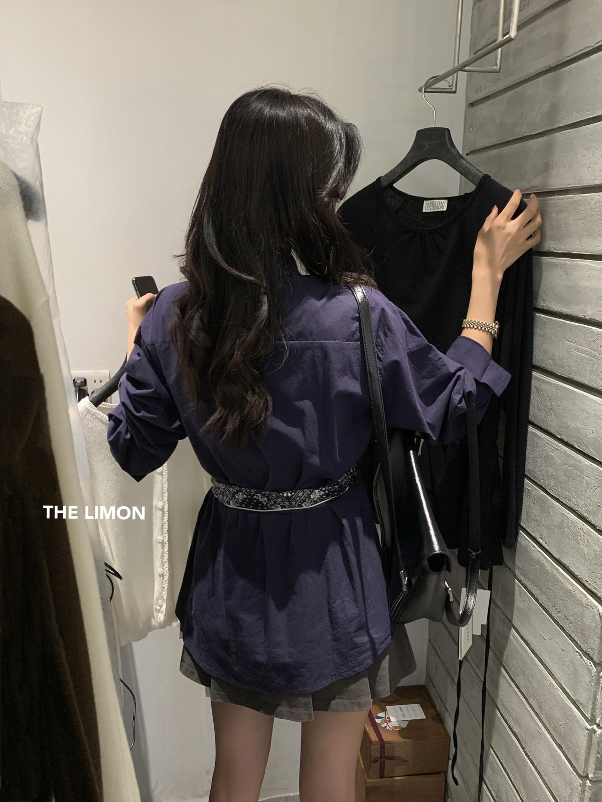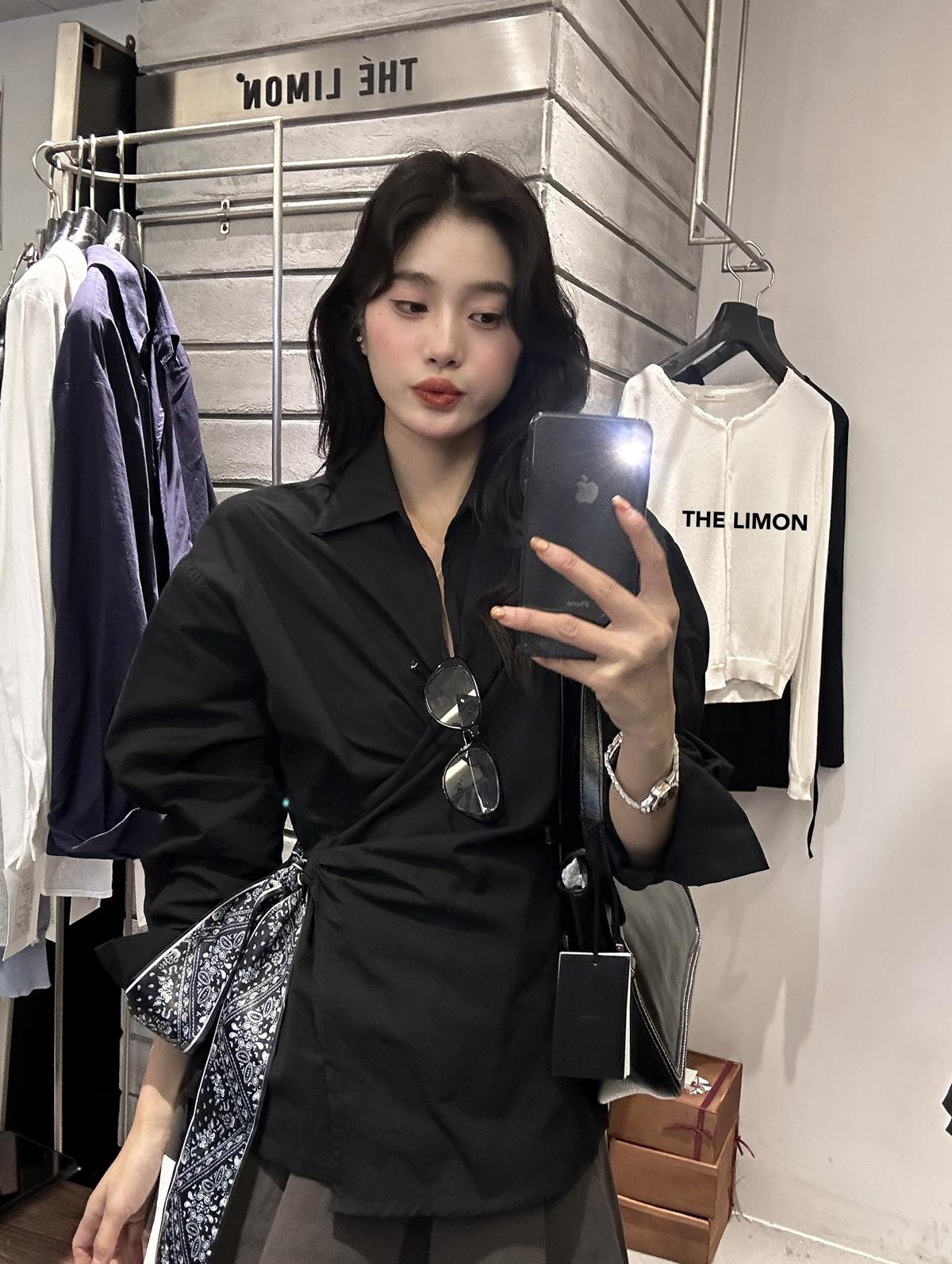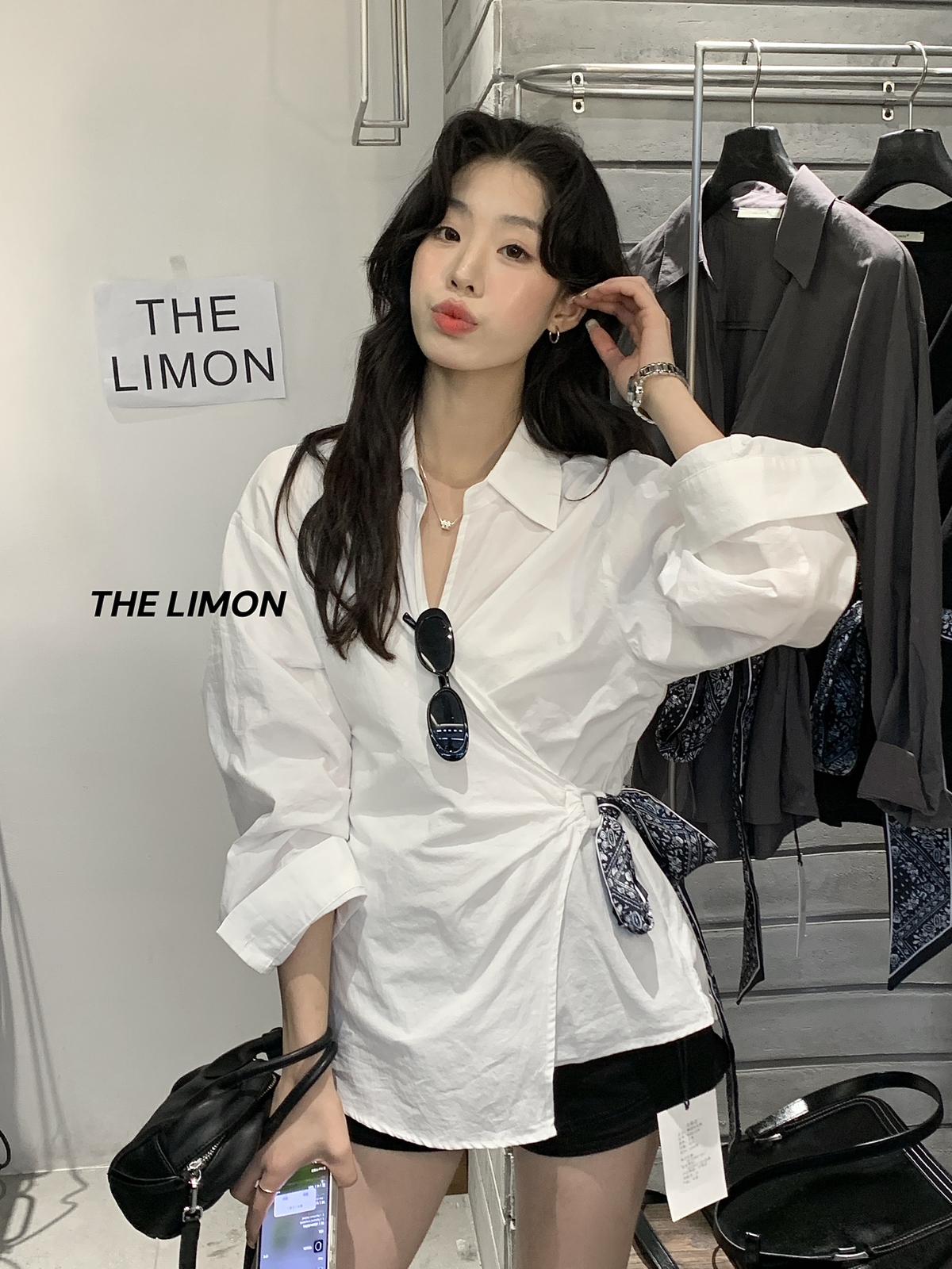 3. 【C6945】設計感側綁帶絲帶收腰襯衫(配絲巾)
