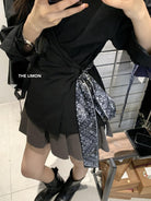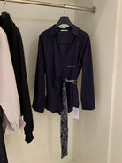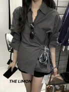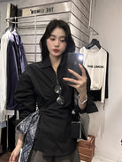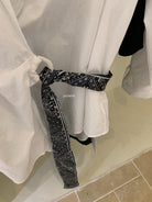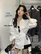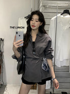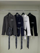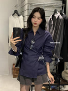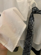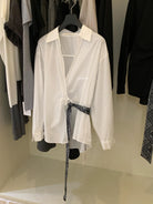 【C6945】設計感側綁帶絲帶收腰襯衫(配絲巾)