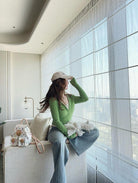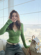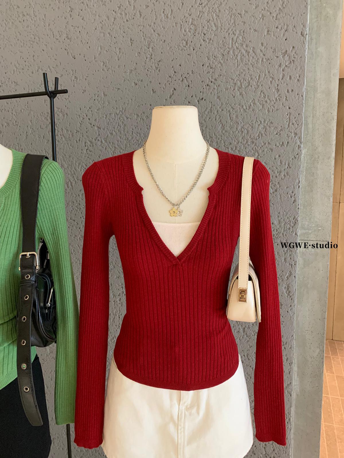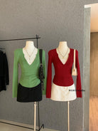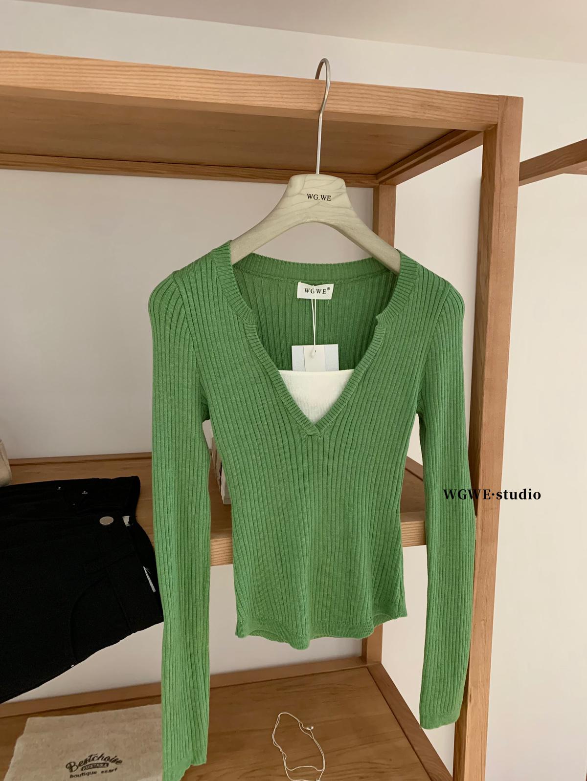3. 【C6950】小清新假兩件多巴胺穿搭修身針織針織衫