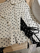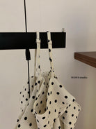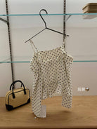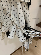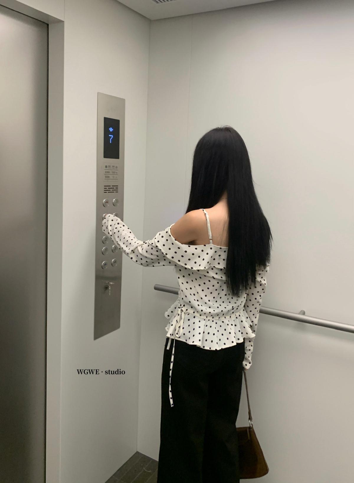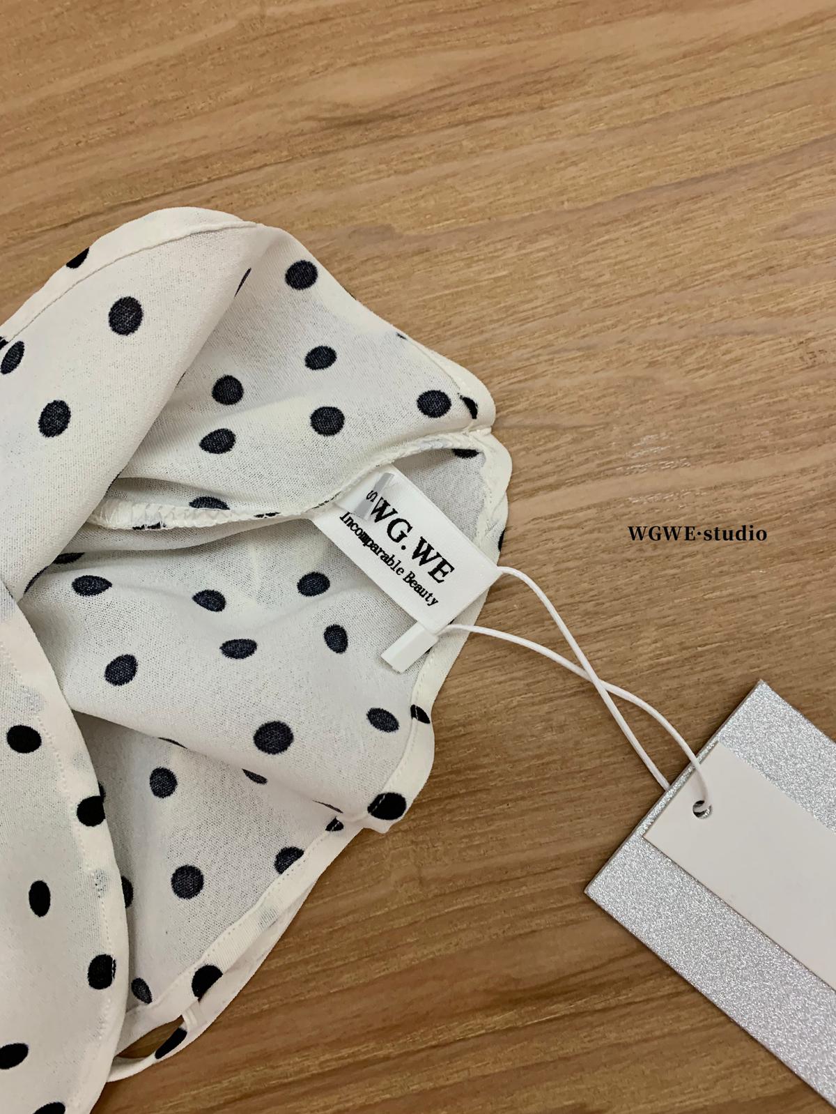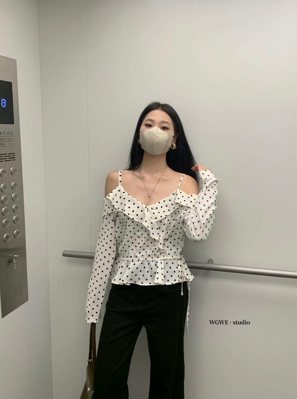 【C6952】薄款一字肩襯衫露肩別緻上衣女設計小衆波點長袖T恤