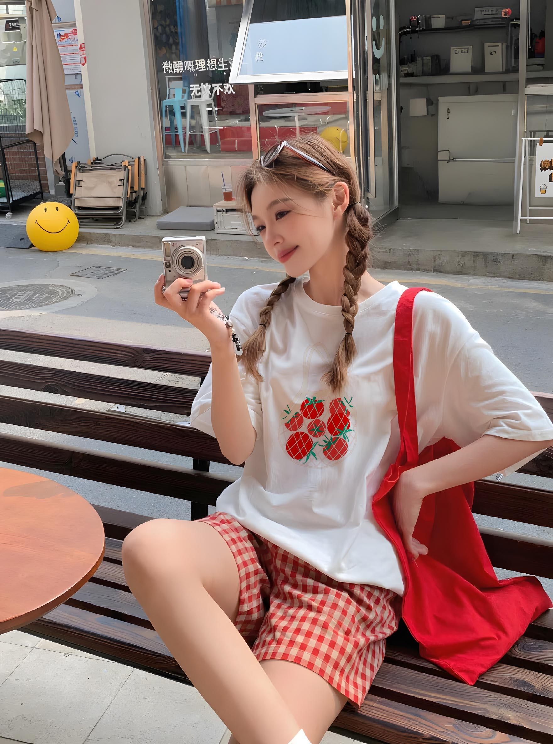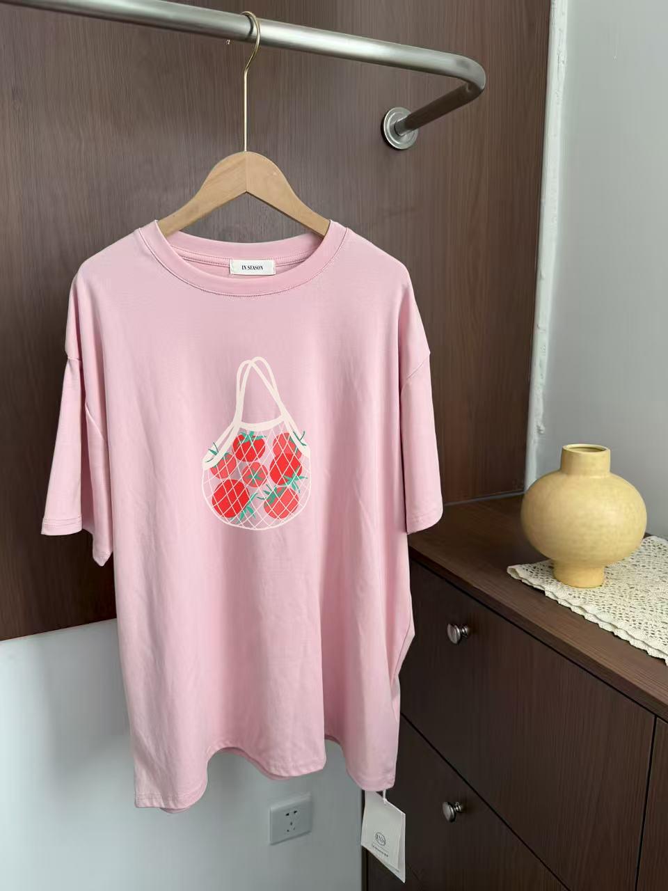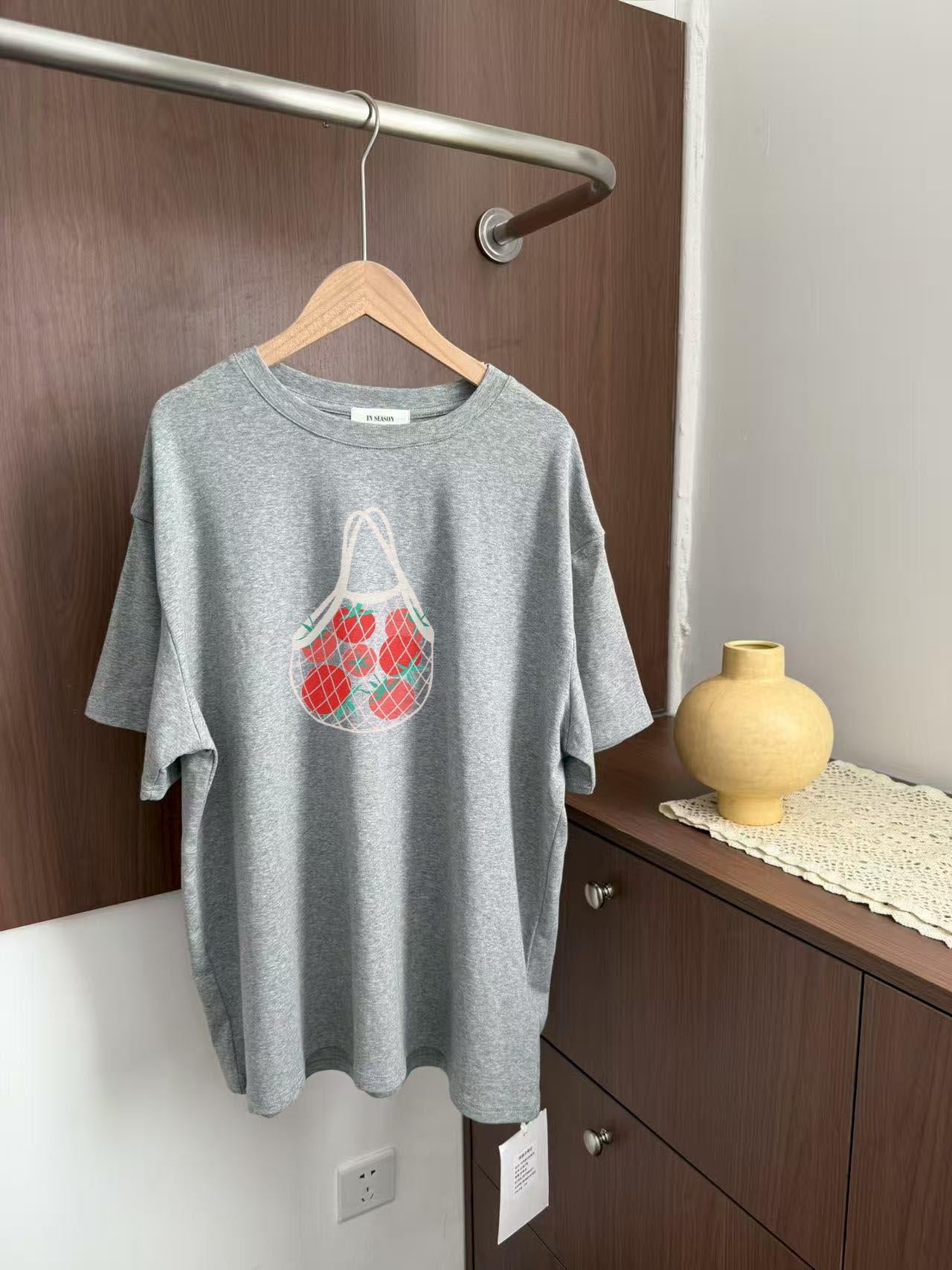 【C6973】可愛復古風vintage袋裝番茄印花寬鬆圓領短袖T恤