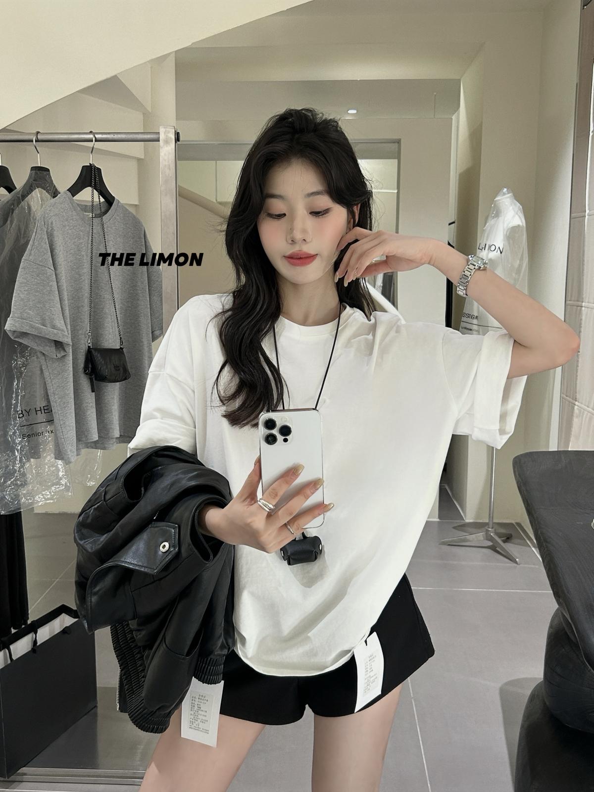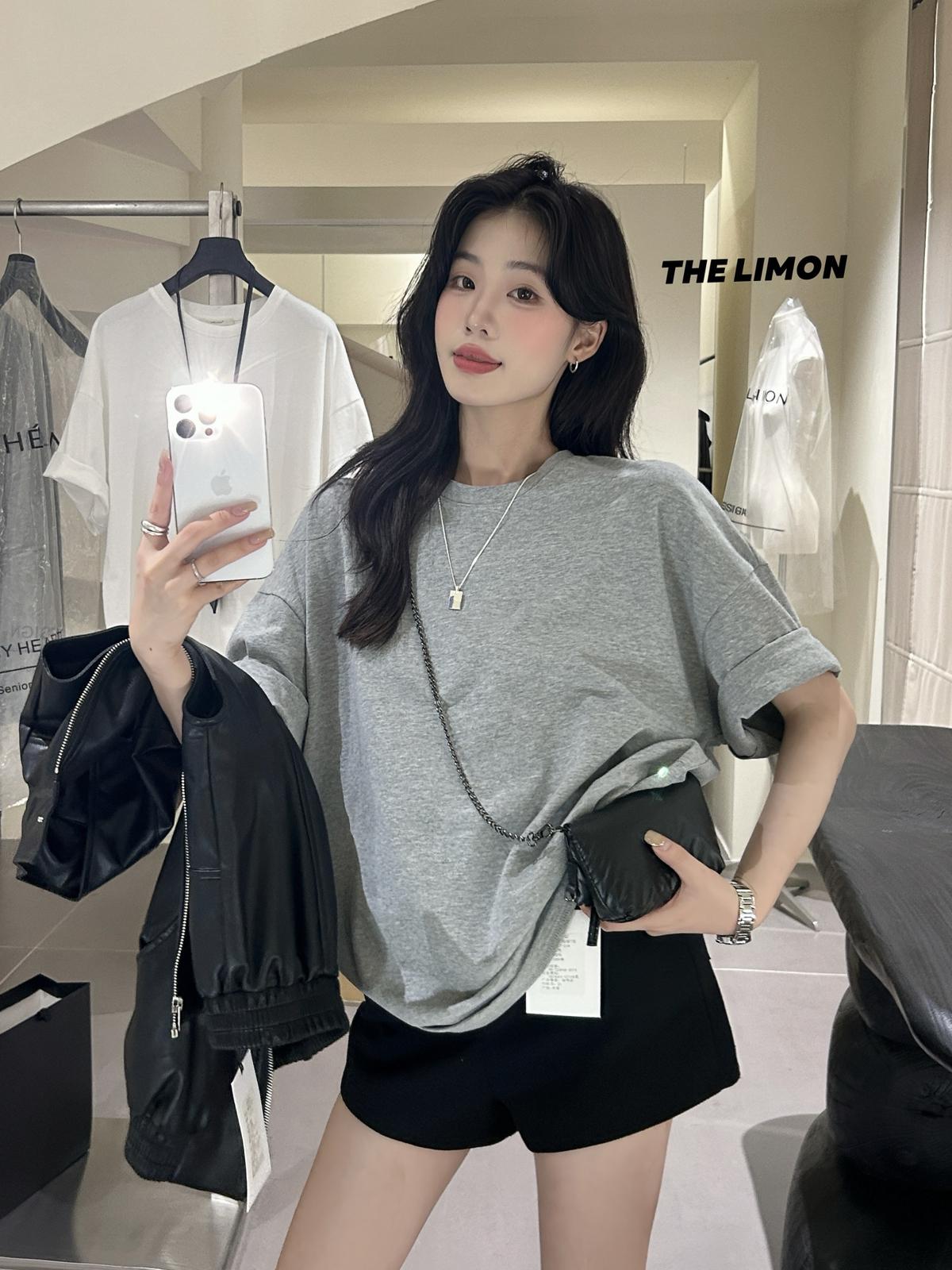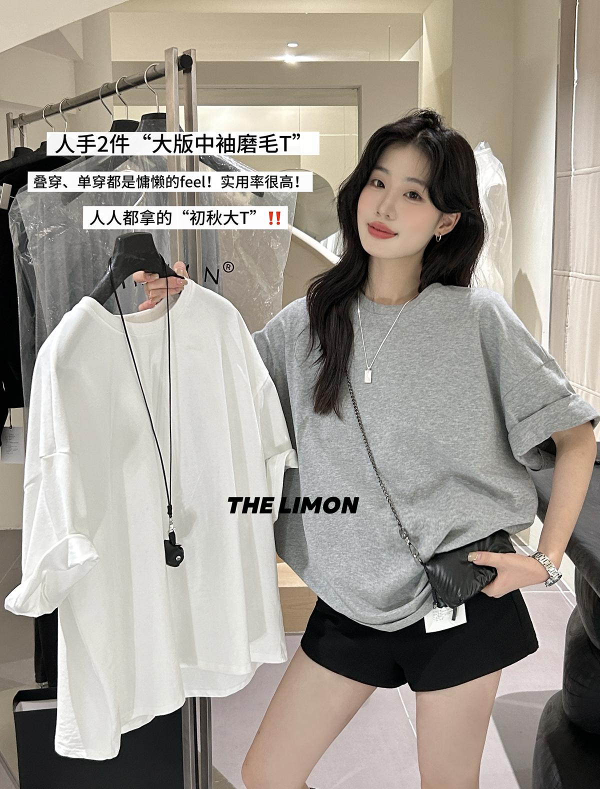 【C6982】寬鬆慵懶純色百搭磨毛短袖T恤