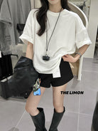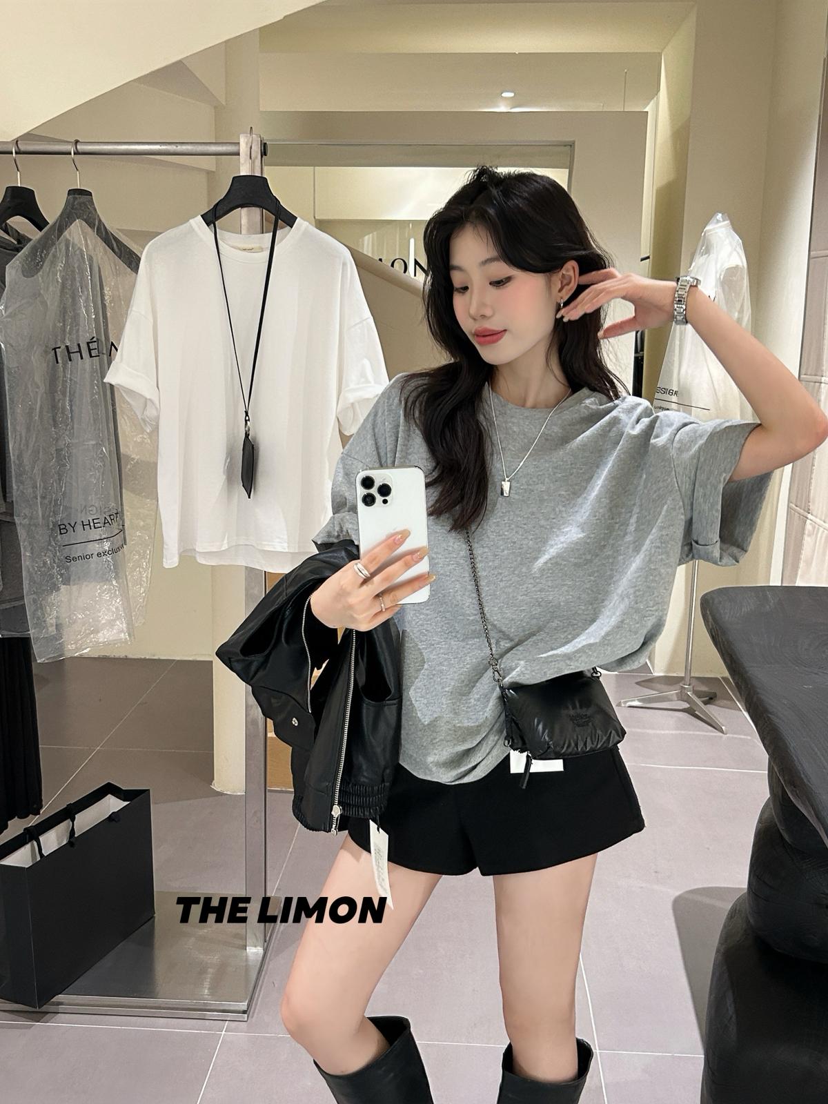 3. 【C6982】寬鬆慵懶純色百搭磨毛短袖T恤