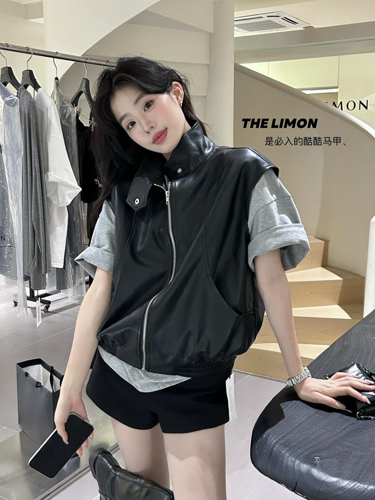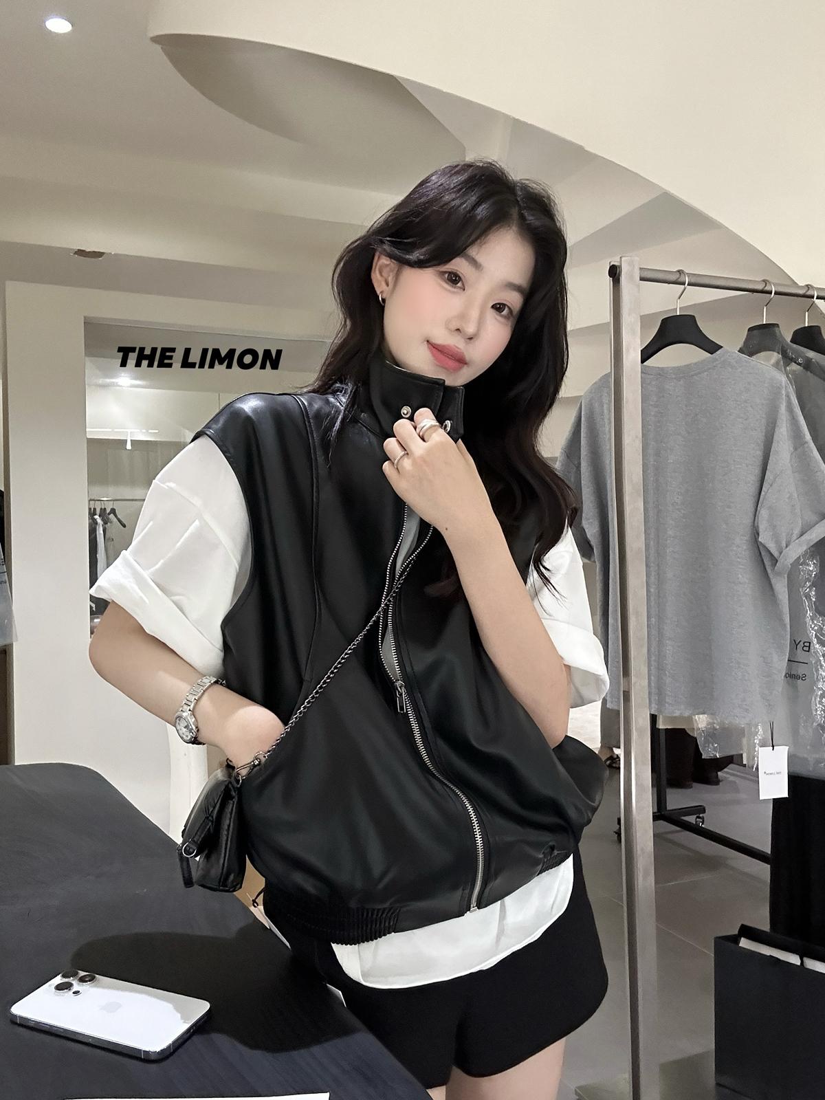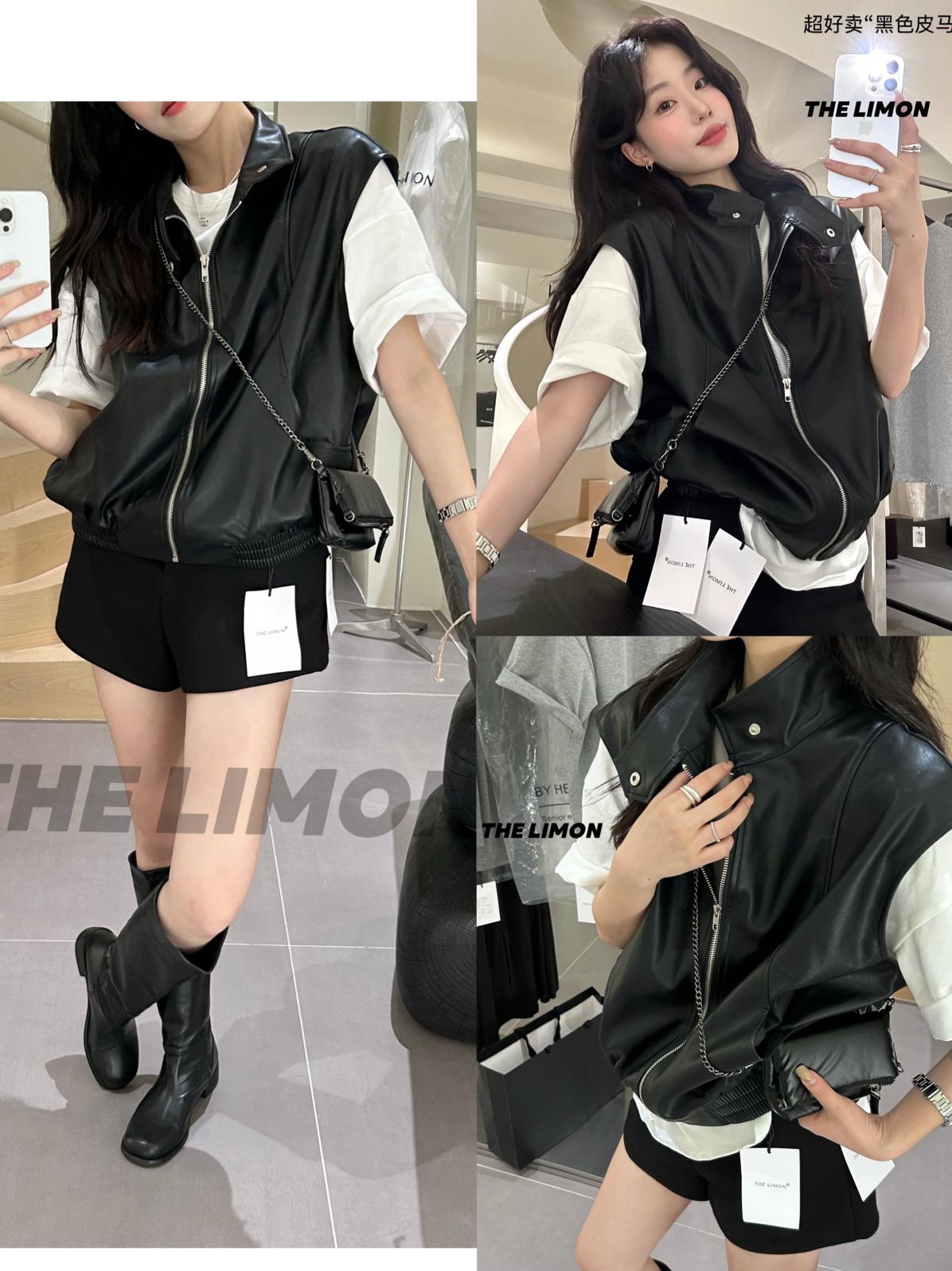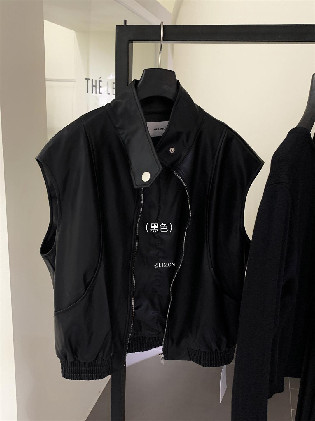 【C6983】復古立領高級感PU蛋白皮馬甲