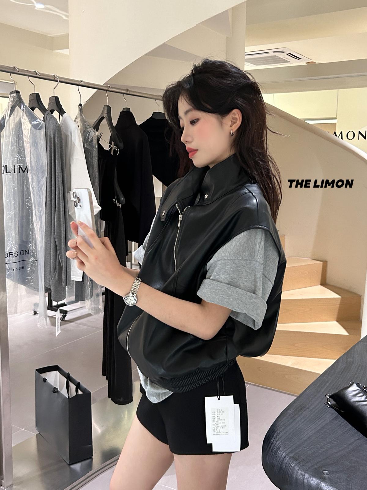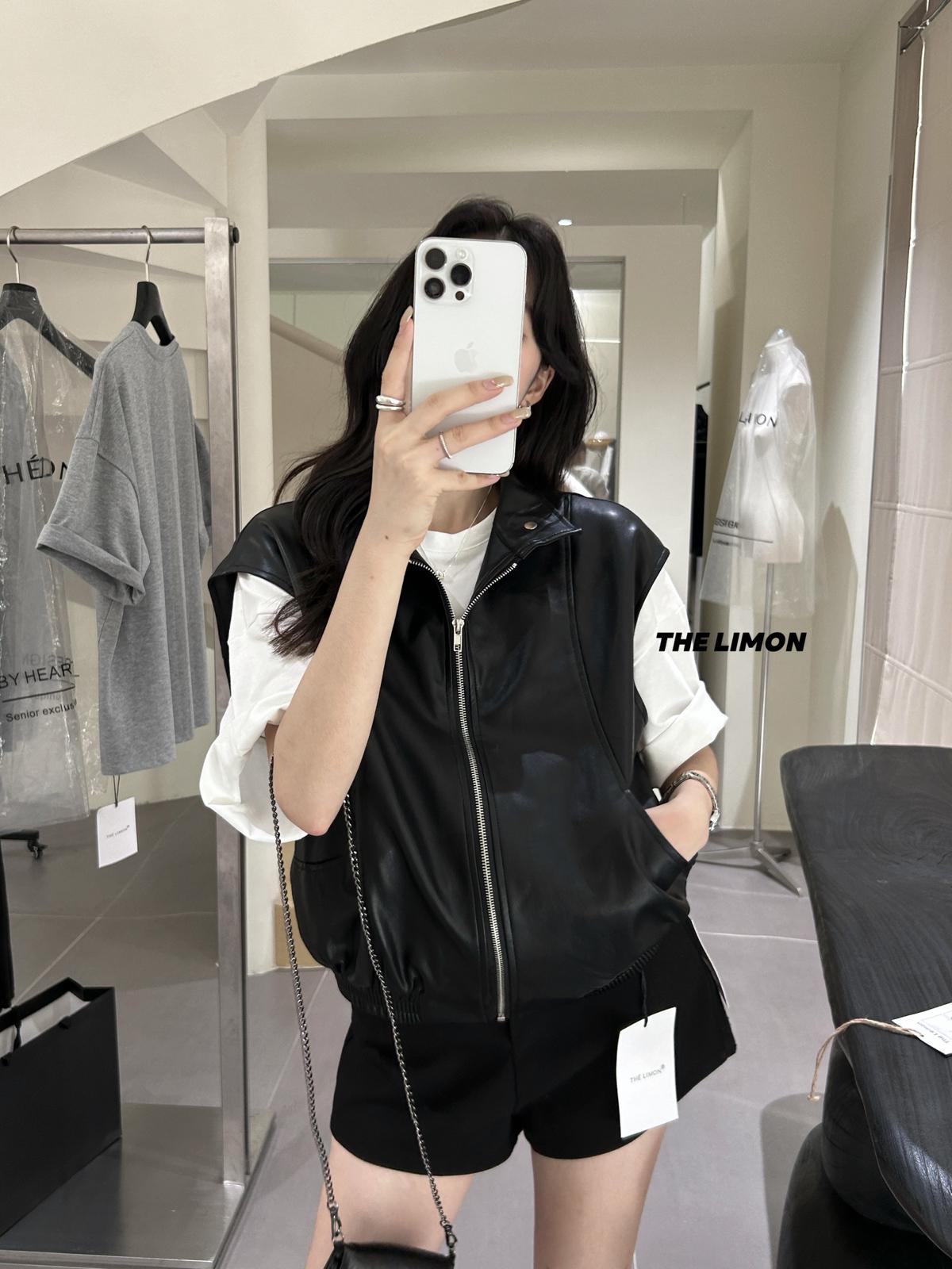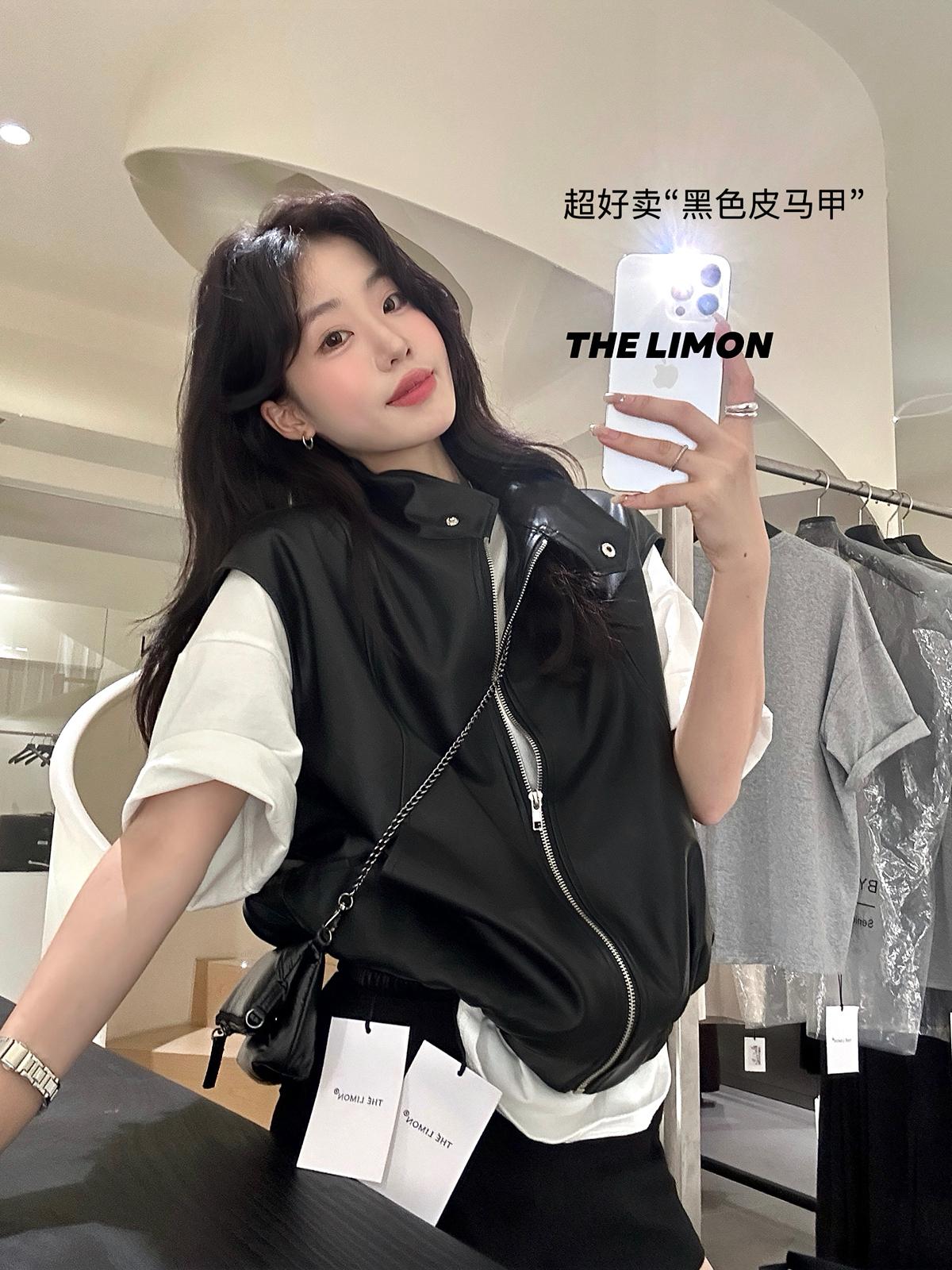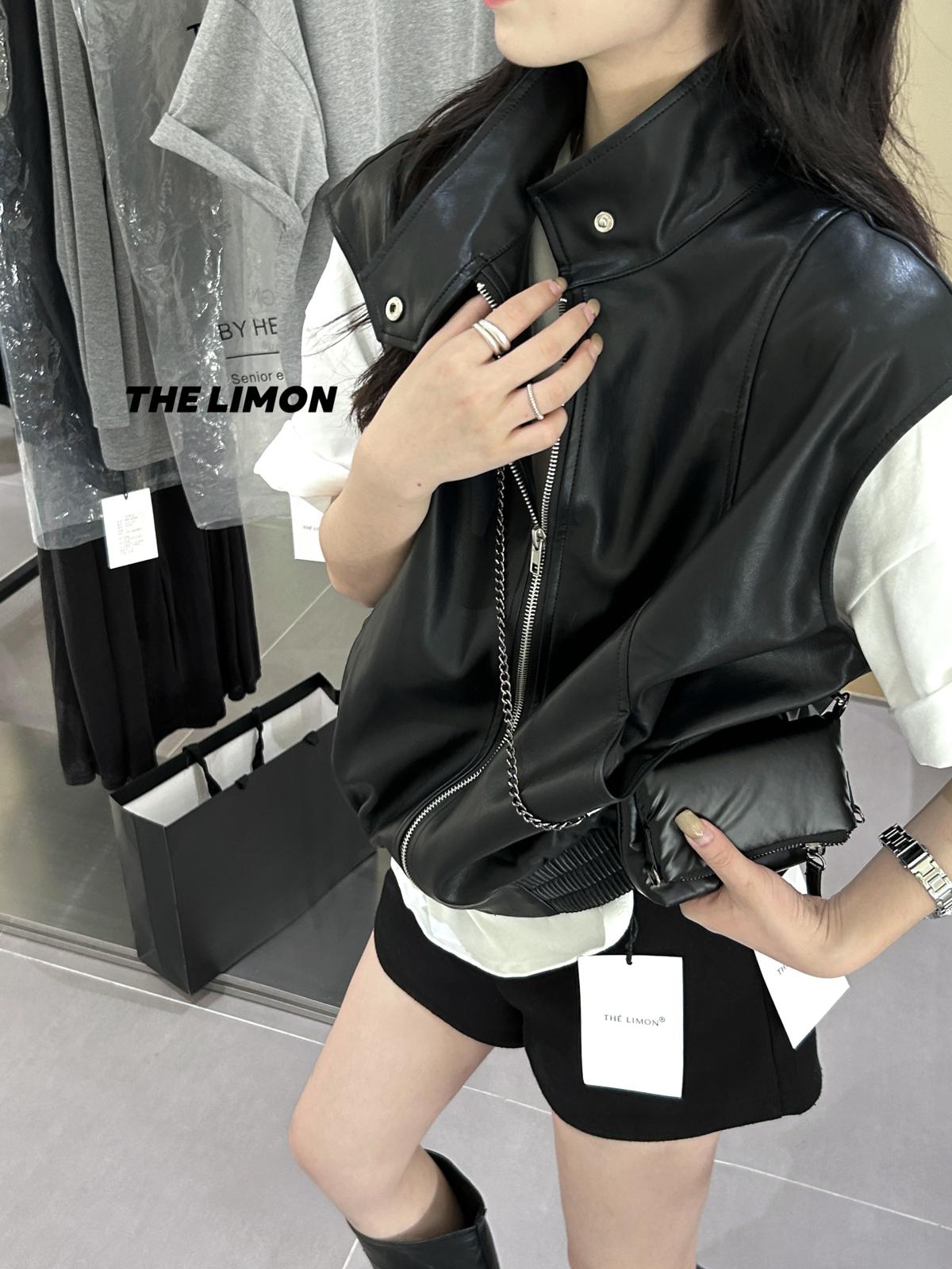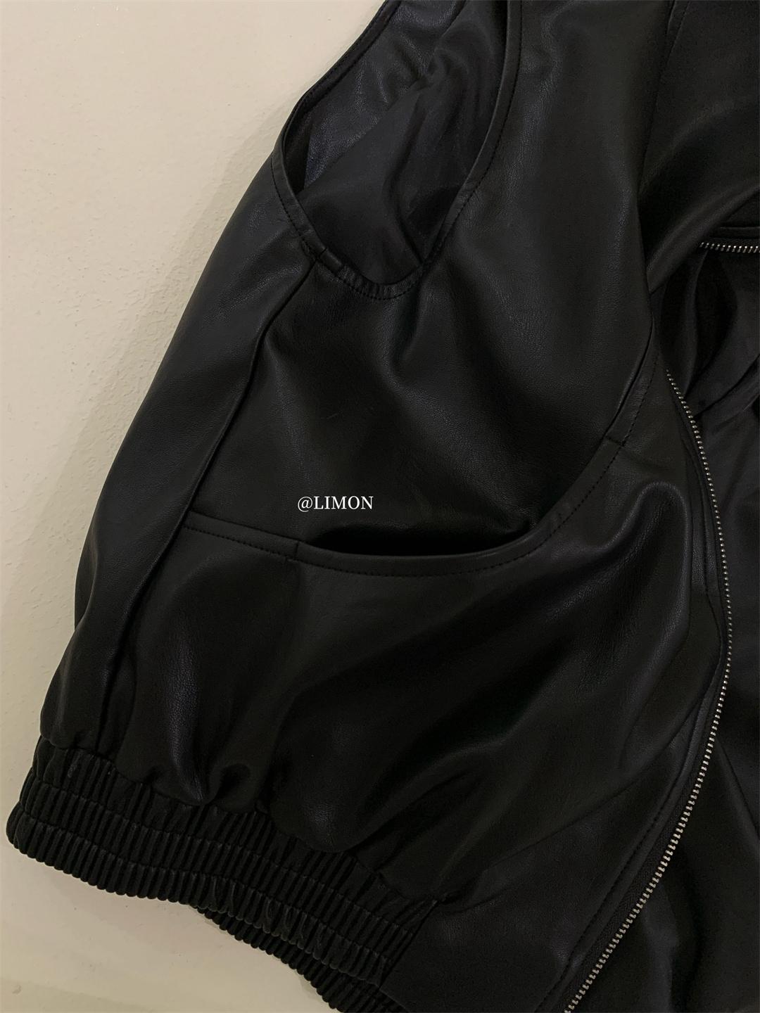 【C6983】復古立領高級感PU蛋白皮馬甲