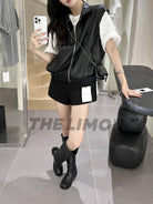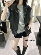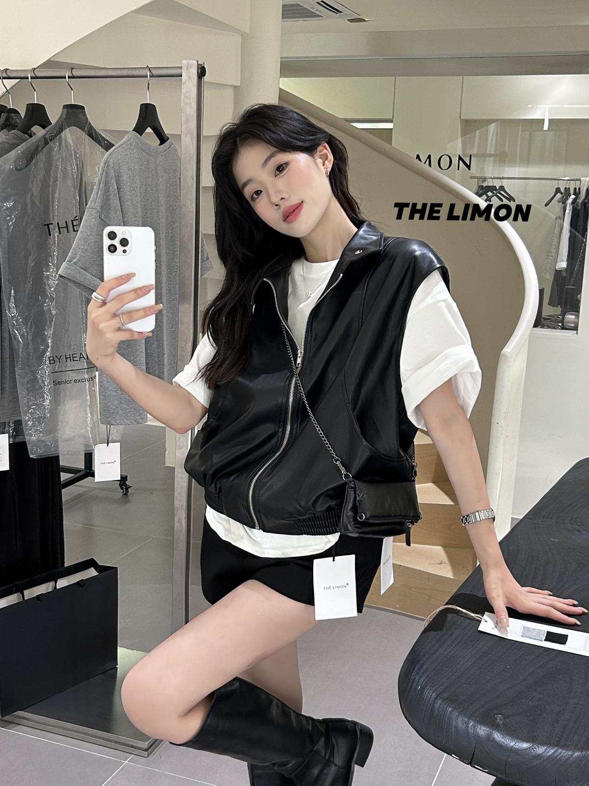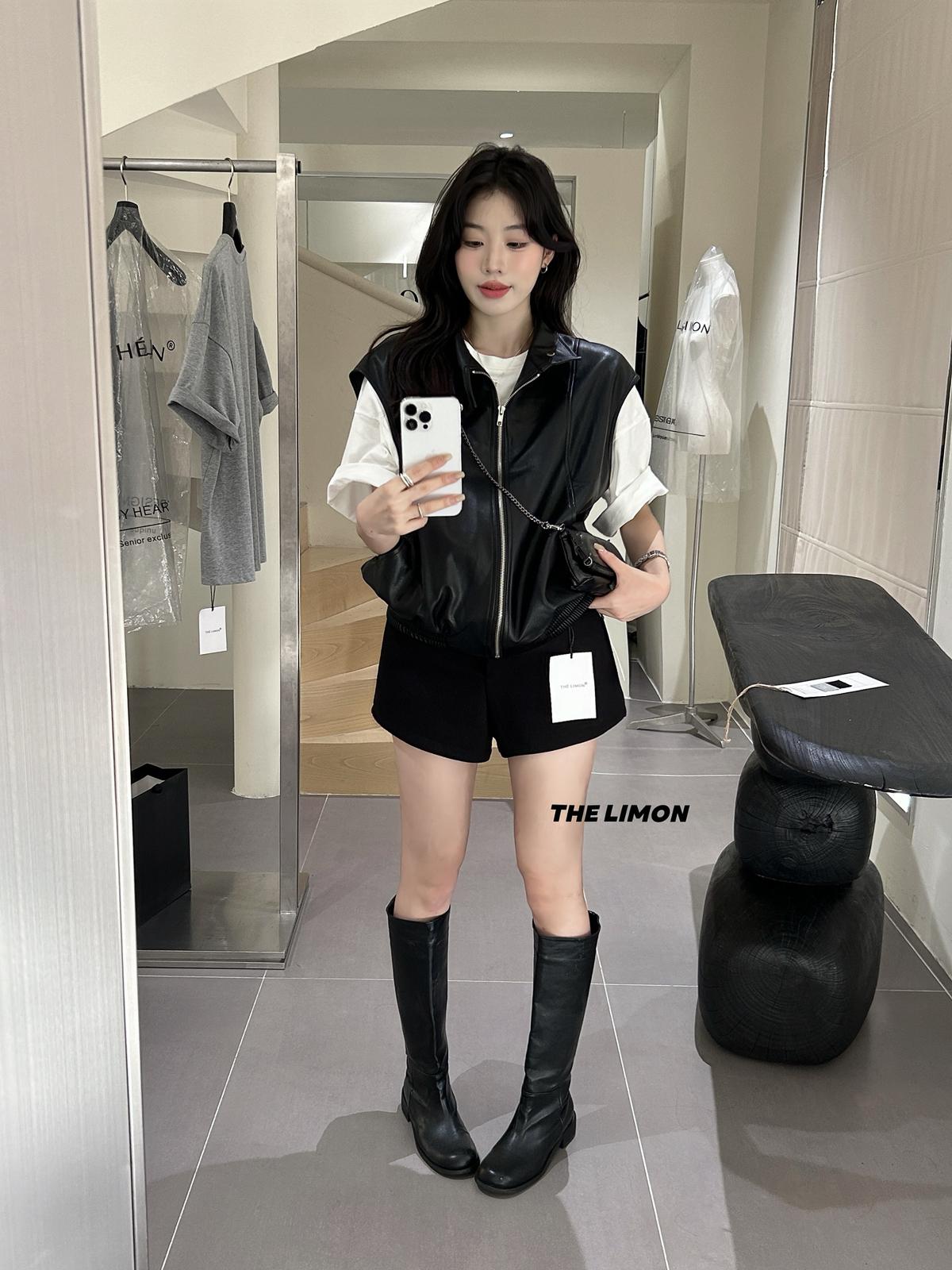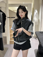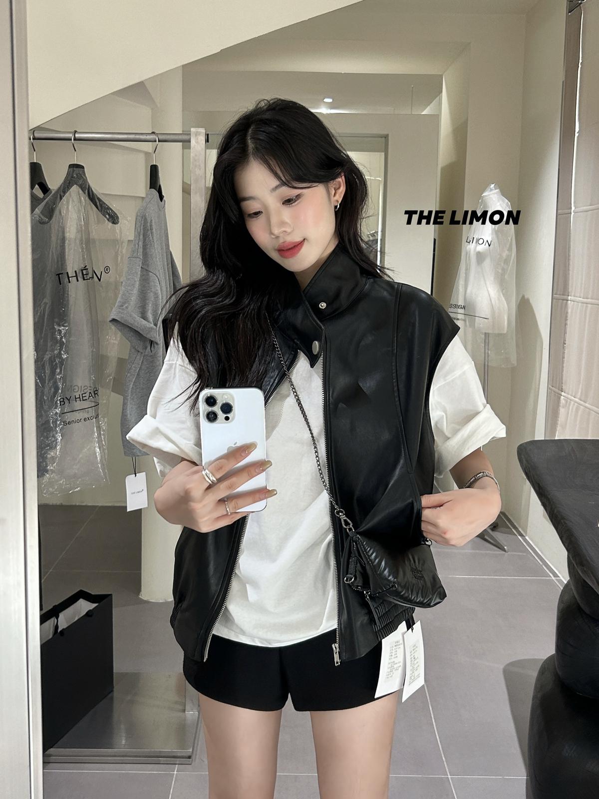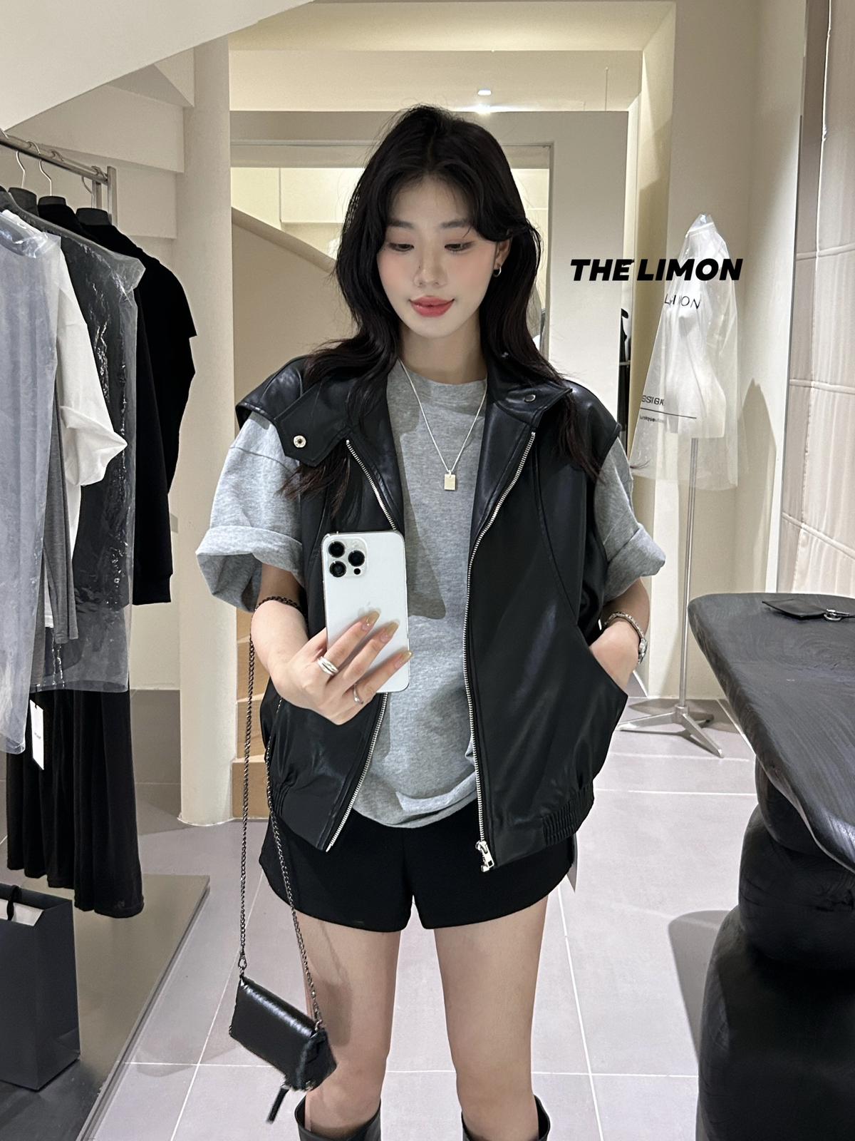 【C6983】復古立領高級感PU蛋白皮馬甲