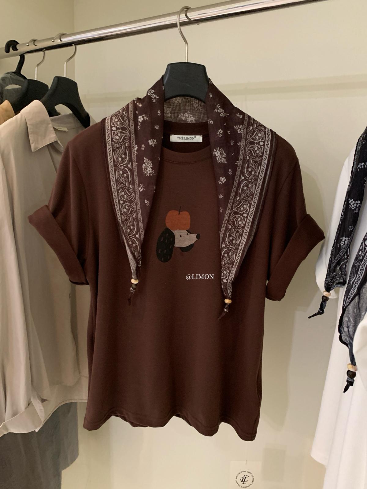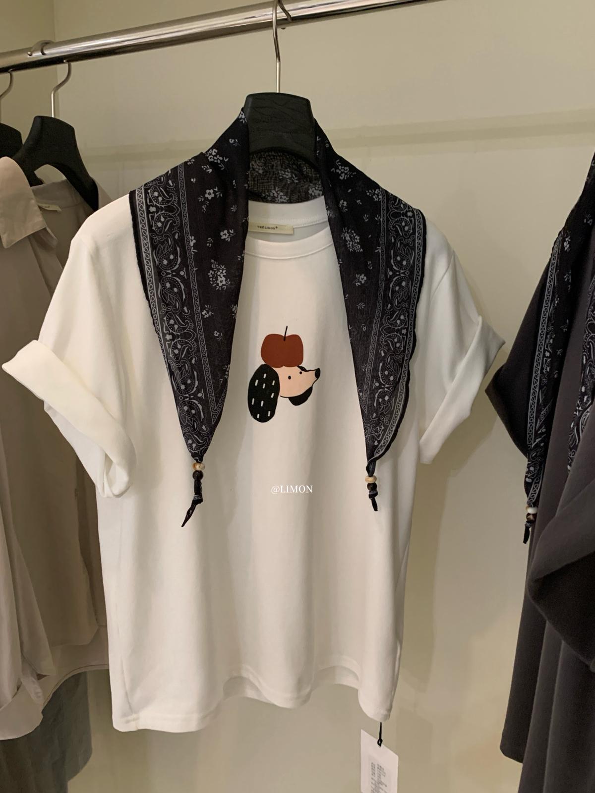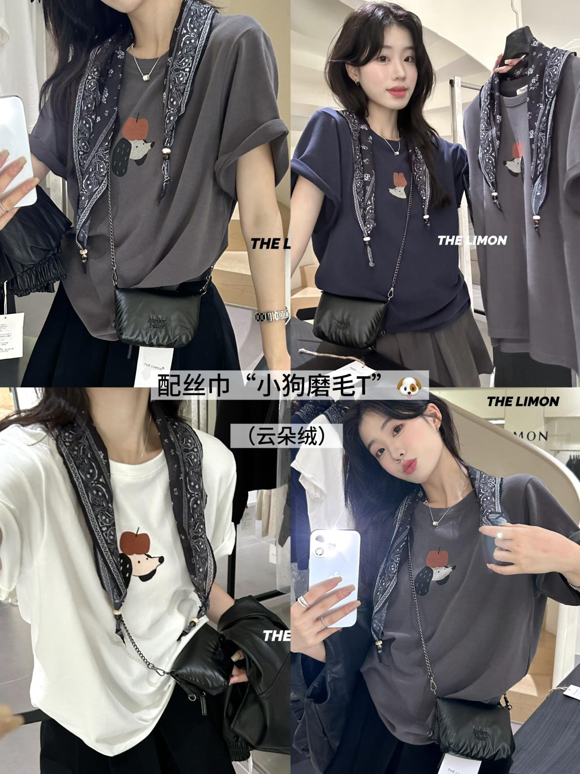 3. 【C6985】減齡設計感雲朵絨印花短袖T恤(配絲巾)