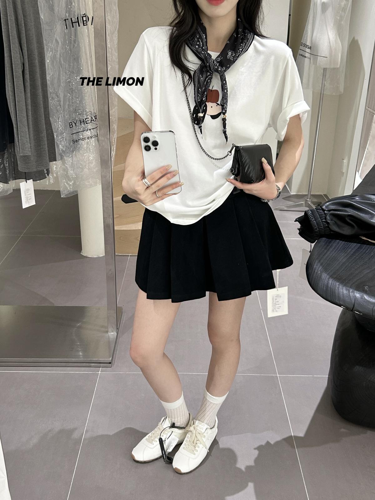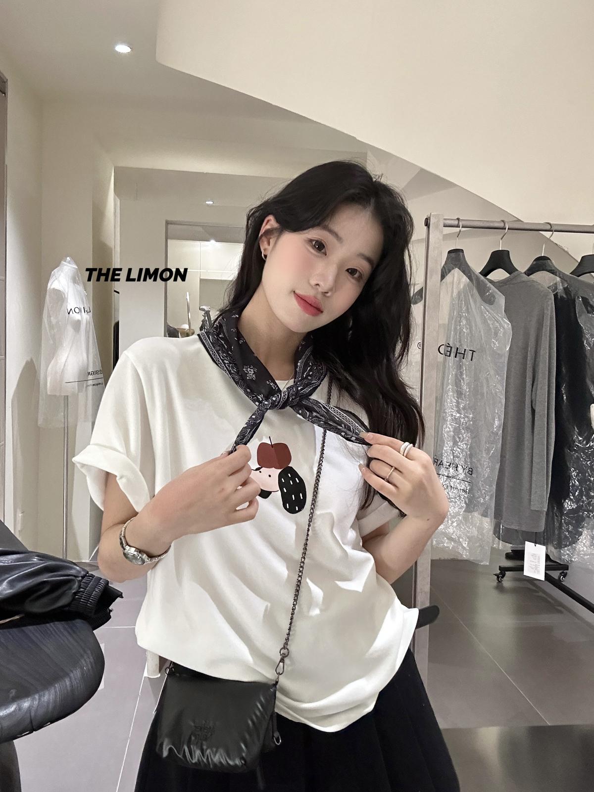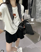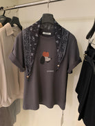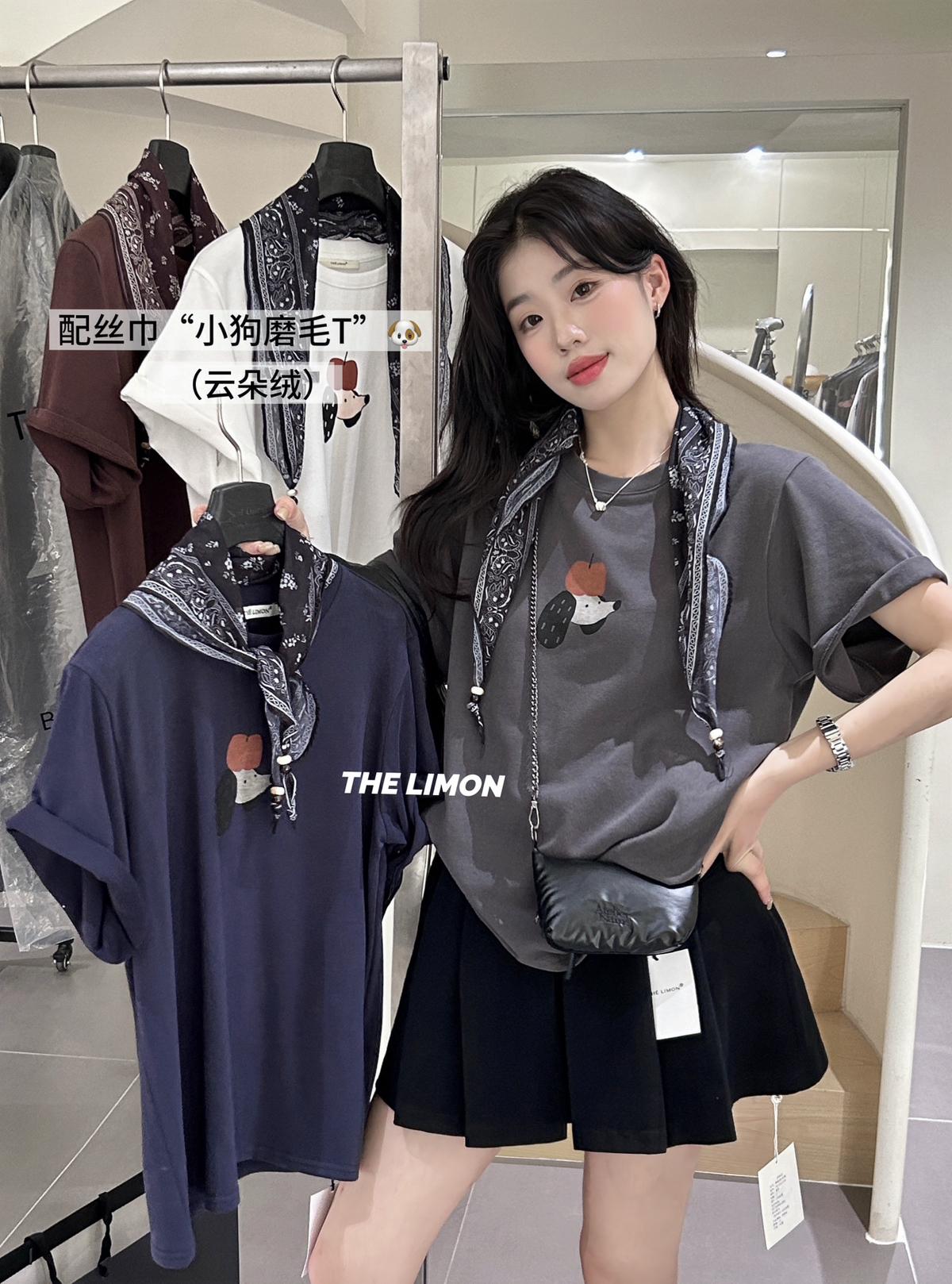 3. 【C6985】減齡設計感雲朵絨印花短袖T恤(配絲巾)