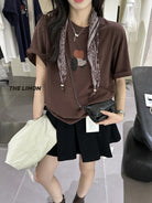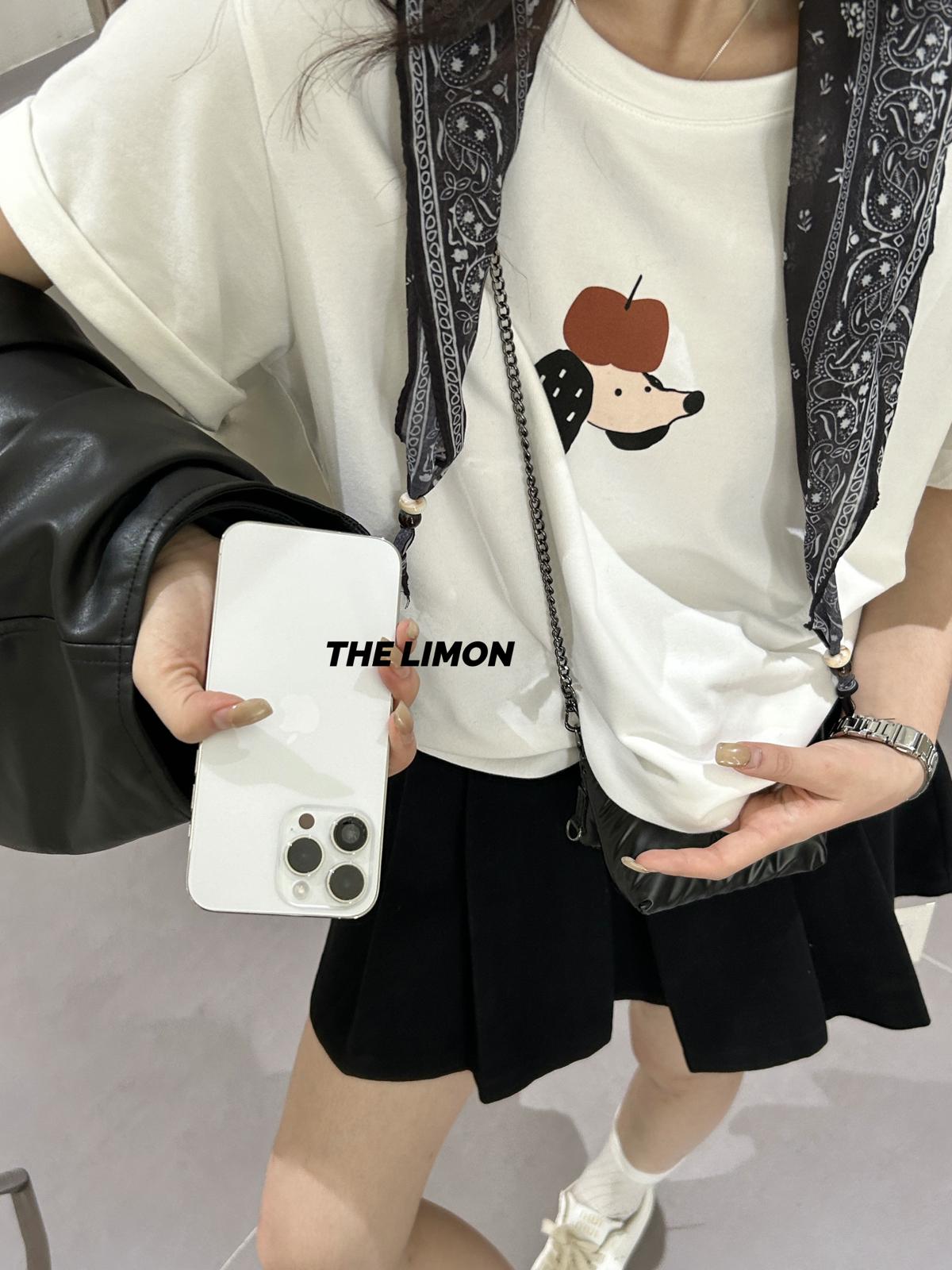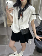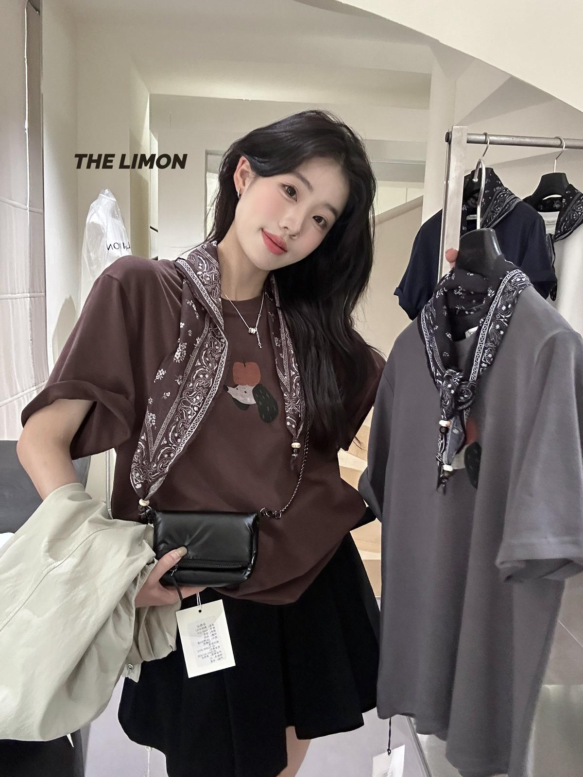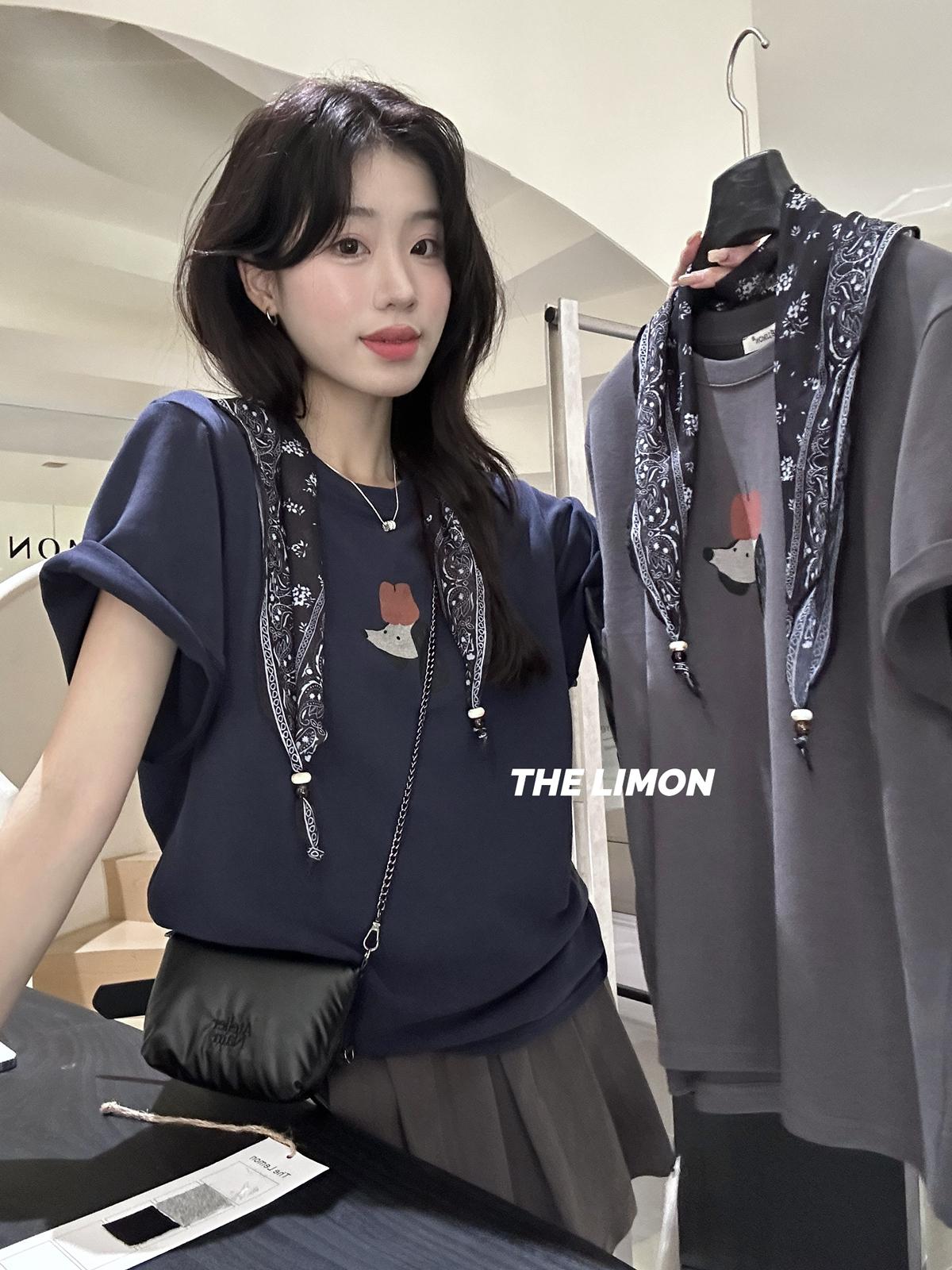 【C6985】減齡設計感雲朵絨印花短袖T恤(配絲巾)