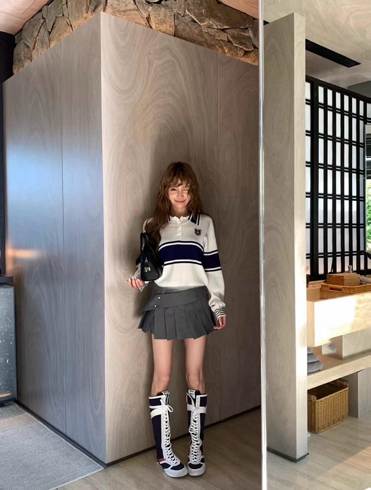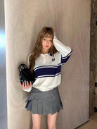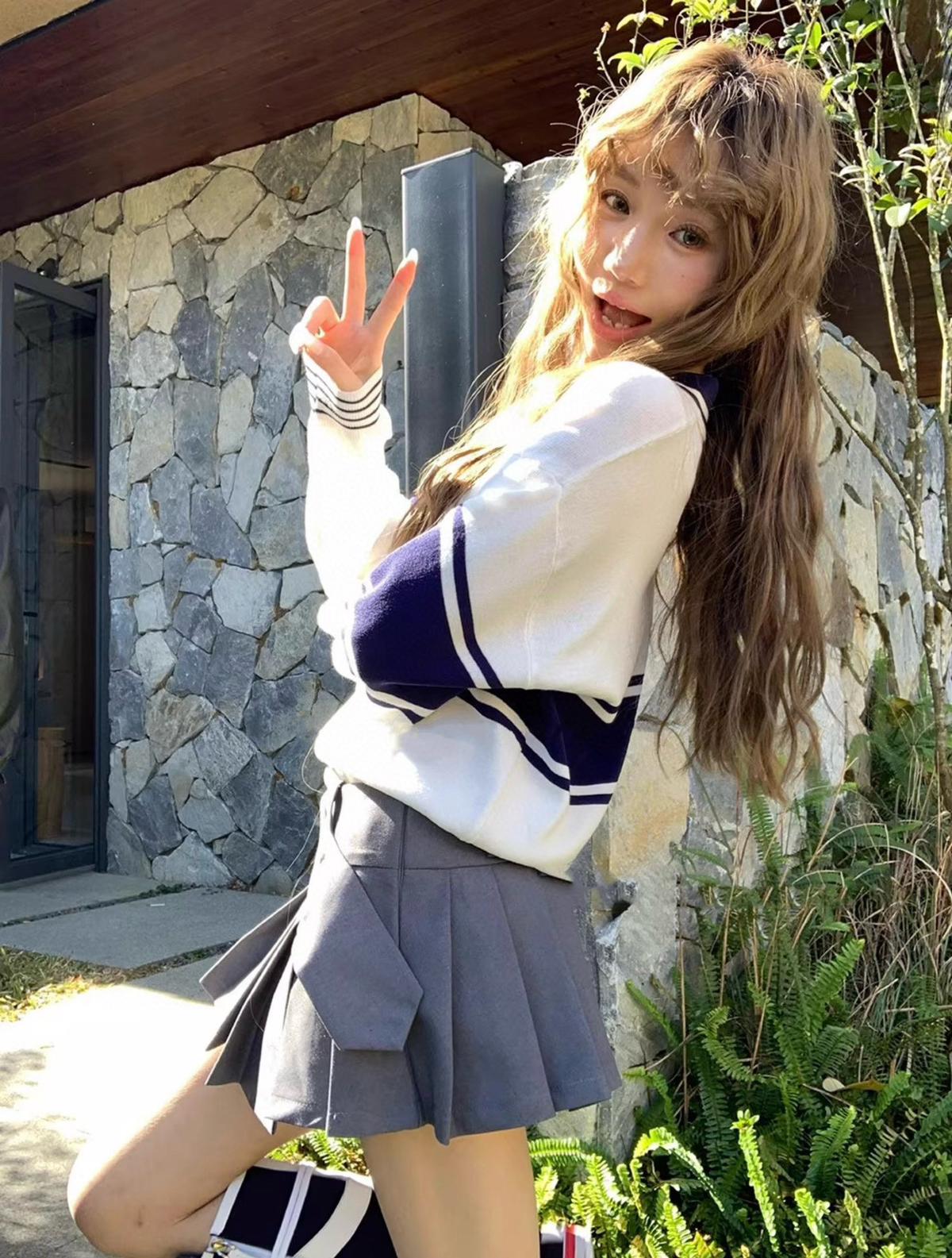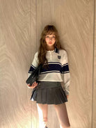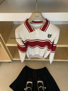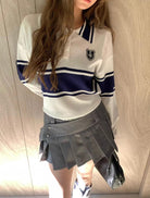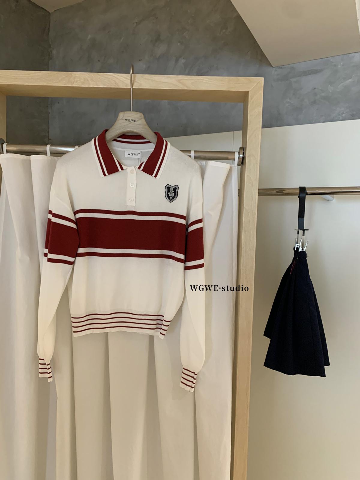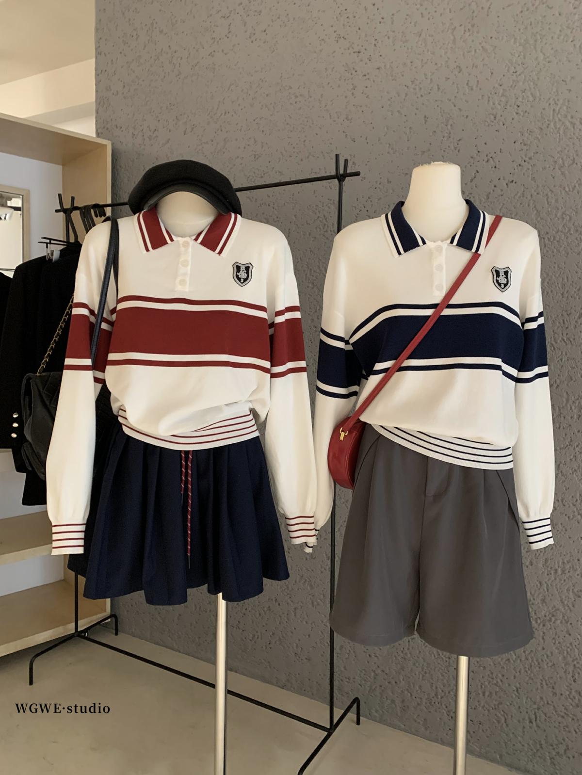 【C7039】學院風撞色POLO領長袖T恤設計感寬鬆顯瘦百搭上衣針織衫
