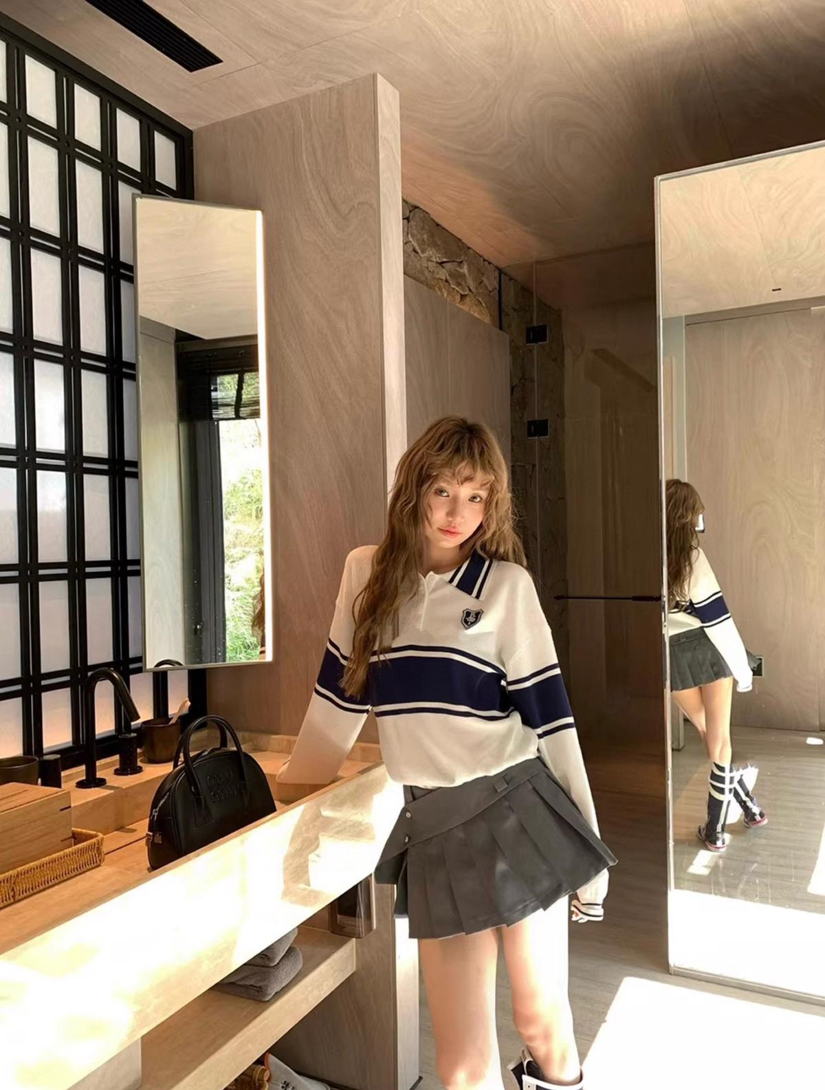 3. 【C7039】學院風撞色POLO領長袖T恤設計感寬鬆顯瘦百搭上衣針織衫