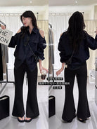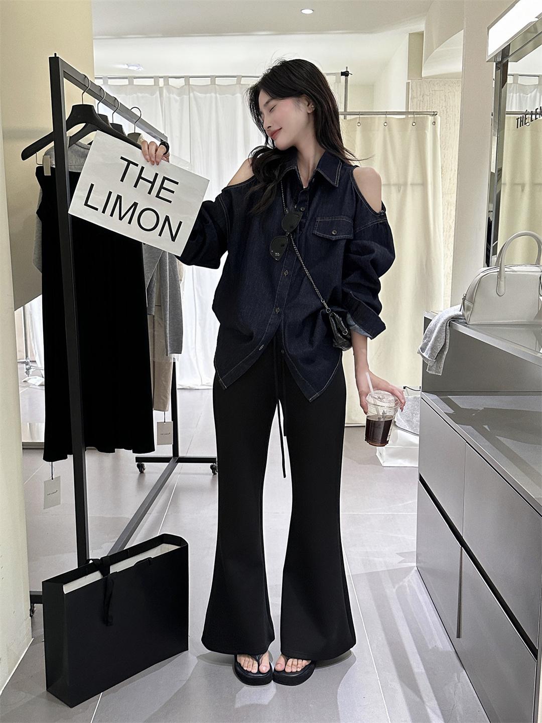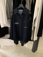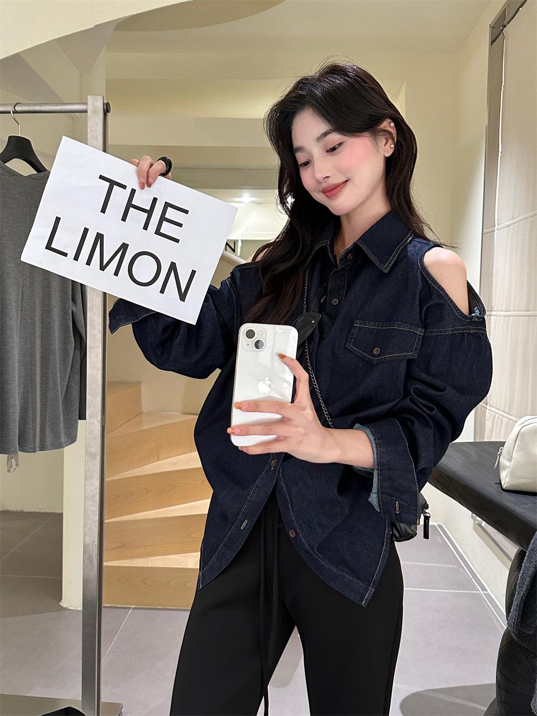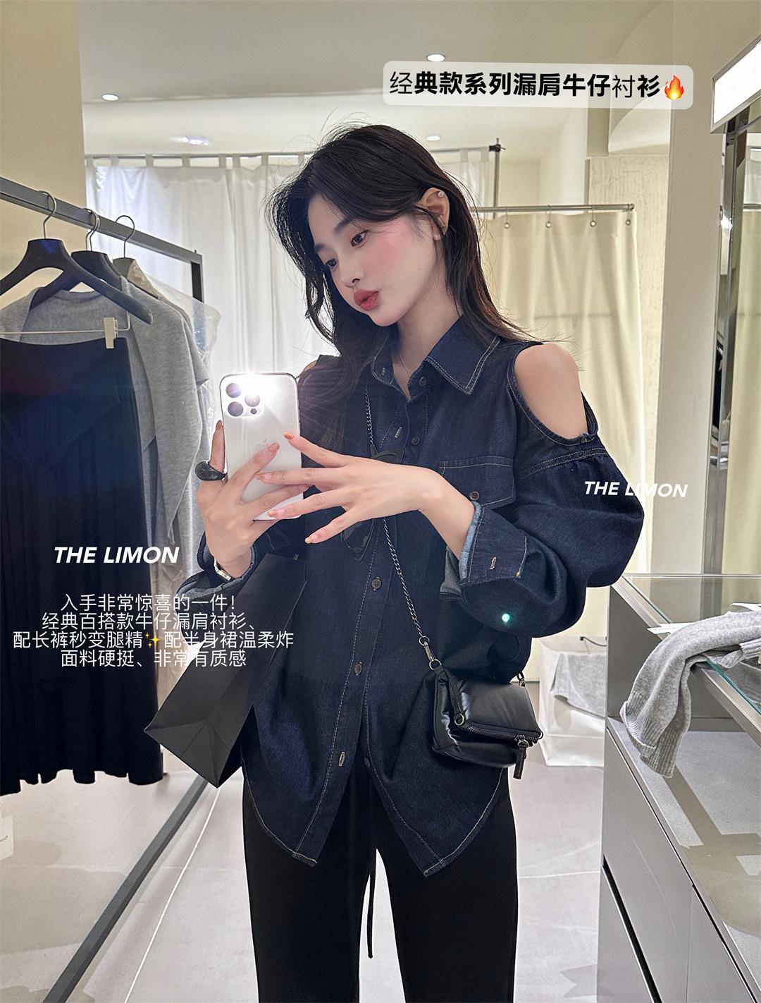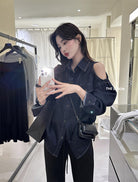 【C7102】美式復古經典百搭漏肩牛仔襯衫