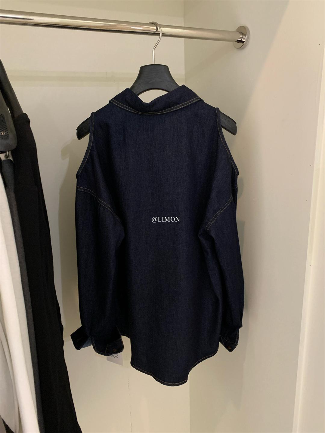 3. 【C7102】美式復古經典百搭漏肩牛仔襯衫