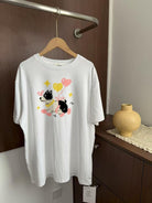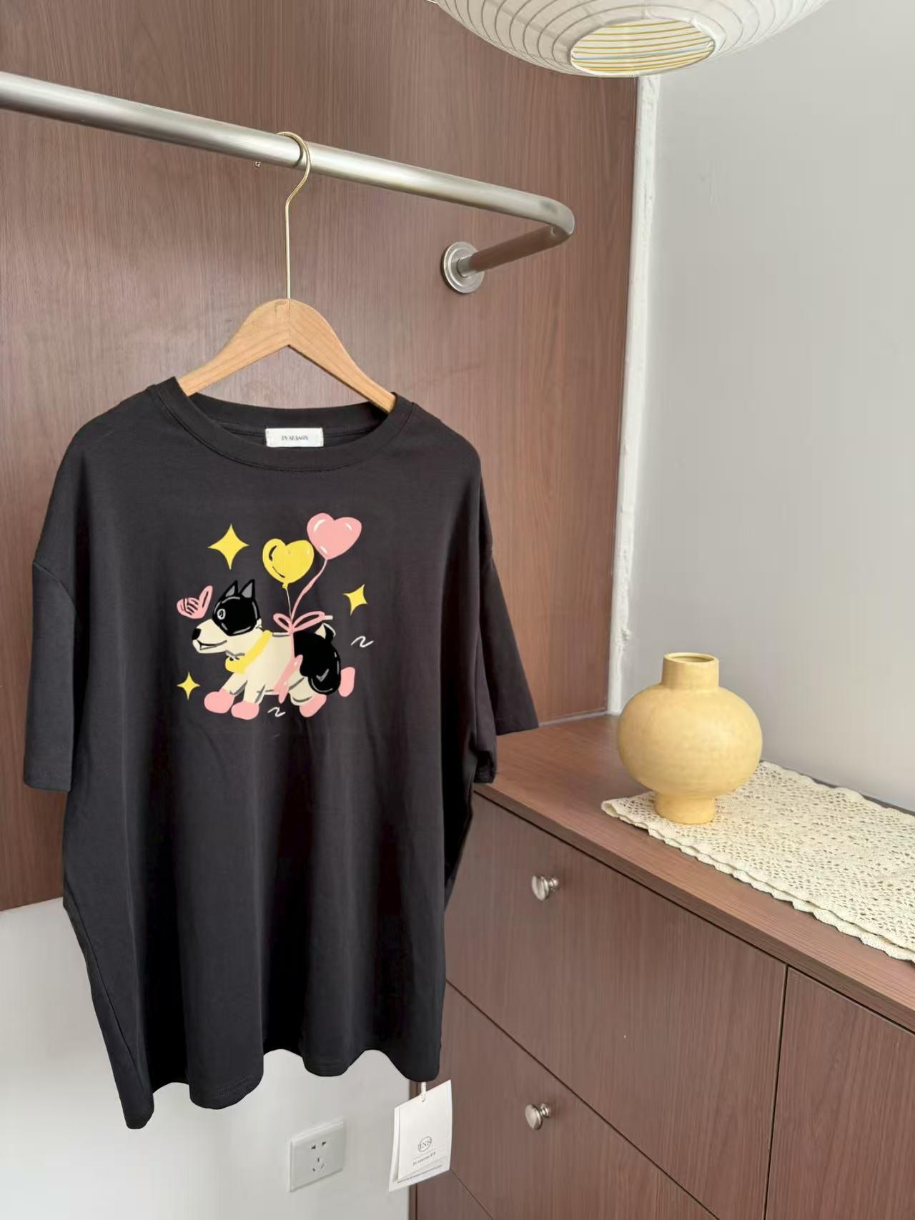 3. 【C7127】清新減齡小狗氣球印花寬鬆圓領多色系可選百搭顯瘦短袖T恤