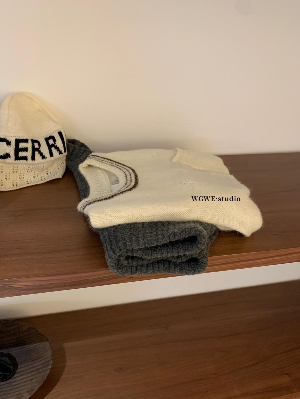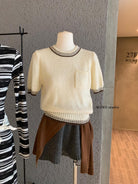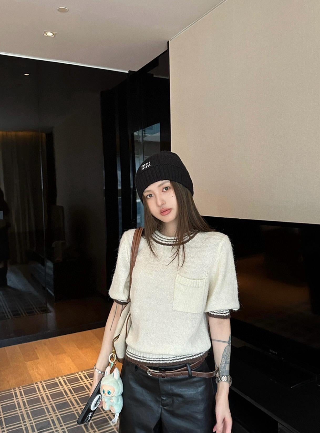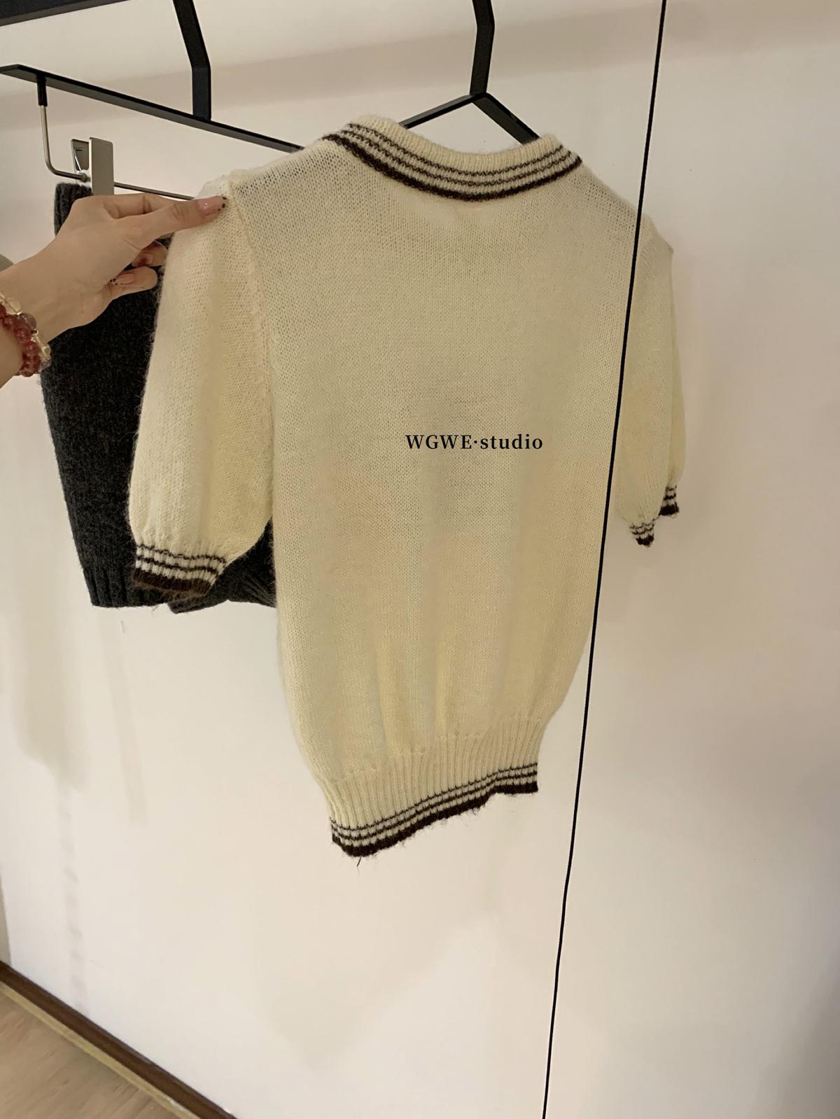 3. 【C7156】撞色短袖針織衫休閒寬鬆顯瘦套頭正肩百搭上衣針織衫