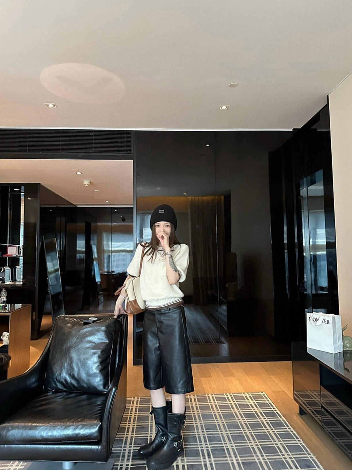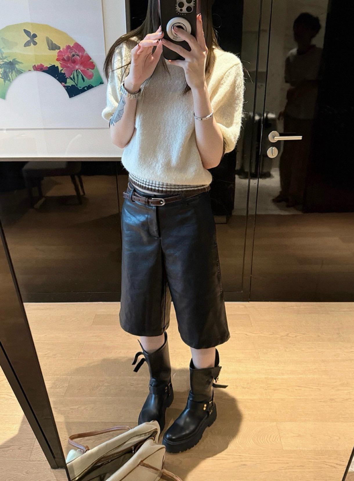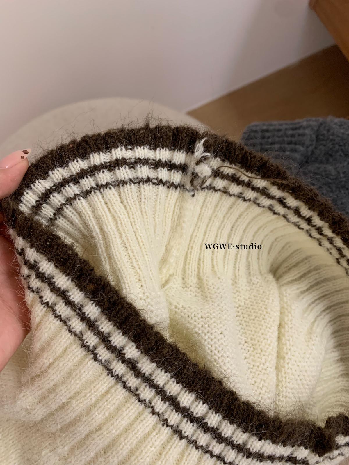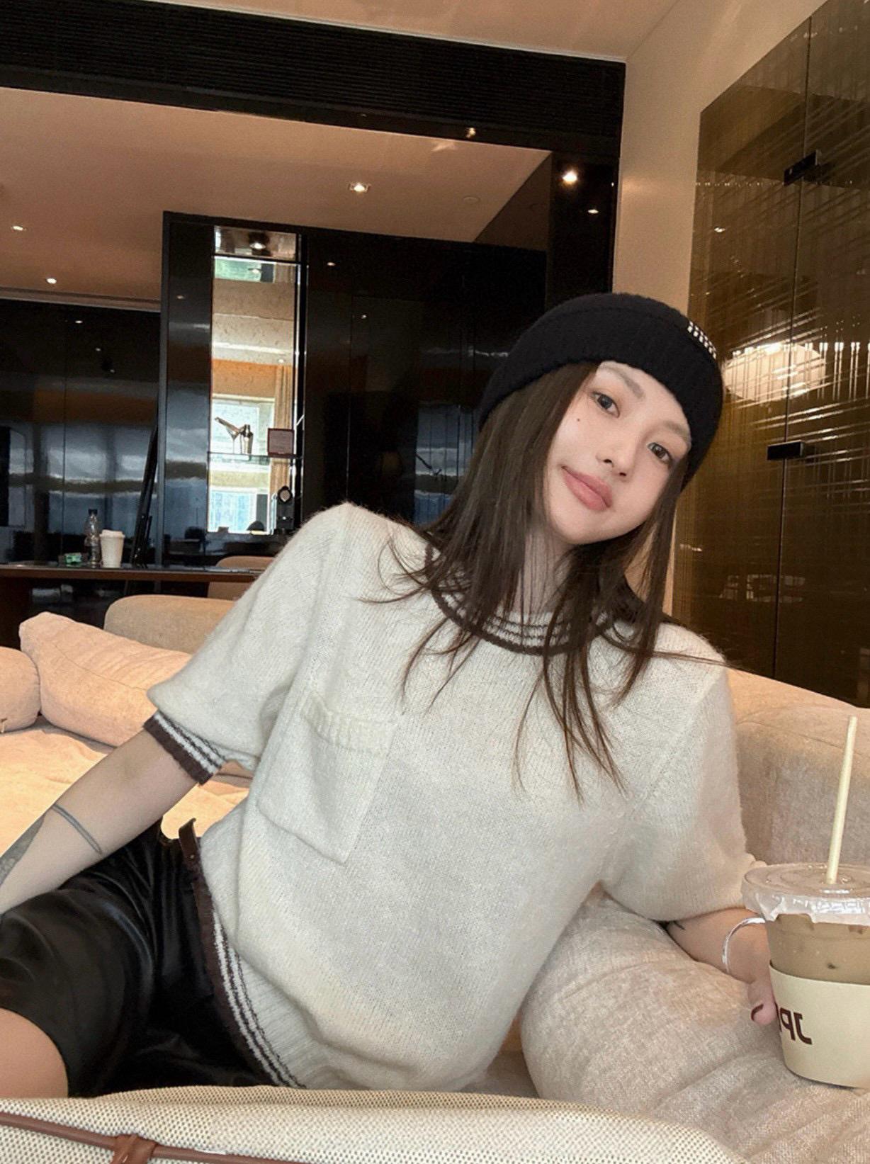3. 【C7156】撞色短袖針織衫休閒寬鬆顯瘦套頭正肩百搭上衣針織衫