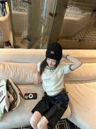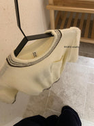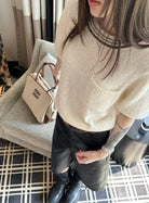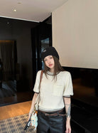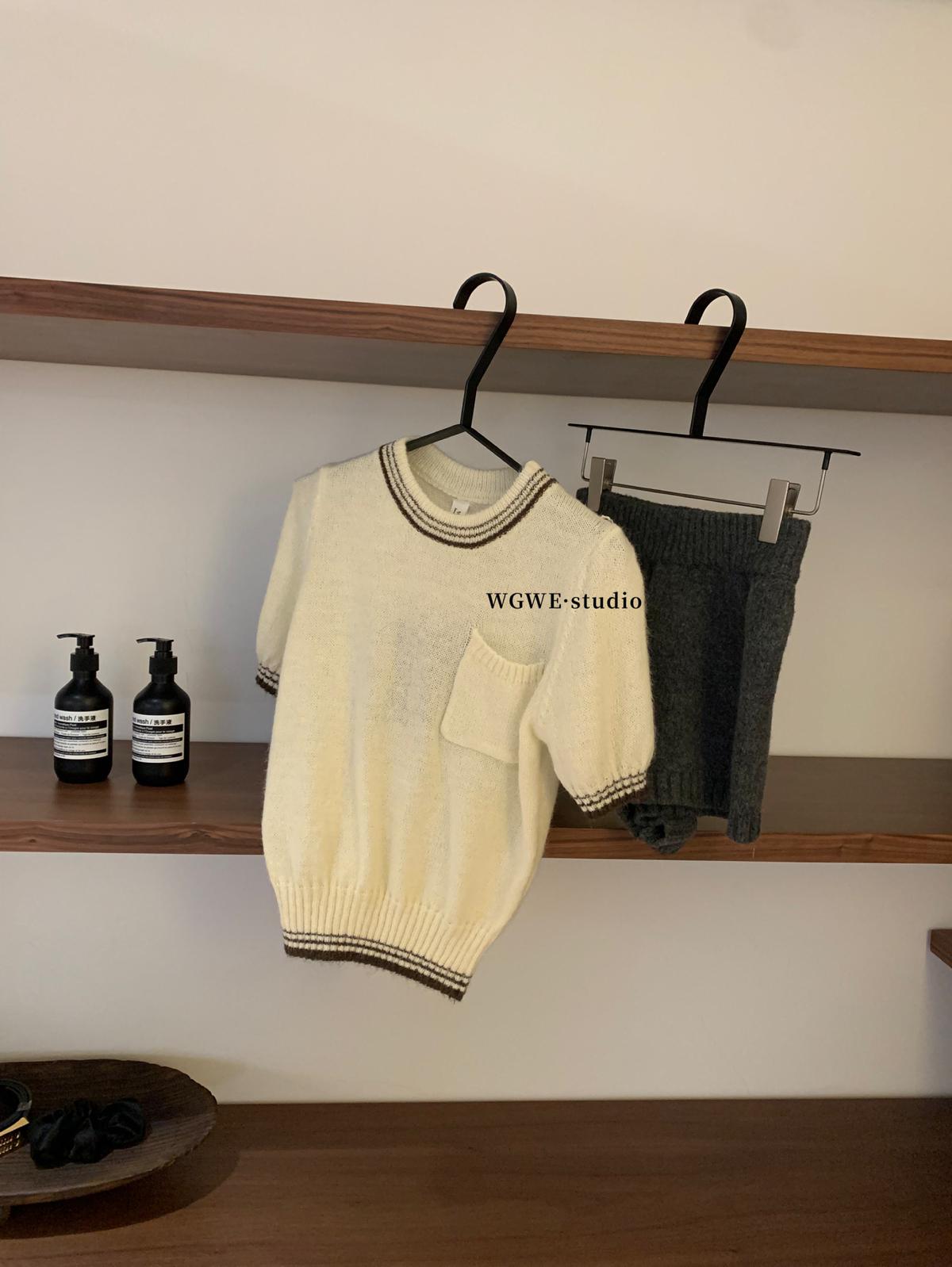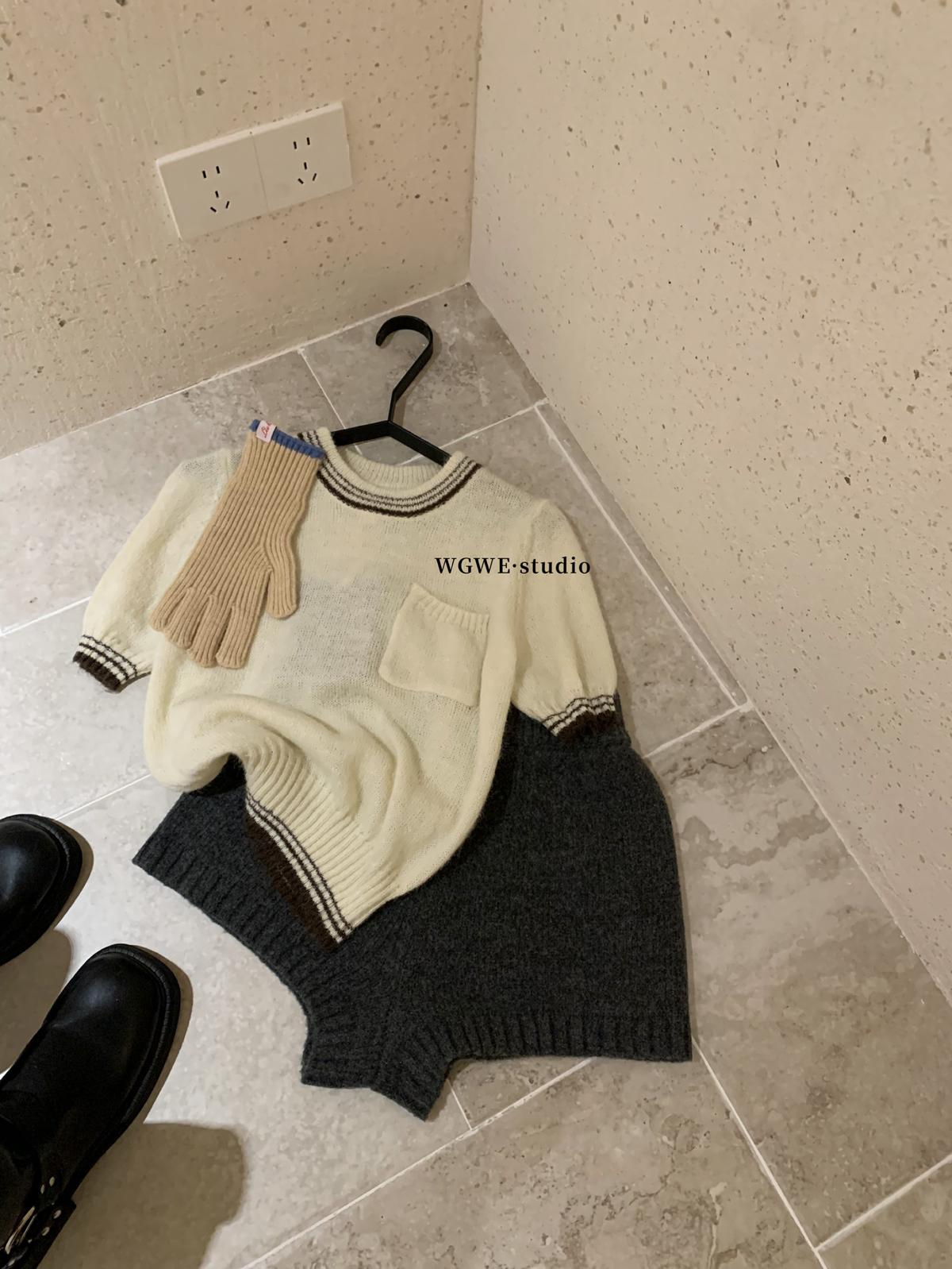 【C7156】撞色短袖針織衫休閒寬鬆顯瘦套頭正肩百搭上衣針織衫