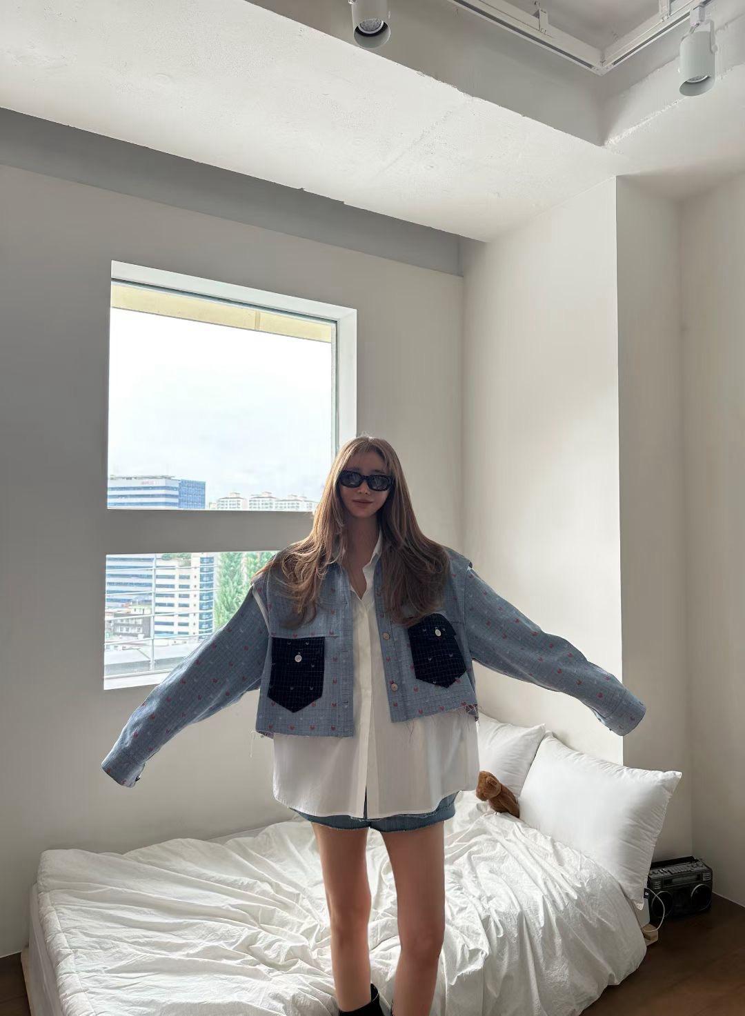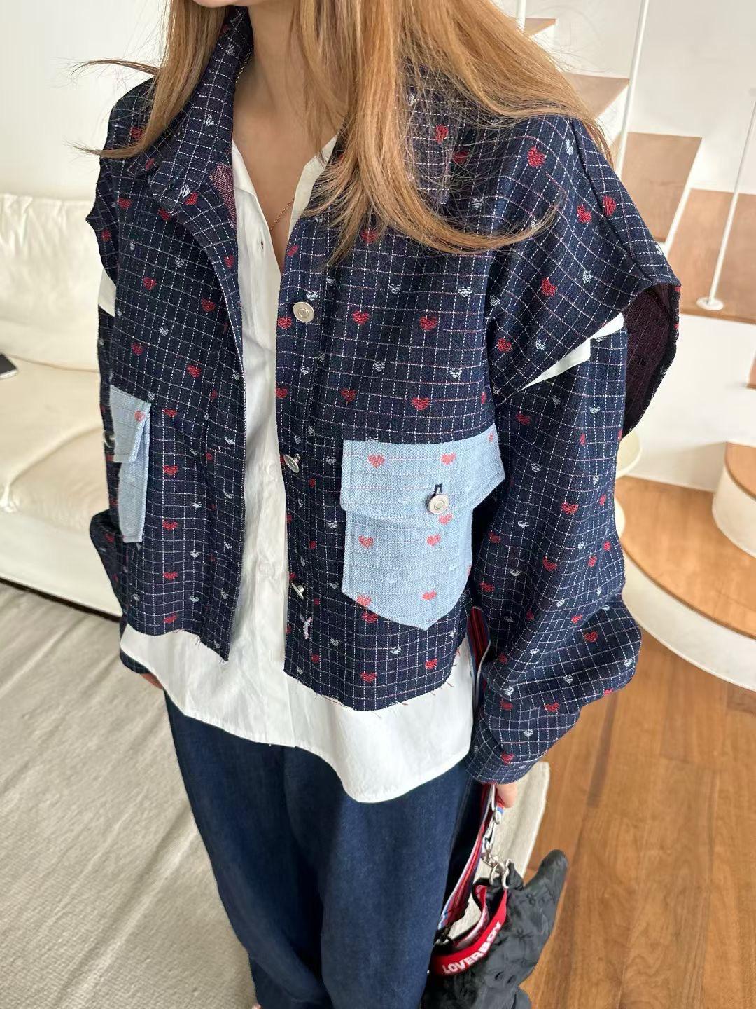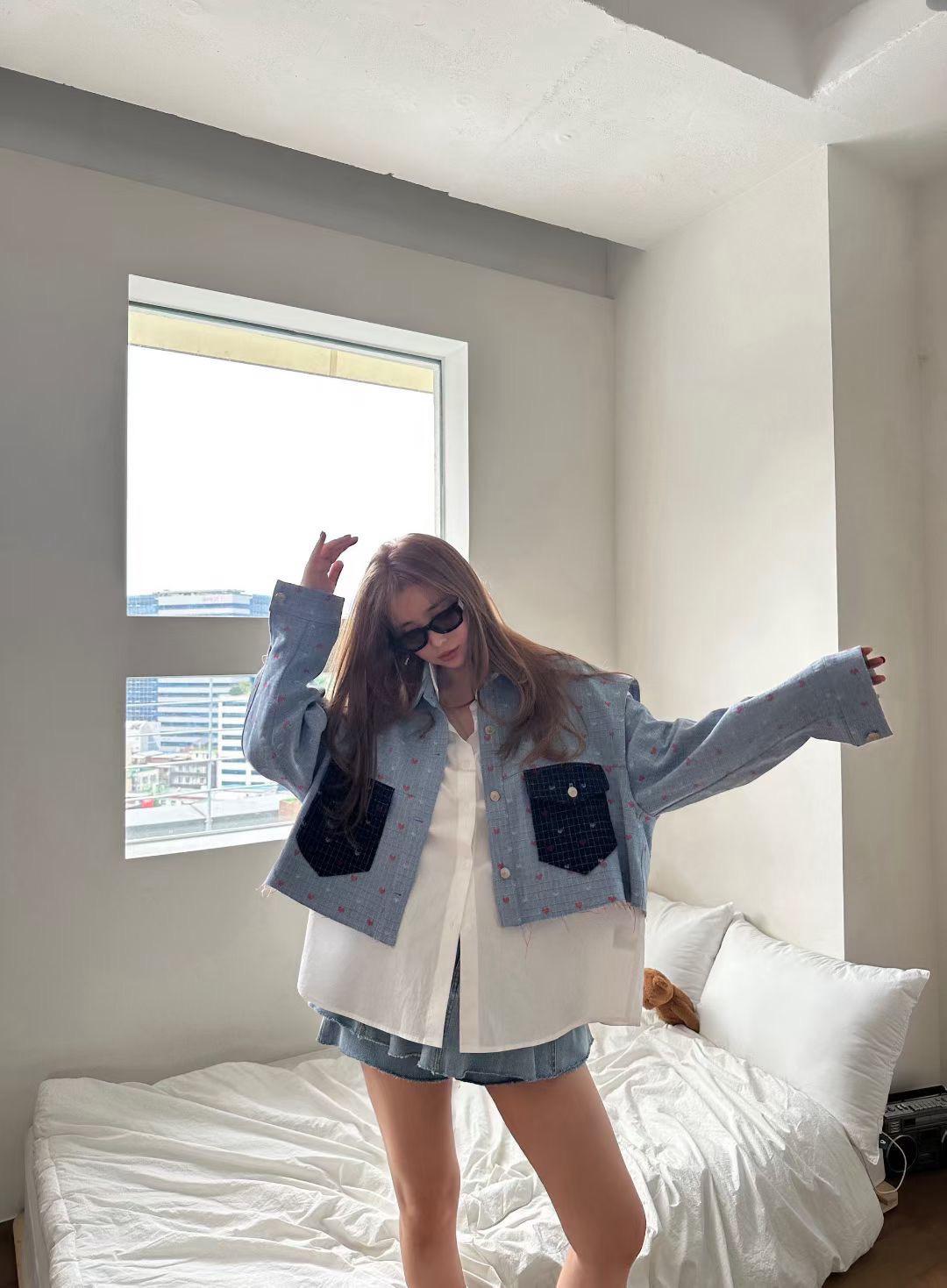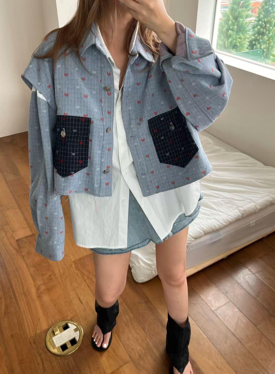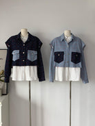 3. 【C7189】韓系時尚百搭襯衫拼接袖子上衣襯衫