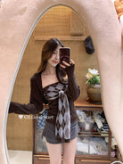 3. 【C7198】被問爆了!必入*韓系ins時髦純欲綁帶格紋抹胸+針織開衫套裝(含4%羊毛)