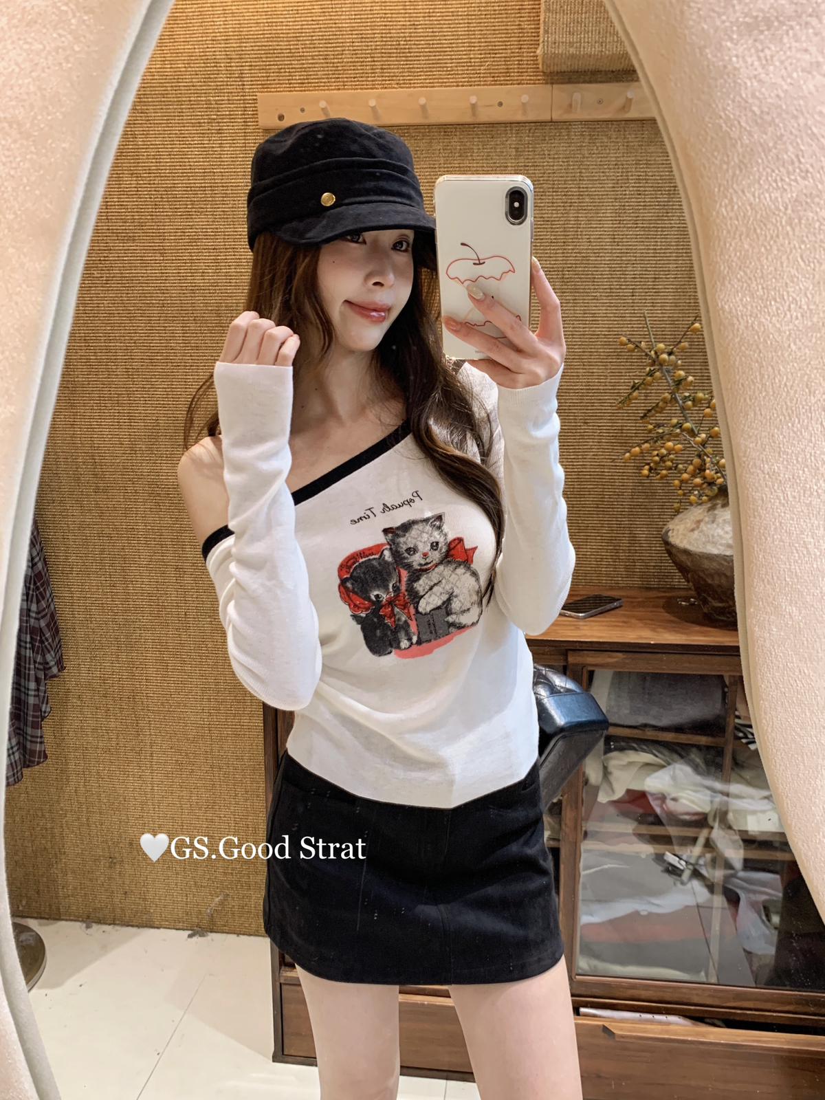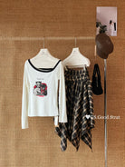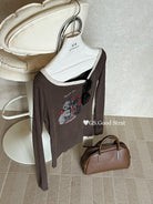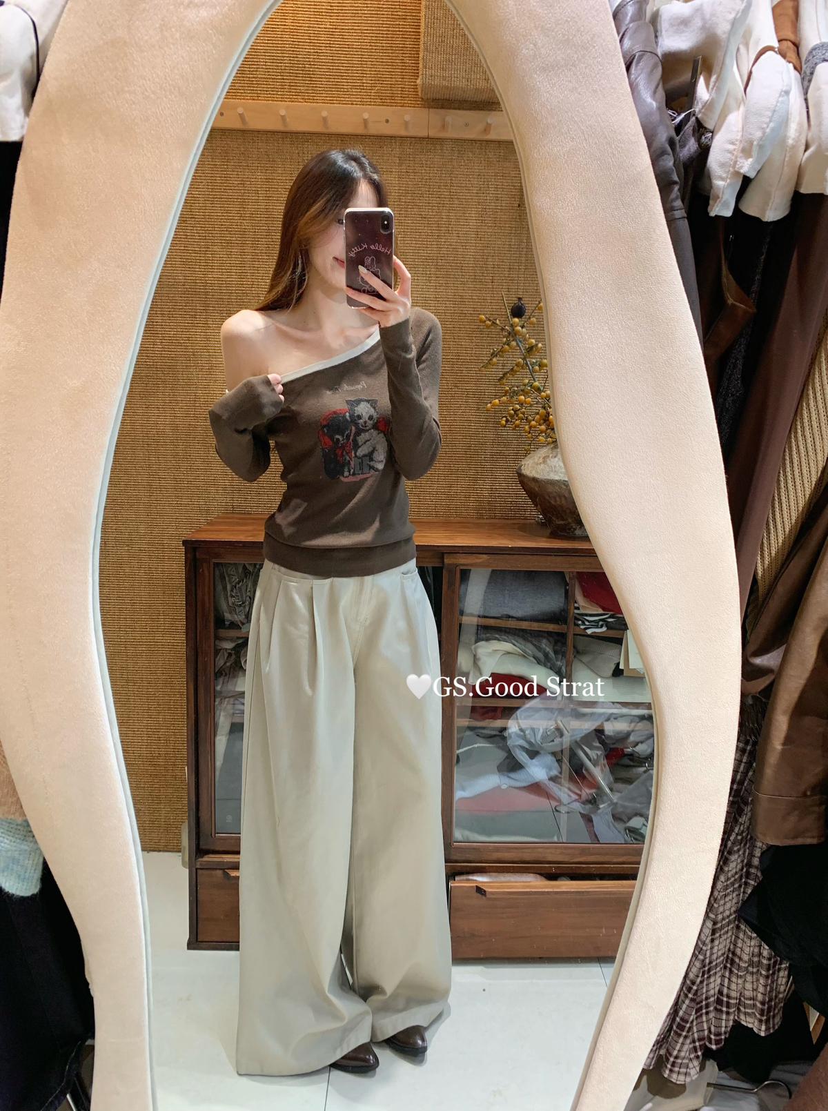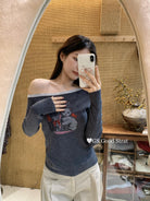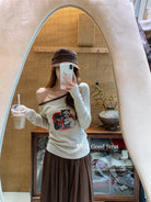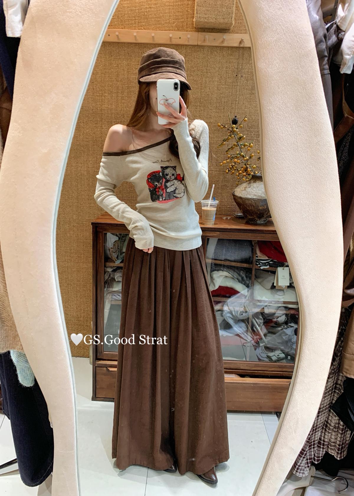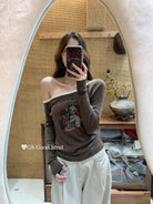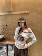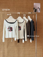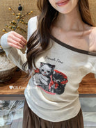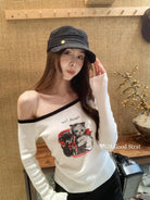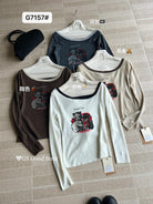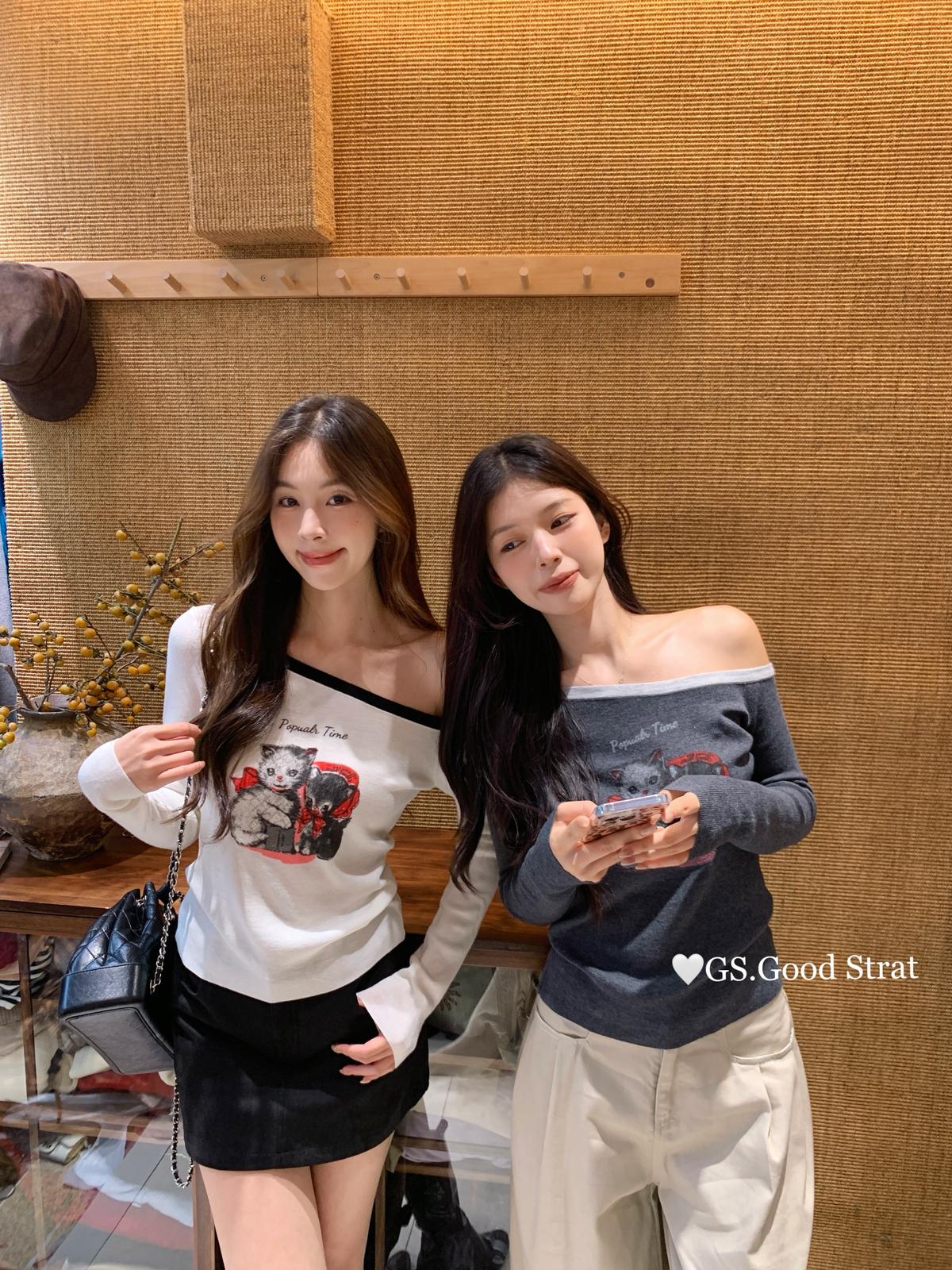 3. 【C7205】我們家的小貓~發財款!秋季純欲辣妹斜肩可愛印花針織小衫(含4%羊毛)