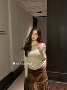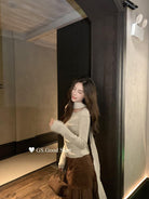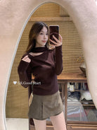 【C7206】清冷千金~爆款溫柔feel!秋氣質浪漫設計感針織衫(配可拆卸飄帶)