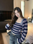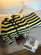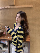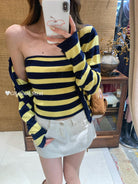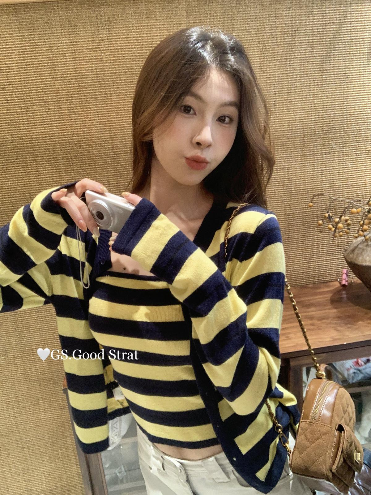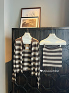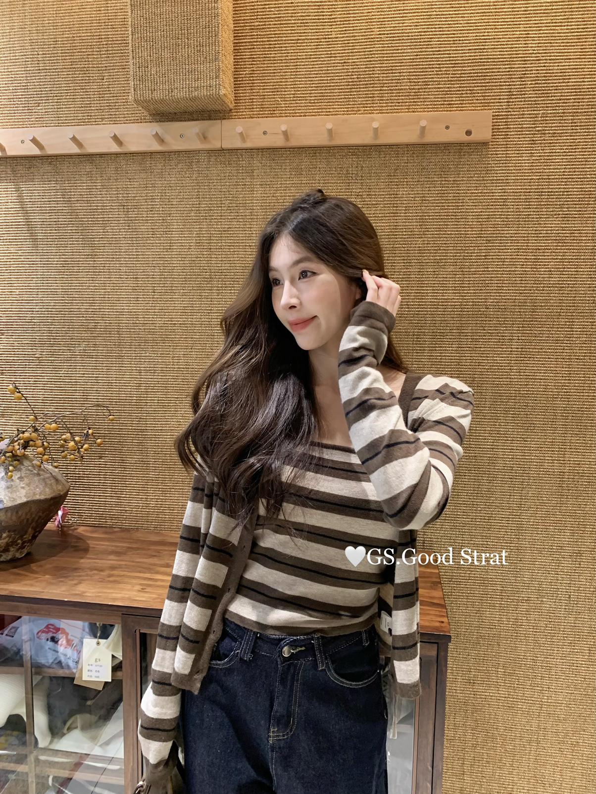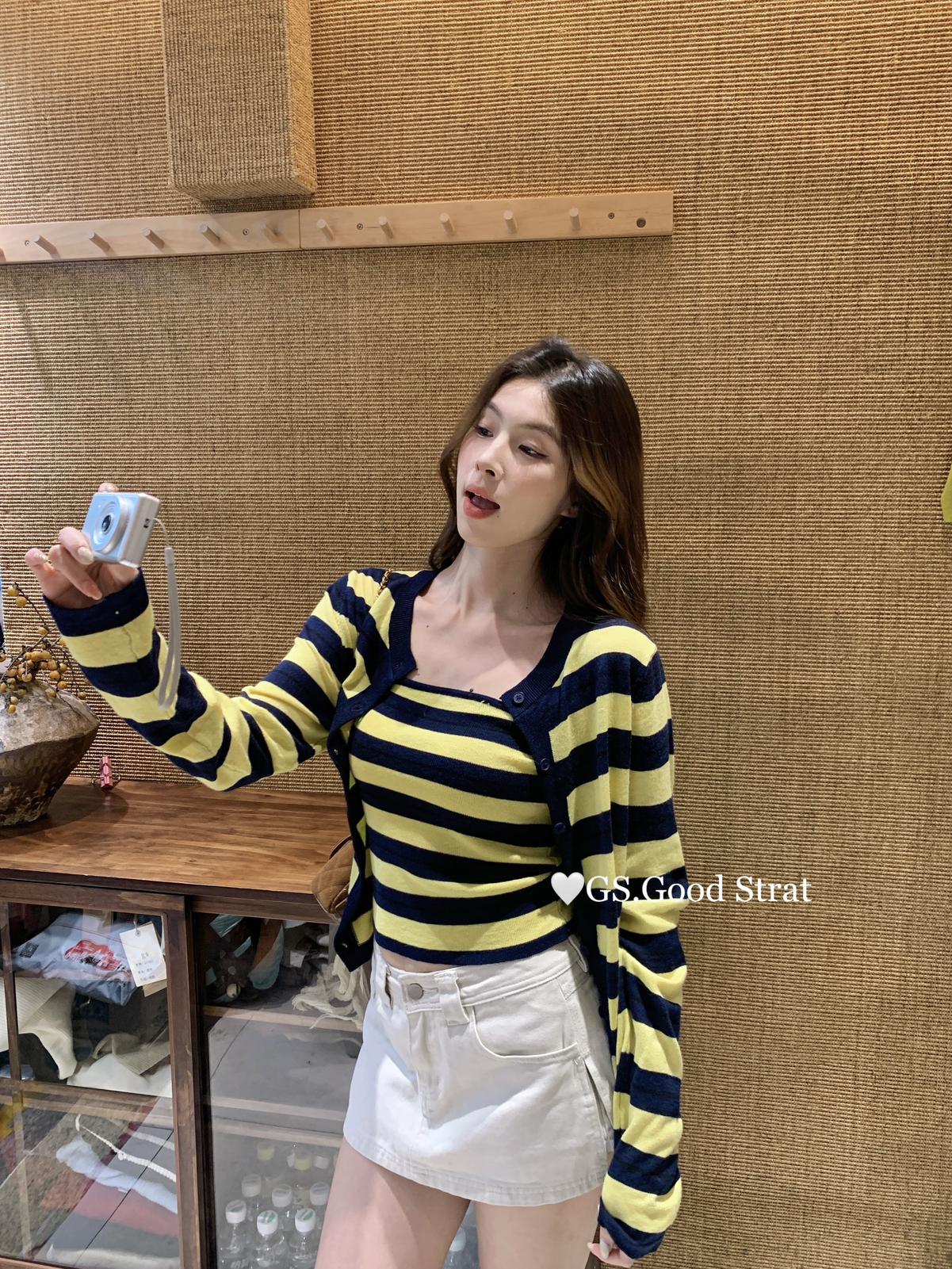 【C7208】爆火miu繫條紋!必拿!秋冬時髦撞色條紋針織開衫+抹胸套裝