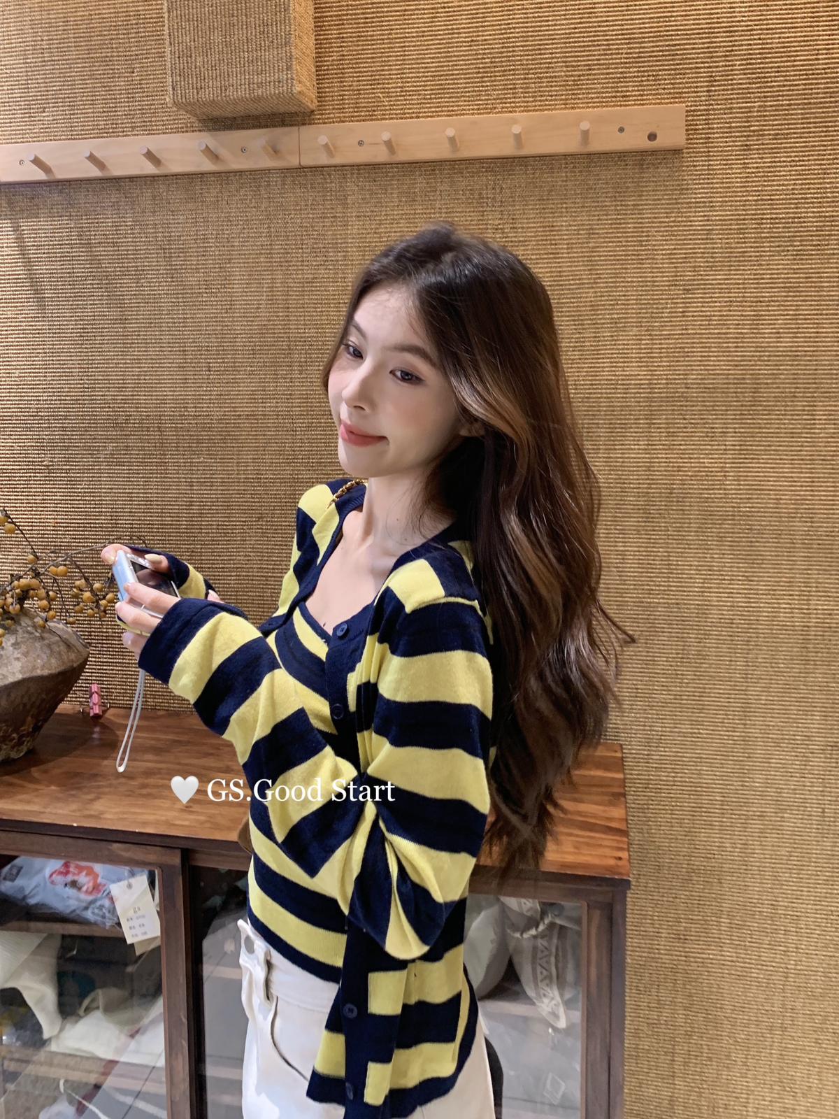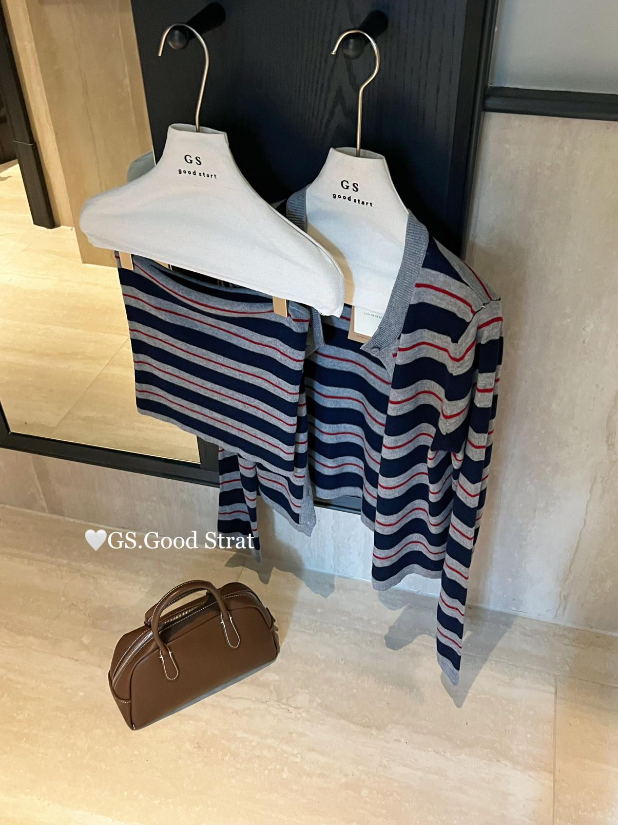 3. 【C7208】爆火miu繫條紋!必拿!秋冬時髦撞色條紋針織開衫+抹胸套裝