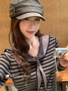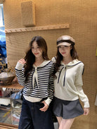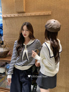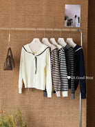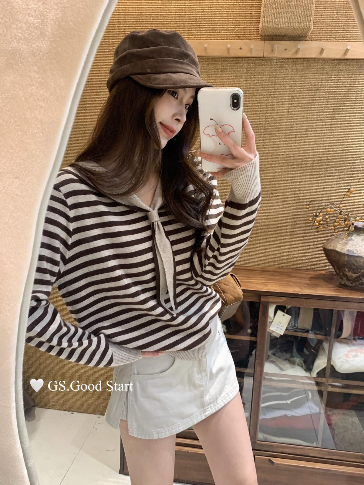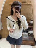 【C7210】甜甜海軍領~熱度很高!秋冬甜美減齡百搭休閒寬鬆針織衫