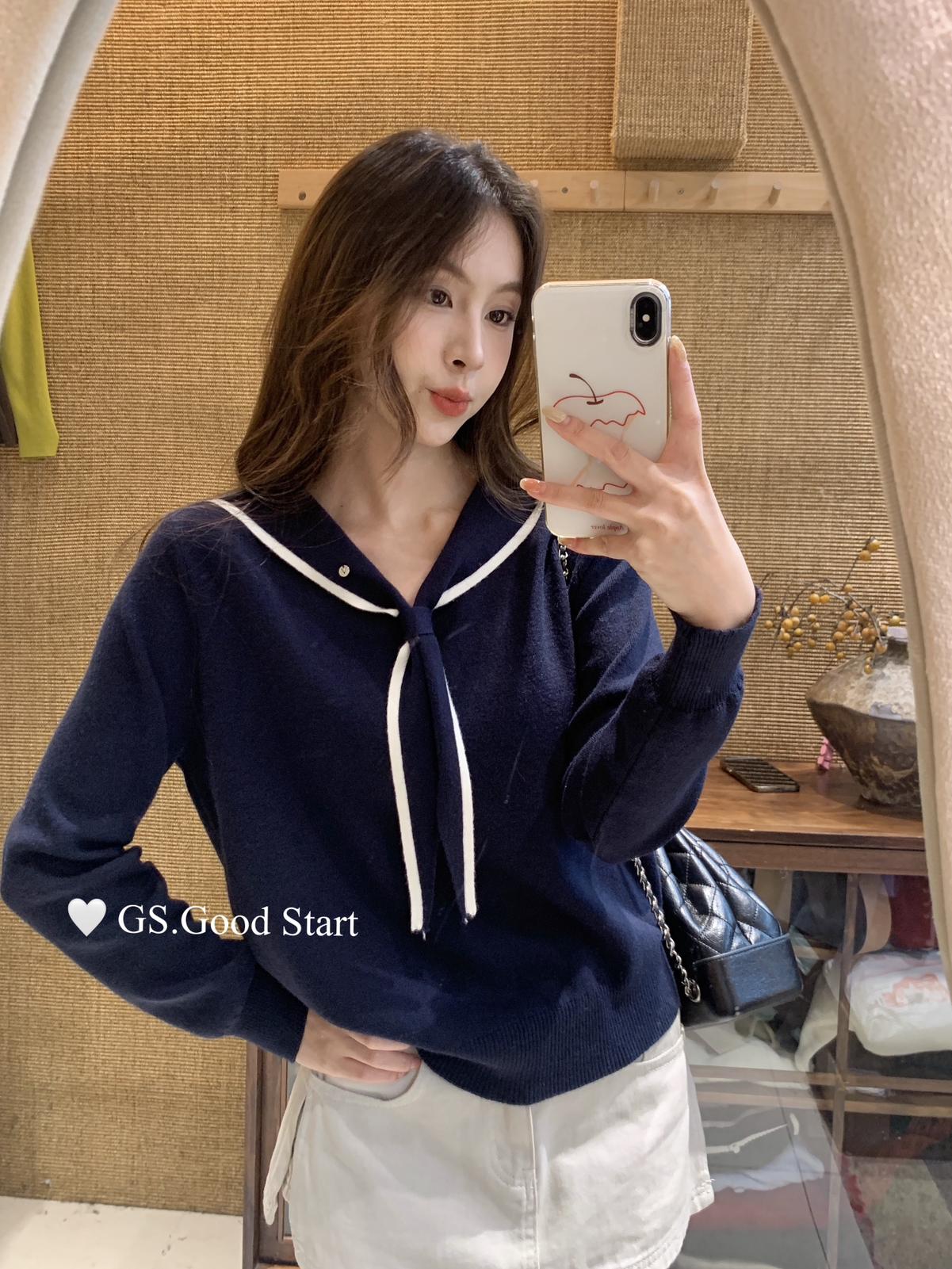 3. 【C7210】甜甜海軍領~熱度很高!秋冬甜美減齡百搭休閒寬鬆針織衫