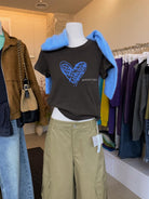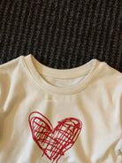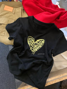 【C7216】韓感甜美愛心簡約質感線條桃心印花正肩圓領套頭短袖T恤